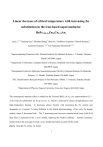 Linear decrease of critical temperature with increasing Zn substitution in the iron-based superconductor BaFe1.89-2xZn2xCo0.11As2 Jun Li,1,2,* Yanfeng Guo,3 Shoubao Zhang,3 Shan Yu,1 Yoshihiro Tsujimoto,3 Hiroshi Kontani,5 Kazunari Yamaura,1,2,4,* Eiji Takayama-Muromachi 2,3,4 1 Superconducting Properties Unit, National Institute for Materials Science, 1-1 Namiki, Tsukuba, Ibaraki 305-0044, Japan 2 Department of Chemistry, Graduate School of Science, Hokkaido University, Sapporo, Hokkaido 060-0810, Japan 3 International Center for Materials Nanoarchitectonics (MANA), National Institute for Materials Science, 1-1 Namiki, Tsukuba, Ibaraki 305-0044, Japan 4 JST, Transformative Research-Project on Iron Pnictides (TRIP), 1-1 Namiki, Tsukuba, Ibaraki 305-0044, Japan 5 Department of Physics, Nagoya University, Furo-cho, Nagoya 464-8602, Japan The nonmagnetic impurity effect is studied on the Fe-based BaFe1.89Co0.11As2 superconductor (Tc = 25 K) with Zn substitution for Fe up to 8 at. %, which is achieved by means of high-pressure and high-temperature heating. Tc decreases almost linearly with increasing the Zn content and disappears at ~8 atomic %, being different in the shared phenomenology of the early Zn doping studies, where Tc decreases little. The Tc decreasing rate, however, remains much lower (3.63 K/%) than what is expected for the s±-wave model, implying the model is unlikely. Another symmetry model such as the non-sign reversal s-wave model may better account for the result. PACS: 74.62.Bf, 74.25.Dw, 74.70.Dd 1 Discovery of the Fe-based superconductor in 2008 opened a fundamental question about the pairing symmetry of its superconductivity (SC).1,2 In the compound, fully-gapped multiband superconductivity is realized according to NMR,3 angle-resolved photoemission spectroscopy,4 London penetration depth meserments,5 and SR studies.6 Several independent groups theoretically predicted a sign-reversal s-wave model (s±-wave) for the SC,2 and recent half-flux quantum experiments on NdFeAsO0.88F0.12 supported the model.7 Meantime, a non-sign-reversal s-wave model (s++-wave) was proposed to account for the hump structure observed in neutron-scattering measurements below Tc.8 competitive with the s±-wave model.9-11 The s++-wave model is highly developed and is Besides, a d-wave model is still competing with the s++- and s±-wave models.12 The s++- and s±-wave share the same sign for the hole-Fermi pockets, but do not for the electron-Fermi pockets. electron-Fermi pockets. The d-wave state has opposite signs for the nearest-neighbor Because nonmagnetic impurity (NMI) causes pair-breaking in different ways depending on the pairing symmetry, thus the NMI study is expected to greatly help to answer the open question.13-16 Anderson’s theorem predicts that a NMI does not break pairing in an isotropic non-sign-reversal SC state, while it does in an anisotropic state.16 The theorem indeed well describes the results for such as the cuprate superconductor, which quickly loses the SC by a small amount of NMI.13 Since Zn2+ has a tightly closed d shell, a doped Zn normally works as a better NMI. A few at.% of Zn in fact acts as a strong scattering center in a superconductor, though it has little influence on the magnetism and transport properties.13-15 Because the doped Zn actually plays a crucial role of the pairing symmetry determination, we may expect that it works as well in the Fe-based superconductor. In early studies, Cheng et al. reported that the doped Zn hardly affects the SC of the p-type Ba0.5K0.5Fe2As2,17 as does Li et al. for the n-type LaFeAsO0.85F0.15.18 However, the SC is completely suppressed by at most 3 at.% of Zn for LaFeAsO0.85 in our study.19 The early results seem to contradict each other. It is highly possible that the Zn substitution suffered somewhat 2 from the high volatility of Zn, resulting in an overestimation of the net Zn content.13,20 Our recent studies in fact showed that more than 2 at.% of Zn is hardly doped into Ba(Fe,Co)2As2 under a regular synthesis condition.21 Recently, we succeeded in doping much amount of Zn into a crystal of BaFe1.89Co0.11As2 (Tc =25 K) by using a method of high-pressure and high-temperature heating. Magnetic and electrical properties of the Zn doped crystal indicate a notable Tc decrease in proportional to the Zn content. Because early studies showed smaller or little Tc decreases (except Ref. 19), the Tc decrease is remarkable. It is hence significant to investigate the role of Zn in the crystals of BaFe1.89-2xZn2xCo0.11As2 (0 < x < 0.08). The nominal composition of the crystals was BaFe1.87-2xZn2xCo0.13As2 (x=0-0.07); mixtures of BaAs (prepared as in Ref. 19), FeAs (Ref. 19), Fe (99.9%, Rare Metallic Co.), Co (>99.5%, RM), and Zn (99.99%, RM) were placed each in a boron-nitride cell, which was installed in a Ta capsule. The loaded capsule was treated at 3 GPa in a belt-type pressure apparatus at 1300 °C for 2 hrs, and the temperature was slowly decreased to 1100 °C for 2 hrs. temperature, followed by releasing the pressure. The capsule was quenched to room The as-prepared samples were kept in vacuum for 3-5 days, resulting in self-isolation of thin crystals (~0.3×0.2×0.1 mm3 or smaller). The crystal structure was investigated by powder x-ray diffraction (XRD). The tetragonal ThCr2Si2-type structure was found to form over the compositions from x = 0 to 0.08 without traces of impurities.22 The lattice constants were estimated from analysis of the XRD patterns (Table 1); a nearly isotropic expansion of both a and c is found, reflecting difference between the Zn-As and the Fe-As bonds as discussed in Ref. 18. c-axis expansion.23 In addition, a magnetic effect is possibly included in the In addition, a shining surface of the plate-like crystal (~0.5 mm in length) was studied by XRD (Fig. 1). An orientation toward [0 0 2n] (n is integer) is obvious, indicating that the c-axis is perpendicular to the crystal plane. The Zn substitution wa