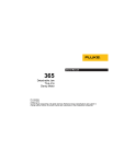 Users Manual 365 Detachable Jaw True-rms Clamp Meter PN 3622684 August 2010 © 2010 Fluke Corporation. All rights reserved. Printed in China. Specifications are subject to change without notice. All product names are trademarks of their respective companies. LIMITED WARRANTY AND LIMITATION OF LIABILITY This Fluke product will be free from defects in material and workmanship for three years from the date of purchase. This warranty does not cover fuses, disposable batteries, or damage from accident, neglect, misuse, alteration, contamination, or abnormal conditions of operation or handling. Resellers are not authorized to extend any other warranty on Fluke’s behalf. To obtain service during the warranty period, contact your nearest Fluke authorized service center to obtain return authorization information, then send the product to that Service Center with a description of the problem. THIS WARRANTY IS YOUR ONLY REMEDY. NO OTHER WARRANTIES, SUCH AS FITNESS FOR A PARTICULAR PURPOSE, ARE EXPRESSED OR IMPLIED. FLUKE IS NOT LIABLE FOR ANY SPECIAL, INDIRECT, INCIDENTAL OR CONSEQUENTIAL DAMAGES OR LOSSES, ARISING FROM ANY CAUSE OR THEORY. Since some states or countries do not allow the exclusion or limitation of an implied warranty or of incidental or consequential damages, this limitation of liability may not apply to you. Fluke Corporation P.O. Box 9090 Everett, WA 98206-9090 U.S.A. 11/99 Fluke Europe B.V. P.O. Box 1186 5602 BD Eindhoven The Netherlands Table of Contents Title Page Introduction................................................................................................................. Contact Fluke ............................................................................................................. Safety Information ...................................................................................................... The Meter ................................................................................................................... Specifications ............................................................................................................. Electrical Specifications.......................................................................................... Mechanical Specifications ...................................................................................... Environmental Specifications ................................................................................. i 1 2 2 7 14 14 15 16 365 Users Manual ii Introduction Warning Read "Safety Information" before you use the Meter. The Fluke 365 is a true-rms hand-held, battery-operated clamp meter (the Meter) that features a detachable Jaw. The Meter measures: • ac and dc current • ac and dc voltage • resistance • continuity The Meter ships with: • TL75 or TL175 test leads • carrying case • two AA batteries (installed) • magnetic hanger • 365 User Manual 1 365 Users Manual Contact Fluke To contact Fluke, call one of the following telephone numbers: • Technical Support USA: 1-800-44-FLUKE (1-800-443-5853) • Calibration/Repair USA: 1-888-99-FLUKE (1-888-993-5853) • Canada: 1-800-36-FLUKE (1-800-363-5853) • Europe: +31 402-675-200 • Japan: +81-3-3434-0181 • Singapore: +65-738-5655 • China: +86-400-810-3435 • Anywhere in the world: +1-425-446-5500 Or, visit Fluke's website at www.fluke.com. To register your product, visit http://register.fluke.com. To see, print, or download the latest manual supplement, visit http://us.fluke.com/usen/support/manuals. Safety Information A Warning identifies conditions and actions that pose hazard(s) to the user. A Caution identifies conditions and procedures that could cause Meter damage, equipment under test damage, or permanent loss of data. Symbols used on the Meter and in this manual are explained in Table 1. 2 Detachable Jaw True-rms Clamp Meter Safety Information Warning To prevent possible electrical shock or personal injury, follow these guidelines: • Use the Meter only as specified in this manual or the protection provided by the Meter can be compromised. • Examine the case before you use the Meter. Look for cracks or missing plastic. Carefully look at the insulation around the connectors. • Never measure current while the test leads are inserted into the input jacks. • Make sure the battery door is closed and latched before operating the Meter. • Remove the test leads from the Meter before the battery door is opened. • Examine the test leads for damaged insulation or exposed metal. Check test lead continuity. Replace damaged test leads before using the Meter. • Do not use the Meter if it operates incorrectly. Protection can be compromised. When in doubt, have the Meter serviced. • Do not use the Meter around explosive gas, vapor or in damp or wet environments. • Use only type AA batteries, properly installed in the Meter case, to power the Meter. • When measuring, keep fingers behind the Tactile Barrier. See "The Meter" . • To avoid false readings that can lead to electrical shock and injury, replace the batteries as soon as the low battery indicator () appears. • When servicing the Meter, use only specified replacement parts. 3 365 Users Manual • • • • • • • • • • • 4 Have the Meter serviced only by qualified service personnel. Be careful around voltages >30 V ac rms, 42 V ac peak, or 60 V dc. Such voltages pose a shock hazard. Do not apply more than the rated voltage, as marked on the Meter, between the terminals or between any terminal and earth ground. When using the probes, keep fingers behind the finger guards on the probes. Connect the common test lead before connecting the live test lead. When disconnecting test leads, disconnect the live test lead first. Do not work alone so assistance can be rendered in an emergency. Use extreme caution when working around bare conductors or bus bars. Contact with the conductor could result in electric shock. Adhere to loca