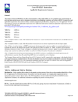 Texas Commission on Environmental Quality Form OP-REQ3 - Instructions Applicable Requirements Summary General: The purpose of Form OP-REQ3 is to allow documentation of the applicability of, or exemption from, requirements for units, groups, and processes and to designate monitoring, recordkeeping, reporting, and testing (MRRT) required for each applicable requirement line (emission limit, standard, equipment specifications, exemption, etc.). The applicant will list units that have at least one applicable requirement. For additional information relating to applicable requirements, please go to the TCEQ web site at www.tceq.texas.gov/assets/public/permitting/air/Guidance/Title_V/additional_fop_guidance.pdf. Table 1a: Additions Table 1b: Additions Table 2a: Deletions Table 2b: Deletions Note: Complete Tables 1a and 1b for initial permit issuance or as part of the permit revision process to identify any new requirements. Note: Complete Tables 2a and 2b for the permit revision process to remove requirements that no longer apply. Note: If there, is only a change to MRRT requirements during a permit revision or update to a permit application, to expedite the process, the change only needs to be reflected on Tables 1b and/or 2b. Tables 1a and/or 2a need not be submitted. Likewise, if there is only a change to a standard during a permit revision or update to a permit application, the change only needs to be reflected on Tables 1a and/or 2a. Tables 1b and/or 2b need not be submitted. Note: Complete this form for general operating permit (GOP) revisions to establish provisional requirements for authorization to operate when the underlying GOP does not contain the correct citations. The Company Name and Area Name (from Form OP-1, Section I and X, respectively) must appear in the header block of each page for purposes of identification. The date of submittal must also be included, and should be consistent throughout the application (MM/DD/YYYY). Any subsequent submittals must show the date of revision. Also, enter the Regulated Entity Number (RNXXXXXXXXX) and Permit Number (OXXXX), if assigned. Specific: Table 1a: Additions and Table 2a: Deletions Revision No.: Only complete this section for the permit revision process. Enter the revision number identified on Form OP-2 (Application for Permit Revision). This number will link the specific set of applicable requirements to the appropriate permit revision. Please refer to the TCEQ guidance document (Site Operating Permit (SOP) Revision Application Guidance) for additional information regarding the permit revision process. Unit/Group/Process ID No.: Enter the identification number (ID No.) for the unit, group, or process (maximum 10 characters) as listed on Form OP-SUM (Individual Unit Summary). TCEQ 10018 (APDG 5939v2, Revised 06/15) OP-REQ3 – Applicable Requirements Summary This form is for use by sources subject to air quality permit requirements and may be revised periodically. (Title V Release 11/08) Page 1 of 4 Form OP-REQ3 Instructions Applicable Form: Enter the number of the Unit Attribute (UA) form which contains the specific information for the corresponding emission unit, emission point, or process (i.e., for flares enter “OP-UA7”). The Applicable Form entered on OP-REQ3 must match the applicable form entered on OP-SUM for the emission unit, emission point, or process. SOP/GOP Index No.: Site operating permit (SOP) applicants should indicate the SOP index number for the unit or group of units (maximum 15 characters consisting of numeric, alphanumeric characters, and/or dashes prefixed by a code for the applicable regulation [i.e., 60KB-XXXX]). For additional information relating to SOP index numbers, please go to the TCEQ web site at www.tceq.texas.gov/assets/public/permitting/air/Guidance/Title_V/additional_fop_guidance.pdf. General operating permit (GOP) applicants should indicate which provisional requirements are being established if there are no GOP index numbers for the requirements (or checklists for MSW landfill or ACI incinerator). Pollutant: Select one of the following options for the pollutant that is the subject of the applicable requirement. Enter the code on the form. For criteria pollutants: Code CO NOX VOC SO2 PB PM PM (OPACITY) HAPS Description Carbon monoxide Nitrogen oxides (NOX) Volatile organic compounds Sulfur dioxide Lead Particulate matter (use this code for any regulatory requirement under any Title 40 Code of Federal Regulations Part 60 [40 CFR Part 60] subpart section or Title 30 Texas Administrative Code Chapter 111 [30 TAC Chapter 111] section where the standard, as designated by the TCEQ Requirements Reference Tables (RRT) and flowchart, is for particulate matter) Opacity of particulate matter Hazardous air pollutants (HAPs) Note: In some rules, there may be requirements for two different pollutants in a single citation. When this occurs, enter the complete citation for the first pollutant, then again on the next line for the second pollutant. Repeat the unit, group, or process identification number on each line. For example; 30 TAC Chapter 117 has several emission limit paragraphs addressing NOx and CO, or anhydrous ammonia (NH3). For this example, enter the applicable requirement twice, once for NOx and once for CO or NH3. Applicable Regulatory Requirement Name: Enter the name of the requirement for which positive applicability is being demonstrated. See examples in the table below (maximum 25 characters). Standard(s): Enter the citation of the applicable standard(s) of the rule. The RRT and flowcharts may be used to assist with applicability determinations. Multiple lines may be necessary to list all applicable portions of a given rule or requirement (maximum 36 characters). If the requirement has a future effective date, list the effective date on the form after the citation. Note: Site-wide requirements should not be listed on Form OP-REQ3. Please refer to the TCEQ guidance documents under “Air Site O
