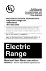 UL ® Coil Elements Instructions for Porcelain Enamel and Continuous Cleaning Oven Interiors This manual contains information for: • Important Safeguards • Installation • Use and Care Certain ranges come equipped with special features. Determine from a study of your range which of the instructions given in this booklet pertain to your range. This booklet gives valuable instructions covering the installation, adjustment and use of your range. HOW TO OBTAIN SERVICE AND/OR PARTS When your range does not operate in accordance with the instructions in the manual, you should contact the dealer in the immediate vicinity for service. Or, the purchaser may contact the service organization noted on the warranty. Electric Range Read and Save These Instructions IMPORTANT – Save for local electrical inspector’s use. Range Record in the space provided below the Model No. and Serial No. of this appliance. These numbers are found on the serial plate located below the lift-up cooktop. Model No. ________________________ Type Number ________________________ Serial No. ________________________ Purchase Date________________________ Record these numbers for future use. IMPORTANT: Keep a copy of your bill of sale. The date on the bill establishes the warranty period should service be required. If service is performed, it is in your best interest to obtain and keep all receipts. PLEASE DO THIS NOW! The PRODUCT REGISTRATION CARD should be filled in completely, signed and returned. This information will register your product and help us to serve you quickly in the future if necessary. Contents Important Safeguards . . . . . . . . . . . . . . . . . . . . . . . . . . . . . . . . . . . . . . . . . . . . . . . . . . . 3-7 Energy Saving Ideas . . . . . . . . . . . . . . . . . . . . . . . . . . . . . . . . . . . . . . . . . . . . . . . . . . . . . 7 Installation Instructions . . . . . . . . . . . . . . . . . . . . . . . . . . . . . . . . . . . . . . . . . . . . . . . . 8-12 Backguard Installation Instructions . . . . . . . . . . . . . . . . . . . . . . . . . . . . . . . . . . . . . . . . . . 9 Cabinet Preparations . . . . . . . . . . . . . . . . . . . . . . . . . . . . . . . . . . . . . . . . . . . . . . . . . . . . 12 Surface Cooking . . . . . . . . . . . . . . . . . . . . . . . . . . . . . . . . . . . . . . . . . . . . . . . . . . . . . 13-14 Oven Operation . . . . . . . . . . . . . . . . . . . . . . . . . . . . . . . . . . . . . . . . . . . . . . . . . . . . . . . . 15 Optional Equipment . . . . . . . . . . . . . . . . . . . . . . . . . . . . . . . . . . . . . . . . . . . . . . . . . . 16-17 Care of Your Range . . . . . . . . . . . . . . . . . . . . . . . . . . . . . . . . . . . . . . . . . . . . . . . . . . 18-19 Alignments and Adjustments . . . . . . . . . . . . . . . . . . . . . . . . . . . . . . . . . . . . . . . . . . . . . . 20 Lift-Off Door . . . . . . . . . . . . . . . . . . . . . . . . . . . . . . . . . . . . . . . . . . . . . . . . . . . . . . . . . . 21 Wiring Diagrams-Electrical . . . . . . . . . . . . . . . . . . . . . . . . . . . . . . . . . . . . . . . . . . . . 23-24 Note: For warranty and service information, please see attachments packaged with range. ! WARNING California Proposition 65B Electric cooking appliances could produce or may contain some products which are on a list of substances known by the State of California to cause cancer or reproductive harm. California law requires businesses to warn customers of potential exposure of such substances. To minimize exposure to these substances, always install, operate, and maintain this product according to the "use and care" manual. 2 READ THE IMPORTANT SAFEGUARDS AND ALL INSTRUCTIONS BEFORE USING THE APPLIANCE. Remove all tape and packaging wrap before using the oven. If any glue remains, touch the residue with the sticky side of the tape already removed. Or, use a cloth soaked with rubbing alcohol. Use caution because rubbing alcohol is flammable. Rinse with warm water and wipe dry. Destroy the carton and plastic bags after the range is unpacked. Children should not use packaging material for play. Cartons covered with rugs, bedspreads, or plastic sheets can become air-tight chambers. Remove all staples from the carton. Staples can cause severe cuts and destroy finishes if they come in contact with other appliances or furniture. Be safety conscious. The preparation of food in an oven requires temperatures that could cause severe burns. Before using this new appliance, carefully read and follow all instructions. ! WARNING The California Safe Drinking Water and Toxic Enforcement Act of 1986 (Proposition 65) requires the Governor of California to publish a list of substances known to the State of California to cause cancer or reproductive harm. In addition, businesses must warn customers of potential exposure to such substances. Users of this appliance are hereby warned there may be some low level exposure to some of the listed substances including formaldehyde and carbon monoxide. This happens when the oven, if equipped with a self-clean feature, is engaged in a self-clean cycle. Exposure to these substances can be minimized by properly venting the oven, especially during the selfcleaning cycle, by opening a window or using a ventilating hood or fan. Notice: Never keep pet birds in the kitchen. Birds have a very sensitive respiratory system. Fumes released during the self-cleaning cycle, overheated cooking oil, fat, margarine or overheated non-stick cookware may be harmful or fatal to birds. PROPER INSTALLATION: Be sure your appliance is properly installed and grounded by a qualified technician in accordance with the National Electrical Code ANSI/NFPA NO. 70-latest edition and local electrical code requirements. Install only per installation instructions provided in the literature package for this range. Be sure leveling legs are in place at the bottom corners of the range. If necessary, raise or lower the leveling legs at the base of th