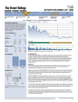 August 21, 2016 NYSE: BITA BITAUTO HOLDINGS LTD -ADR BUY A+ A A- HOLD B+ B Annual Dividend Rate NA B- C+ C Annual Dividend Yield NA SELL C- D D- Beta 2.47 Sector: Technology BITA BUSINESS DESCRIPTION Bitauto Holdings Limited provides Internet content and marketing services for the automotive industry in the People's Republic of China. The company operates in three segments: Advertising Business, EP Platform Business, and Digital Marketing Solutions Business. D+ E+ E E- HOLD F Market Capitalization $1.6 Billion 52-Week Range $16.09-$37.31 Sub-Industry: Internet Software & Services Weekly Price: (US$) SMA (50) RATING SINCE 08/18/2015 Price as of 8/18/2016 $27.12 Source: S&P SMA (100) 1 Year 2 Years 100 90 80 70 60 50 STOCK PERFORMANCE (%) 3 Mo. Price Change 45.72 1 Yr. -3.60 3 Yr (Ann) 28.24 12 Mo. 48.96 -210.61 -182.38 3 Yr CAGR 55.31 NA NA 40 30 20 GROWTH (%) Last Qtr 48.53 -2,051.28 -1,300.00 Revenues Net Income EPS RETURN ON EQUITY (%) BITA Q1 2016 NA Q1 2015 8.03 Q1 2014 17.34 Ind Avg 14.12 12.76 14.87 S&P 500 11.83 13.71 14.43 n/m 36.87 25.30 BITA Ind Avg S&P 500 Volume in Millions 20 10 2014 2015 0 2016 COMPUSTAT for Price and Volume, TheStreet Ratings, Inc. for Rating History Q1 -0.28 2015 HIGHLIGHTS The revenue growth came in higher than the industry average of 24.0%. Since the same quarter one year prior, revenues rose by 48.5%. This growth in revenue does not appear to have trickled down to the company's bottom line, displayed by a decline in earnings per share. BITAUTO HOLDINGS LTD -ADR has experienced a steep decline in earnings per share in the most recent quarter in comparison to its performance from the same quarter a year ago. The company has reported a trend of declining earnings per share over the past two years. However, the consensus estimate suggests that this trend should reverse in the coming year. During the past fiscal year, BITAUTO HOLDINGS LTD -ADR swung to a loss, reporting -$1.05 versus $1.75 in the prior year. This year, the market expects an improvement in earnings ($6.24 versus -$1.05). Q4 -0.63 Q3 -0.24 Q1 -0.02 Q2 -0.16 Q4 0.51 Q3 0.68 Q1 0.14 HOLD The gross profit margin for BITAUTO HOLDINGS LTD -ADR is rather high; currently it is at 67.47%. Regardless of BITA's high profit margin, it has managed to decrease from the same period last year. Despite the mixed results of the gross profit margin, BITA's net profit margin of -9.98% significantly underperformed when compared to the industry average. EPS ANALYSIS¹ ($) Q2 0.42 BUY RECOMMENDATION We rate BITAUTO HOLDINGS LTD -ADR (BITA) a HOLD. The primary factors that have impacted our rating are mixed - some indicating strength, some showing weaknesses, with little evidence to justify the expectation of either a positive or negative performance for this stock relative to most other stocks. The company's strengths can be seen in multiple areas, such as its robust revenue growth and expanding profit margins. However, as a counter to these strengths, we also find weaknesses including deteriorating net income, a generally disappointing performance in the stock itself and feeble growth in the company's earnings per share. P/E COMPARISON 2014 10 Rating History 2016 NA = not available NM = not meaningful 1 Compustat fiscal year convention is used for all fundamental data items. In its most recent trading session, BITA has closed at a price level that was not very different from its closing price of one year earlier. This is probably due to its weak earnings growth as well as other mixed factors. The fact that the stock is now selling for less than others in its industry in relation to its current earnings is not reason enough to justify a buy rating at this time. The company, on the basis of change in net income from the same quarter one year ago, has significantly underperformed when compared to that of the S&P 500 and the Internet Software & Services industry. The net income has significantly decreased by 2051.3% when compared to the same quarter one year ago, falling from -$0.78 million to -$16.78 million. This report is for information purposes only and should not be considered a solicitation to buy or sell any security. Neither TheStreet Ratings nor any other party guarantees its accuracy or makes warranties regarding results from its usage. Redistribution is prohibited without the express written consent of TheStreet Ratings. Copyright(c) 2006-2016. All rights reserved. Report Date: August 21, 2016 PAGE 1 August 21, 2016 NYSE: BITA BITAUTO HOLDINGS LTD -ADR Sector: Technology Internet Software & Services Source: S&P Annual Dividend Rate NA Annual Dividend Yield NA PEER GROUP ANALYSIS Market Capitalization $1.6 Billion 52-Week Range $16.09-$37.31 Price as of 8/18/2016 $27.12 INDUSTRY ANALYSIS REVENUE GROWTH AND EBITDA MARGIN* 120% The US internet software and services industry includes companies that develop and market internet software and provide services such as online databases, interactive services, web address registration, database construction, and website design. The industry is highly competitive and characterized by rapid technological changes, evolving industry standards, and frequent new product and service developments. The industry includes about 4,000 companies, with combined annual revenue of approximately $30 billion. Alphabet (GOOG), eBay (EBAY), and Yahoo (YHOO) are major players. FA NEWR RA VO BL E STMP Over the past decade, consumers have embraced the online channel to purchase goods and services. The number of worldwide consumers becoming more comfortable in using the internet to purchase goods or services is expected to continue to grow. Increasing online availability of services and declines in broadband tariffs and associated hardware prices will continue to drive robust growth. TWOU ENV UN B RA VO EGOV SOHU LE -20% WBMD SCOR FA Revenue Growth (TTM) Beta 2.47 -30% 40% There is an on-going trend toward industry consolidation as leading companies seek access to new technology and custome