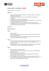 Lesson plan | Creativity is GREAT Topic: Creativity and innovation Objectives: • • • • • To discuss what constitutes creativity and identify examples of innovation in Britain and internationally To identify the meaning of vocabulary in the context of creativity and innovation To practise the sub-skill of reading for gist To identify the form of the present perfect tense and explore its use to link the past with the present with the word since To distinguish between when to use the past simple tense (to refer to completed actions in the past) and when to use the present perfect tense (to connect the present with a past time) Procedure Warmer (15 mins) Task 1 • • • Hand out Task 1 Ask the students if they recognize any of the words in the word cloud and discuss their responses Ask the students to make a sentence from the words in the word cloud and elicit a few examples to write on the board Task 2 • Tell the students they are going to construct some facts based on the words in the word cloud (some of these may relate to their sentences from the previous activity) • Ask the students to match the beginnings to the endings to make complete sentences (see ‘Notes’ for further guidance/ suggestions) Task 3 • • • • • • Show the poster ‘Creativity is Great’ Ask students if they recognise the characters, and have a brief discussion about who they are Elicit/ pre-teach the word contraption Elicit what the students think the invention might be (a steam powered wheelchair) and show the short clip Elicit suggestions for what the ‘Snoozatron’ might be and show the next clip Tell the students that before they learn about more inventions, they will discuss their own attitudes towards creativity www.teachingenglish.org.uk © British Council 2012 Lesson plan | Creativity is GREAT Speaking (10 mins) Task 4 • • • • • Allocate pairs Hand out Task 4 Give students a few minutes to prepare their responses to question 1 and then monitor as they give a short talk about their own attitudes, giving feedback where required and making a note of common errors Encourage students to join up with another pair to discuss music in a wider context (question 2) for a few more minutes and then feed back as a whole group, promoting effective debate in relation to the different opinions of those present Address any common errors noted during pair and group discussion Pre-reading vocabulary activity (10 mins) Task 5 • • Hand out Task 5 Ask students to match the words to their definitions Reading Task (gist) (5 mins) Task 6 • • • • Handout Task 6 Ask students to consider the question while they read the text Explain that, because they are reading for gist, and not detail, that you will give them a time limit After reading, ask students which invention they think is most innovative and why Grammar focus Task 7 • • • Elicit prior knowledge of the form and use of the present perfect tense Hand out Task 7 Guide students through the explanation, asking concept questions throughout and eliciting further examples of the present perfect from the sentences in Task 2 Grammar practice Task 8 • • • • • Hand out Task 8 and monitor as learners complete sentences a) to g) Ensure they refer back to the earlier text to check their answers Give a time limit of five minutes for students to write down sentences about their achievements, providing assistance where required Allocate small groups and instruct students to discuss their achievements Ask one student from each group to report anything interesting to the rest of the class www.teachingenglish.org.uk © British Council 2012 Lesson plan | Creativity is GREAT • • Ask the whole class whose achievements they feel are most creative Discuss any other important events which happened in 2009 or since then Notes Task 2 • The aim of this activity is to set the context and raise schemata, however it will also provide a springboard for discussion of unfamiliar names/ terms and also the opportunity to outline key vocabulary such as innovative. • This could be set up as a mingling activity whereby each student is given part of a sentence and they have to find another student to complete their sentence, which can then be read to the rest of the class • Another suggestion would be to base a running dictation activity on the sentences, whereby students work in pairs to make complete sentences. The ‘writer’ could be given the beginnings, while the ‘runner’ could provide the endings by reading them from cards stuck around the classroom. For more information about running dictations, follow this link: Task 5 • • To give the activity a kinaesthetic feel, the table could be enlarged, photocopied and cut into individual cards for the students to match up in pairs Quick finishers could be asked to write synonyms/ antonyms for the words or encouraged to use the National Corpus (link: ) to find common collocations of the given vocabulary. Extension activities Option 2 • The link provided gives instructions on how to make various contraptions. This could form the basis of a lesson about imperatives, or could be a springboard for teaching passive constructions used to describe a process www.teachingenglish.org.uk © British Council 2012 Lesson plan | Creativity is GREAT Suggested answers Task 2 Beginning of sentence Ending of sentence British musical artists such as Adele, Coldplay and Jay Sean… …accounted for almost 12 per cent of global sales of recorded music during 2010. UK films have won 21 Oscars in the past 5 years, and the UK is one of the world’s leading producers of TV formats,…. …with programmes such as the X-factor and Strictly Come Dancing shown in over 70 countries. Nearly half the world’s top 100 computer games development companies are based in the UK - … …including major international studios such as Microsoft, Sony and Nintendo. Contemporary British fine artists are renowned the worl