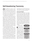 From Classroom Strategies for Interactive Learning, Third Edition, by Doug Buehl. © 2009 by the International Reading Association. Self-Questioning Taxonomy G rover Cleveland. The answer is, Grover Cleveland. But what is the question? Students have become well conditioned to answer­ ing questions, especially those that feature expected responses like Grover Cleveland. The questions may vary: Who was the only U.S. President whose two terms in office were not consecutive? or Who was the only Democrat to serve as President in the over 50 years between the American Civil War and World War I? or even Who was one of the pudgiest fellows to oc­ cupy the highest office in the United States? Students know how such questions “work.” Often, they merely need to undertake minimal surface sam­ pling of a text in order to derive an acceptable answer. Questions like these are rarely much of a challenge. Students can answer them rather quickly, and even struggling readers can frequently get through them with little assistance. But literal, fact-level questions— like the ones outlined above—have little to do with the comprehension of written texts. Researchers have long cautioned us that these questions can in many cases be answered even if a student is confused about a text’s meaning. In other words, questions asked ostensibly to help students “get the facts” rarely help students to construct an understanding of an author’s message. Students can find answers, but they miss the important questions—the questions they should pose to them­ selves to guide their reading and learning. Instead of searching for answers, students need to be able to find the questions. The answer, in fact, is not Grover Cleveland. Grover Cleveland is the ques­ tion. Grover Cleveland? Why Grover Cleveland? What’s the significance of his Presidency? What is it about Grover Cleveland that is important to know? In what ways did his actions change the United States? How did Cleveland’s solutions to the country’s problems compare with those of other Presidents? What are we to conclude about Cleveland—is he worthy of extend­ ed study or should he be relegated to a cursory glance before we move on to more compelling topics? Of course, the questions in the previous paragraph sound very much like the questions history teachers ask themselves as they grapple with setting priorities for instructional emphasis. Okay, the textbook has a section on Cleveland. Do the students need to read it? And for what purpose? Why is it truly worth their time as learners to zero in on this President? These are excellent questions, too good to be asked solely by teachers. Students also need to be asking themselves such questions, and attempting to answer them. Using the Strategies Most educators are well familiar with Bloom’s Taxonomy of Educational Objectives, which argued that teachers need to prompt more complex thinking from their students (Bloom, Englehart, Furst, Hill, & Krathwohl, 1956). Often the taxonomy is employed to help teachers ask better and deeper questions, but the other side of this dynamic is for teachers to model selfquestioning strategies so that students themselves begin to generate increasingly more sophisticated questions as they engage with written texts. Bloom’s Taxonomy, updated by Anderson and Krathwohl in 2001, presents an excellent framework for guiding comprehension instruction as students read and learn during class­ room lessons (see Bloom’s Taxonomy, Revised). To il­ lustrate a more extended application of this strategy, the Self-Questioning Taxonomy for Literary Fiction is presented to guide comprehension instruction when working with fiction texts Strategy Index specifically. Using this strategy in­ Instructional Focus volves the following steps: Frontloading Learning 1 Walk students through the different levels of thinking in the revised taxonomy. Notice that the revised version empha­ sizes strong verbs as cues for thinking: remembering, understanding, applying, analyzing, evaluating, and creating. Model as a thinkaloud how these different levels of thinking influ­ ence your comprehension. For example, the following think-aloud based on an article on the Great Wall of China demonstrates these different levels of thinking: Guiding Comprehension Consolidating Understanding Text Frames Cause/Effect Concept/Definition Problem/Solution Compare/Contrast Proposition/Support Goal/Action/Outcome Comprehension Processess Making Connections Generating Questions Creating Mental Images Making Inferences Determining Importance Synthesizing 157 Bloom’s Taxonomy, Revised by Anderson and Krathwohl (2001) Evaluation Creating Synthesis Evaluating Analysis Analyzing Application Applying Comprehension Understanding Knowledge Remembering Original Version Revised Version Hmmm. What does this author want me to under­ stand about the Great Wall? Large sections are being eroded by sandstorms. Why does the author argue this is happening? Let’s see...farming practices that have drained underwater reservoirs have led to ecological change, leading to sandstorms, which cause the wall to crumble. What crucial information should I remember? Predictions are that parts of the wall will disappear in only 20 years. How can I use this knowledge? Perhaps we need to be more careful in how we use natural resources, or we may suffer similar climate changes that can destroy features that have lasted for centuries? Does this information seem reliable? The author sup­ ports these conclusions with lots of convincing data and quotes an esteemed museum director. How has my understanding changed? I realize that even longstanding treasures like the Great Wall can quickly fall victim to climatic change. 2 Introduce the Taxonomy of Self-Questioning Chart (Buehl, 2007, September). Relate each lev­ el of thinking to a statement a reader can make to assess comprehension of a text (see the Taxonomy of Self-Questioning Chart). E
