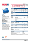 NDW3 Series NDW www.murata-ps.com OBSOLETE Isolated 3W Ultra Wide Input Sin Single DC/DC DC Converters SELECTION GUIDE Order Code Input Voltage Output Voltage V (Nom.) V 36 12 NDW3S3612C Input Current Output Current Efficiency Minimum Maximum (Min.) 0% Load 100% Load Load Load mA mA mA mA % 8 104 62.5 250 79 MTTF1 kHrs 1000 INPUT CHARACTERISTICS Parameter Voltage range Reflected ripple current Conditions Min. Typ. Max. Units 60 V mA p-p Typ. Max. Units ±2 0.03 0.05 3 ±2.5 0.2 0.2 W % % % 9 36V input with 10μF at input 60 FEATURES RoHS compliant OUTPUT CHARACTERISTICS 7:1 Wide range voltage input, 9-60VDC Rated power Voltage set point accuracy Line regulation Load regulation With external input/output capacitors Low line to high line 25% total load to 100% load Ripple BW=20Hz to 300kHz, with external input/output capacitors 20 30 mVrms Noise BW=DC to 20MHz, with external input/output capacitors 70 150 mVp-p Typ. Max. Units Parameter Operating temperature range –40°C to 85°C 0.05% Typical load regulation 1kVDC Isolation Efficiency from 79% at 36VIN Conditions Min. UL 94V-0 Package materials ISOLATION CHARACTERISTICS Low noise Parameter Conditions Min. Isolation test voltage Resistance Capacitance Flash tested for 1 second Viso = 1kVDC 1000 1 PRODUCT OVERVIEW The NDW3 series is particularly suitable for use in applications in railway, industry or telecommunication where variable input voltages are present. With an ultra wide input voltage range of 9-60VDC, the NDW3 series is suitable for use with nominal 12V, 24V or 48V systems. The NDW3 is housed in an industry standard package with a standard pinout. The NDW3 is packaged in a metal case for improved EMI shielding and is also encapsulated for superior thermal performance.. VDC GΩ pF 190 GENERAL CHARACTERISTICS1 Parameter Conditions Switching frequency 100% load to 25% total load Min. Typ. 20 Max. Units 260 kHz Max. Units TEMPERATURE CHARACTERISTICS Parameter Operation Storage Case temperature rise above ambient Conditions Min. Typ. -40 -50 100% Load, Nom VIN, still air 85 125 °C 16 ABSOLUTE MAXIMUM RATINGS Short-circuit protection Lead temperature 1.0mm from case for 10 seconds (to JEDEC JESD22-B106 ISS C) Minimum output load for specification Momentary 260°C 25% of rated load 1. Calculated using MIL-HDBK-217F FN2 with nominal input voltage at full load at TA = 25ºC. All specifications typical at TA=25°C, with recommended input/output capacitors (refer to application note), nominal input voltage and rated output current unless otherwise specified. For full details go to www.murata-ps.com/rohs www.murata-ps.com/support KDC_NDW3.B01 Page 1 of 4 NDW3 Series Isolated 3W Ultra Wide Input Single DC/DC Converters APPLICATION NOTES External Capacitance Although these converters will work without external capacitors, they are necessary in order to guarantee the full parametric performance over the full line and load range. All parts have been tested and characterised using the following values and test circuit. Value CIN 10μF, 100V COUT1 10μF low ESR Electrolytic Recommended Input & Output Capacitors +VIN +VOUT COUT1 NDW3 CIN -VIN -VOUT Output load The minimum load for correct operation is 25% of the full rated load across the specified input voltage range. Lower loads may cause a significant increase in output ripple and may cause the output voltage to exceed its specification transiently during power-down when the input voltage also falls below its rated minimum. TECHNICAL NOTES ISOLATION VOLTAGE ‘Hi Pot Test’, ‘Flash Tested’, ‘Withstand Voltage’, ‘Proof Voltage’, ‘Dielectric Withstand Voltage’ & ‘Isolation Test Voltage’ are all terms that relate to the same thing, a test voltage, applied for a specified time, across a component designed to provide electrical isolation, to verify the integrity of that isolation. Murata Power Solutions NDW3 series is 100% production tested at the stated isolation voltage. This is 1kVDC for 1 second. A question commonly asked is, “What is the continuous voltage that can be applied across the part in normal operation?” For a part holding no specific agency approvals, such as the NDW3 series, both input and output should normally be maintained within SELV limits i.e. less than 42.4V peak, or 60VDC. The isolation test voltage represents a measure of immunity to transient voltages and the part should never be used as an element of a safety isolation system. The part could be expected to function correctly with several hundred volts offset applied continuously across the isolation barrier; but then the circuitry on both sides of the barrier must be regarded as operating at an unsafe voltage and further isolation/insulation systems must form a barrier between these circuits and any user-accessible circuitry according to safety standard requirements. REPEATED HIGH-VOLTAGE ISOLATION TESTING It is well known that repeated high-voltage isolation testing of a barrier component can actually degrade isolation capability, to a lesser or greater degree depending on materials, construction and environment. The NDS3 series has an EI ferrite core, with no additional insulation between primary and secondary windings of enameled wire. While parts can be expected to withstand several times the stated test voltage, the isolation capability does depend on the wire insulation. Any material, including this enamel (typically polyurethane) is susceptible to eventual chemical degradation when subject to very high applied voltages thus implying that the number of tests should be strictly limited. We therefore strongly advise against repeated high voltage isolation testing, but if it is absolutely required, that the voltage be reduced by 20% from specified test voltage. This consideration equally applies to agency recognized parts rated for better than functional isolation where the wire enamel insulation is always supplemented by a further insulation system of physical spacing or barriers. RoHS COMPLIA
