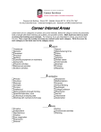 Once you have a sense of the career areas that match your interests, you can find occupations within those areas that you might enjoy. This worksheet is meant to be an introduction to these career areas. If you would like talk to a career counselor to explore the interest areas more completely or if you have additional questions about your future career, please schedule an appointment with a career counselor.