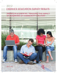 2012 DIsTance eDucaTIon surveY resuLTs TRends in eleaRning: TRaCking The iMpaCT of eleaRning aT CoMMuniTy Colleges April 2013 In Focus: The Year in Review 2012 The Great Recession Continues By Christine Mullins, Executive Director, Instructional Technology Council Recovery from the Great Recession has been slow and elusive. Most campus administrators have survived the worst of the recession, with no further cuts made to their department funding levels, but they have only experienced meager attempts to increase budget allocations. In its recent survey report, the State Higher Education Executive Officers (SHEEO) noted that, “although enrollment stabilized in 2012, the reduction in state and local support combined with an increase in inflation contributed to a nine percent decrease in state and local support per student in constant dollars from 2011. Per student support in 2012 is $5,896, the lowest level in the 25 years.” 1 Participants in this ITC survey reported that distance education enrollments grew by 6.52 percent from fall 2011 to fall 2012. This pace was slower than in previous years (fall 2007 to 2008 saw a 22 percent increase), but the increase distance education saw surpassed the overall 2.64 percent decline in student enrollment that the entire student population (including those enrolled in face-to-face classes) at colleges experienced. The economic downturn has had a measureable impact on the number of students attending college. During the peak of the recession, students and workers inundated community colleges in order to enhance their job skills, while college administrators worked frantically to meet the student demand by expanding their online course and program offerings. The situation is not as frantic or dire as it was several years ago, but since tuition does not pay for all of the operation costs at a community college, the decrease in state funding has meant that colleges continue to struggle to address chronic problems of student retention, course quality, ADA compliance, faculty training, student preparedness and accreditation-based assessment. The Rise of MOOCs It is hard to believe that massive open online courses (MOOCs) only became a newsworthy phenomenon in the summer of 2012, when professors at several big name institutions (Harvard University, Massachusetts Institute for Technology, MIT, Stanford University and Yale University), began partnering with Coursara, Udacity and EdX to offer free online courses to as many as 160,000 students per course. Whether each university’s motive was an altruistic attempt to teach students in developing countries, an effort to keep up with other universities, or a means to publicize their traditional online credit-based course offerings, universities have invested a great deal of money into these courses, for which they do not receive student tuition dollars. Many argue that they are financially unsustainable. MOOCs challenge the traditional academy and advocate for a more savvy, cost-effective and relevant way to prepare students. MOOCs hold a great deal of promise. For example, in October 2012 the Bill & Melinda Gates Foundation offered to fund the creation of ten high-quality MOOCs to engage students in general and developmental education.2 However, controversy over MOOCs reigns. Distance educators fear that the tendency for naysayers to confuse MOOCs with traditional online learning could negatively impact distance education, at a time when online student completion rates, student-teacher interaction, and quality assessments at community colleges are higher than ever. “State Higher Education Finance FY 2012,” March 2013, State Higher Education Executive Officers. http://www.sheeo.org/sites/ default/files/publications/SHEF-FY12.pdf. 1 Visit http://www.insidehighered.com/sites/default/server_files/files/MOOC%20RFP%20and%20Application.pdf for more information. 2 2 itc 2012 Distance Education Survey Results Many educators are concerned that the student completion rate for MOOCs is extremely low and the courses lack the student support services necessary to help students succeed. A survey of MOOC professors found that the average student enrollment in a MOOC is 33,000, with a 7.5 percent average passing rate.3 Only 350 of approximately 12,700 Coursera users who registered for a MOOC on bioelectricity from Duke University took the final exam—a dropout rate of 97 percent.4 Josh Kim, director of learning and technology at Dartmouth College, writes that MOOCs could actually increase costs for community colleges, because “the wraparound services that students need to be successful are both costly and hard to monetize. At my college, for example, students pay by the credit hour for the courses they take, but the library and the tutoring center are free and all you can eat. If we outsourced the classes but kept the support, the entire economic model would collapse.”5 Meanwhile, in early February, the American Council on Education advised its 1,800 member colleges that they can be comfortable conferring credit on students who have passed five MOOCs offered through Coursera. Stephen Kolowich writes that “whether colleges take the council’s advice, however, is an open question.6 Many community colleges are exploring ways to offer credit to students who take MOOCs. For example, the University of Southern New Hampshire began offering competency-based associate degrees in general studies in January 2013. For $5,000, the college will assess whether students have 120 competencies to earn an associate degree.7 Several community colleges are using LearningCounts, an affordable online portfolio assessment service the Council of Adult and Experiential Learning offers, to review a student’s prior learning assessment. Meanwhile, California State Senator Darrell Steinberg is not the only lawmaker who has touted MOOCs as the cost-effective way for cash-strapped states and colleges to meet the growing student demand for inexp