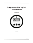 Programmable Digital Tachometer USER MANUAL REV. 7 08-10001-10500 TABLE OF CONTENTS PARTS IDENTIFICATION........................................................................ 1 BUTTON FUNCTIONS VIEW BATTERY VOLTAGE......................................................................................... 1 VIEW TOTAL HOURS................................................................................................. 1 DISABLE OUTPUTS................................................................................................... 1 OUTPUT WIRING.........................................................................................2 OPTIONAL ADAPTER CABLES WITH WEATHER-PACK CONNECTOR...................................................................... 3 WITH DEUTSCH CONNECTOR................................................................................. 3 PROGRAMMING SINGLE OUTPUT MODELS........................................................................................4 DUAL OUTPUT MODELS........................................................................................... 4 RESTORING FACTORY SETTINGS.............................................. 5 SCROLL FEATURE..................................................................................... 5 TROUBLE SHOOTING............................................................................. 6 i Thoroughly read and understand all information presented in this manual before using your digital control. NOTICE: The information contained in this manual is subject to change without notice. LOR Manufacturing shall not be liable for errors contained herein or for consequential damages in connection with the furnishing, performance, or use of this material. CAUTION DISCONNECT FROM BATTERY BEFORE WELDING ON MACHINE. FAILURE TO DO THIS MAY CAUSE DAMAGE TO ELECTRONIC COMPONENTS, THUS VOIDING WARRANTY. TWO YEAR WARRANTY LOR Manufacturing Co., Inc., for two years from the date of shipment of this item from LOR Manufacturing Co., Inc. facilities, will repair or replace the item from LOR Manufacturing Co., Inc. (FOB Weidman, MI U.S.A.) if it should prove to be defective in materials or workmanship. This warranty does not cover damage resulting from mishandling in transit, vandalism, misuse, abuse, acts of nature, alteration or lack of reasonable care. LOR Manufacturing Co., Inc. does not assume, and is not responsible for any real or consequential damages from claims against the performance of our product, nor is it liable for any cost related to loss of life, property, or revenue. Further, LOR Manufacturing Co., Inc. is in no way responsible for installation of our product, and will assume no cost of reinstallation or removal. LOR Manufacturing Co., Inc. warranty is in lieu of all other warranties expressed or implied. You should test your entire system daily to ensure that all components are working properly. No implied warranty of merchantability or fitness for a particular purpose shall extend beyond two years from date of shipment. The liability of LOR Manufacturing Co., Inc., under any such implied warranty and under this limited warranty shall be limited to the repair or replacement of defective parts within two years of date of shipment. LOR Manufacturing Co., Inc. shall not be liable for any incidental or consequential damages. Some states do not allow limitations of incidental or consequential damages, so the above limitations or exclusions may not apply to you. This warranty gives you specific rights, and you may also have other rights which vary from state to state. ii PARTS IDENTIFICATION Red LED (lights when Output 1 is activated) WING NUTS LCD DISPLAY BEZEL FACE PLATE MOUNTING BRACKET DOWN BUTTON UP BUTTON SET BUTTON OUTPUT RECEPTACLE HOUSING CAN BUTTON FUNCTIONS VIEW BATTERY VOLTAGE = Press and hold + Image above is an example of a 12 Volt gauge display. Actual voltage displayed by your gauge may vary. VIEW TOTAL HOURS = Press and hold DISABLE OUTPUTS = Press and hold for 4 seconds. In this mode the LCD will alternate displaying engine RPMs for 9 to 10 seconds and “off” for 1 second. To revert to ENABLED OUTPUTS simply press once. 1 OUTPUT WIRING IMPORTANT: It is of the utmost importance that the digital control be connected to a clean power source. The clean power source can or could include (first choice) the accessory side of the keyswitch or (second choice) the run side of the keyswitch. A clean power source is the result of filtering unwanted voltage spikes and EMF. Spikes can be prevented by the installation of clamping diodes at their source (coils). 7.5 AMP FUSE RED GREEN BROWN WHITE (Dual Output Only) BLACK A E D B C POSITION A B C D E = = = = = FUNCTION WHITE - Signal from alternator or magnetic pickup BLACK - Ground GREEN - Positve Output #1 to solenoid coil BROWN - Positive Output #2 to solenoid coil (Dual Output Only) RED - Positve Voltage from clean power source 2 OPTIONAL ADAPTER CABLES WITH WEATHER-PACK CONNECTOR POSITION D C B A D C B A COLOR FUNCTION BROWN GREEN RED BLACK WHITE Positive Output #2 to solenoid coil (Dual Output Only) Positve Output #1 to solenoid coil Positve voltage from clean power source Ground Signal from alternator or magnetic pickup WITH DEUTSCH CONNECTOR 1 2 3 6 5 4 POSITION 1 2 3 4 5 6 COLOR FUNCTION RED BLACK WHITE GREEN BROWN n/a Positve voltage from clean power source Ground Signal from alternator or magnetic pickup Positve Output #1 to solenoid coil Positive Output #2 to solenoid coil (Dual Output Only) n/a 3 PROGRAMMING SINGLE OUTPUT MODELS 1. Press and hold + Continue to hold until display reads Release buttons. 2. Press the while turning ignition key to “ON” position. 0 button once. Release button. 3. 4. Use the or Press the button. Use the or Press the button. button to set the HI RPM Value. button to set the Lo RPM Value. INCREMENT DOWN SET BUTTON INCREMENT UP DUAL OUTPUT MODELS 1. Press and hold + Continue to hold until display reads Release buttons. 2. Press the