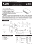 MIL-PRF-38534 AND 38535 CERTIFIED FACILITY 10 AMP, 500V, 3 PHASE IGBT BRUSHLESS MOTOR CONTROLLER 4370 FEATURES: 500 Volt Motor Supply Voltage 10 Amp Output Switch Capability Shoot-Through/Cross Conduction Protection Hall Sensing and Commutation Circuitry on Board "Real" Four Quadrant Torque Control Capability Good Accuracy Around the Null Torque Point Hermetic Package Design for High Voltage Isolation Plus Good Thermal Transfer 60°/ 120º Phasing Selectable Contact MSK for MIL-PRF-38534 Qualification Status DESCRIPTION: The MSK4370 is a complete 3 Phase IGBT Bridge Brushless Motor Control System in a convenient isolated baseplate package. The device is capable of 10 amps of output current and 500 volts of DC bus voltage. It has the normal features for protecting the bridge. Included is all the bridge drive circuitry, hall sensing circuitry, commutation circuitry and all the current sensing and analog circuitry necessary for closed loop current mode (torque) control. When PWM'ing, the transistors are modulated in locked anti-phase (complementary) mode for the tightest control and the most bandwidth. Provisions for applying different compensation schemes are included. The MSK4370 has good thermal conductivity of the IGBT's due to a hermetic isolated package design that allows direct heat sinking of the device without insulators. BLOCK DIAGRAM PIN-OUT INFORMATION TYPICAL APPLICATIONS 3 Phase Brushless DC Motor Control Servo Control Fin Actuator Control Gimbal Control AZ-EL Control 1 2 3 4 5 6 7 8 9 10 11 REFOUT HALL A HALL B HALL C 60/120 BRAKE CLOCK SYNC DIS GND NC NC 1 12 13 14 15 16 17 18 19 20 21 22 E/A OUT E/AGND +CURRENT COMMAND -CURRENT COMMAND +15 VIN CURRENT MONITOR -15 VIN NC NC ILIMIT ADJUST 23 24 25 26 27 28 29 30 31 32 33 GND NC NC LGND RTN RTN CVS CVS CØ CØ CV+ 34 35 36 37 38 39 40 41 42 43 BVS BVS BØ BØ BV+ AVS AVS AØ AØ AV+ 8548-24 Rev. L 1/15 ABSOLUTE MAXIMUM RATINGS 7 500V High Voltage Supply 8 ±13.5V Current Command Input -0.2V to REFOUT Logic Inputs 15 mA REFOUT External Load 5 mA E/A OUT External Load -0.2V to +15V Clock SYNC Input 10 Amps Continuous Output Current 5 Amps Continuous Output Current @ 125°C Case 15 Amps Peak Output Current 0.66°C/W RθJC Thermal Resistance (Output Switches) -65°C to +150°C TST Storage Temperature Range 9 TLD Lead Temperature Range (10 Seconds) +300°C TC Case Operating Temperature MSK4370 -40°C to +85°C MSK4370H -55°C to +125°C +150°C TJ Junction Temperature ELECTRICAL SPECIFICATIONS Test Conditions Parameter Group A Subgroup INPUT CURRENT Output PWM'ing +15 VIN Current Command=0 Volts Output PWM'ing -15 VIN Current Command=0 Volts Free Running PWM Clock Frequency CLOCK SYNC INPUT VIL 1 VIH 1 Duty Cycle 1 Sync Frequency 1 LOGIC INPUTS (Hall A,B,C,Brake,60°/120°) VIL 1 VIH 1 DIS VIL 1 VIH 1 REFERENCE ANALOG SECTION Current Command Input Range 1 Current Command Input Current 1 Transconductance 6 Offset Current Current Monitor 6 @ 15mA Load Current Command=0 Volts Current Motor Voltage Swing Error Amp E/A OUT Voltage Swing 1 Slew Rate 1 Gain Bandwidth Product 1 Large Signal Voltage Swing 1 Current Limit Adjust OUTPUT SECTION Voltage Drop Across Bridge (1 Upper & 1 Lower) Min. MSK4370 2 Typ. Max. Units 4 5 1 2 3 1 2 3 4 5,6 14 14 89 83 106 24 26 23 17 17 150 150 150 60 60 60 20 20 14 - 89 24 17 - 150 60 20 - mA mA mA mA mA mA KHz KHz - 12.5 10 2.5 90 12.5 10 Clock+3 Clock+0 - 2.5 90 Clock+0 - Clock+3 V V % KHz - 3.0 - 0.8 - 3.0 - 0.8 - V V 1 12.5 5.82 6.25 2.5 6.57 12.5 5.82 6.25 2.5 6.57 V V V 4 5,6 1 4 5,6 - -13.5 0.90 0.85 -25 0.90 0.85 -12 1.0 1.0 0 1.0 1.0 - +13.5 1.5 1.1 1.15 +25 1.1 1.15 +12 -13.5 0.85 -50 0.85 -12 1.0 0 1.0 - +13.5 1.5 1.15 +50 1.15 +12 V mA A/V A/V mA V/A V/A V 1 -12 6.8 175 4 8 6.5 275 5 +12 6 -12 6.8 175 4 8 6.5 275 5 +12 6 V V/µsec MHz V/mV Amps - - 35 3 4.5 7.5 5 - - 35 3 5 5 - V V mA nsec µsec @ 5mA Load @ 5mA Load Pin 22 1.92KΩ to GND 1 5 Amps @ 125°C TC Leakage Current 1 trr 1 Dead Time 1 MSK4370H 5 Typ. Max. Min. All Switches off, 270V,150°C NOTES: 1 2 3 4 5 6 7 8 9 Guaranteed by design but not tested. Typical parameters are representative of actual device performance but are for reference only. Industrial grade devices shall be tested to subgroups 1 and 4 unless otherwise specified. Military grade devices ("H" suffix) shall be 100% tested to subgroups 1,2,3 and 4. Subgroups 5 and 6 testing available upon request. Subgroup 1,4 TA = TC = +25°C 2,5 TA = TC = +125°C 3,6 TA = TC = -55°C Measurements do not include offset current at 0V current command. Continuous operation at or above absolute maximum ratings may adversly effect the device performance and/or life cycle. When applying power to the device, apply the low voltage followed by the high voltage or alternatively, apply both at the same time. Do not apply high voltage without low voltage present. Internal solder reflow temperature is 180°C, do not exceed. 2 8548-24 Rev. L 1/15 APPLICATION NOTES MSK4370 PIN DESCRIPTIONS AV+, BV+, CV+ - are the power connections from the hybrid to the bus. The pins for each phase are brought out separately and must be connected together to the V+ source externally. The external wiring to these pins should be sized according to the RMS current required by the motor. These pins should be bypassed by a high quality monolithic ceramic capacitor for high frequencies and enough bulk capacitance for keeping the V+ supply from drooping. E/A OUT -is the current loop error amp output connection. It is brought out for allowing various loop compensation circuits to be connected between this and E/A-. AØ, BØ & CØ-are the connections to the motor phase windings from the bridge output. The wiring to these pins should be sized according to the current required by the motor. There are no short circuit provisions for these outputs. Shorts to V+ or ground from these pins must be avoided or the bridge will be destroyed. CLOCK SYNC -is an input for synchronizing to an external clock. The sync circuit will trigger o