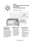 Agilent Two-tone and Multitone Personalities for the E8267C PSG Vector Signal Generator Application Note 1410 Generating two-tone and multitone signals at microwave frequencies has never been easier The E8267C PSG vector signal generator quickly and conveniently produces multitone signals from a single signal generator. The PSG is the first microwave signal generator with an integrated I/Q modulator and internal baseband generator. This vector approach facilitates generating complex I/Q modulation previously available only in the RF domain. Plus it improves accuracy and repeatability of the test stimulus while reducing test time and capital equipment costs! E8267C PSG vector signal generator key features: • 250 kHz to 20 GHz frequency range • Up to +18 dBm output power • Internal baseband generator • 80 MHz RF modulation bandwidth • Flexible waveform sequencer • Variable I/Q offset, amplitude, and phase to optimize signal quality • 32 Msamples (160 MB) baseband memory for waveform playback • 1.2 Gsamples (6 GB) memory for waveform storage • LAN and GPIB connectivity Two-tone and multitone personalities key features: • Quickly setup and generate non-linear distortion test signals • Easily navigate the table editor user interface to configure custom multitone patterns • Take advantage of the internal baseband generator processing power to calculate I/Q waveforms instantly • Set relative tone spacing and power • Set initial phase relationships (fixed or random) • View peak-to-average statistics • Store/recall custom configurations and I/Q waveforms Table of Contents What is IMD? . . . . . . . . . . . . . . . . . . . . . . . . . . . . . . . . . . . . . . . . . . . . . . . . . . . . . . . . . . . . . .3 How is IMD Characterized? . . . . . . . . . . . . . . . . . . . . . . . . . . . . . . . . . . . . . . . . . . . . . . . . . . .4 Overview . . . . . . . . . . . . . . . . . . . . . . . . . . . . . . . . . . . . . . . . . . . . . . . . . . . . . . . . . . . . . .4 Dependence on phase relationships . . . . . . . . . . . . . . . . . . . . . . . . . . . . . . . . . . . . . . .4 Analog Test Stimulus . . . . . . . . . . . . . . . . . . . . . . . . . . . . . . . . . . . . . . . . . . . . . . . . . . . . . . . .7 Vector Test Stimulus . . . . . . . . . . . . . . . . . . . . . . . . . . . . . . . . . . . . . . . . . . . . . . . . . . . . . . . . .9 Analog Test Stimulus Versus Vector Test Stimulus . . . . . . . . . . . . . . . . . . . . . . . . . . . . . . .12 The PSG Vector Signal Generator Two-tone and Multitone Personalities . . . . . . . . . . . . .15 Two-tone personality . . . . . . . . . . . . . . . . . . . . . . . . . . . . . . . . . . . . . . . . . . . . . . . . . . .16 Multitone personality . . . . . . . . . . . . . . . . . . . . . . . . . . . . . . . . . . . . . . . . . . . . . . . . . . .17 Specifications . . . . . . . . . . . . . . . . . . . . . . . . . . . . . . . . . . . . . . . . . . . . . . . . . . . . . . . . . . . . .18 Signal Studio for Enhanced Multitone . . . . . . . . . . . . . . . . . . . . . . . . . . . . . . . . . . . . . . . . .18 Connectivity . . . . . . . . . . . . . . . . . . . . . . . . . . . . . . . . . . . . . . . . . . . . . . . . . . . . . . . . . . . . . .19 Recommended Configuration . . . . . . . . . . . . . . . . . . . . . . . . . . . . . . . . . . . . . . . . . . . . . . . .19 Ordering Information . . . . . . . . . . . . . . . . . . . . . . . . . . . . . . . . . . . . . . . . . . . . . . . . . . . . . . .19 PSG Firmware Updates . . . . . . . . . . . . . . . . . . . . . . . . . . . . . . . . . . . . . . . . . . . . . . . . . . . . .19 Related Literature . . . . . . . . . . . . . . . . . . . . . . . . . . . . . . . . . . . . . . . . . . . . . . . . . . . . . . . . . .20 References . . . . . . . . . . . . . . . . . . . . . . . . . . . . . . . . . . . . . . . . . . . . . . . . . . . . . . . . . . . . . . .20 2 What is IMD? Two-tone and multitone signals are used extensively in the communications industry to test for nonlinear distortion at the component, device, sub-system, and system level. Intermodulation distortion (IMD) is a particular type of nonlinear distortion; other types include harmonic distortion and cross modulation. IMD is the primary cause of in-band and out-of-band spectral regrowth (i.e. distortion) and results from unwanted intermodulation between the multiple frequency components that comprise a signal. Intermodulation occurs as a result of the signal traversing components and devices with nonlinear transfer functions. Figure 1 illustrates some of the IMD products generated when two tones at frequencies f1 and f2 are presented to the input of a nonlinear device. Amplitude 2nd order IMD (f2-f1) 3rd order IMD (2f1-f2) Typical channel bandwidth 3rd order IMD (2f2-f1) 2nd order IMD (f1+f2) 5th order IMD (3f2-2f1) 5th order IMD (3f1-2f2) f1 f2 3rd harmonics 2f1 2f2 3f1 3f2 Frequency 2nd harmonics Figure 1. Two-tone IMD products commonly generated by nonlinear devices. Nonlinear distortion cannot be corrected using equalization techniques (that only works with linear phenomena). As a result, quantitatively characterizing the effect of nonlinear behavior from the component to the system level is an important part of the transmitter/receiver design and verification process. High levels of IMD indicate significant nonlinearities that not only degrade the system performance, but also interfere with neighboring channels. In-band IMD refers to the intermodulation products that fall within the channel bandwidth of the component, device, or system under test. This type of distortion is particularly undesirable since it cannot be filtered and directly interferes with the signal of interest. Although generating out-of-band distortion is also objectionable behavior that must be characterized and addressed (ask your spectral neighbor), simple filtering can typically be applied to correct the problem. 3 How is IMD Characterized? Overview IM