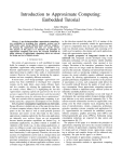 Introduction to Approximate Computing: Embedded Tutorial Lukas Sekanina Brno University of Technology, Faculty of Information Technology, IT4Innovations Centre of Excellence Bozetechova 2, 61266 Brno, Czech Republic Email: sekanina@fit.vutbr.cz Abstract—A new design paradigm—approximate computing— was established to investigate how computer systems can be made better—more energy efficient, faster, and less complex— by relaxing the requirement that they are exactly correct. The purpose of this paper is to introduce the principles of approximate computing and survey the research conducted in major subareas of approximate computing which are relevant for design and test of digital circuits. I. I NTRODUCTION The notion of approximation is well established in many fields, for example, in computer science (e.g. approximation algorithms, approximate string matching), mathematics (e.g. function approximation) and engineering (e.g. approximate signal processing in complex video, audio, or communication systems). However, the reasons for introducing the approximations can have completely different motivation. In recent years, a new design paradigm—approximate computing—has been established to investigate how computer systems can be made better—more energy efficient, faster, and less complex—by relaxing the requirement that they are exactly correct. Mittal [1] is highlighting the fact that “approximate computing exploits the gap between the level of accuracy required by the applications/users and that provided by the computing system, for achieving diverse optimizations.” This new research effort in approximate computing is primarily caused by a progressive development of two domains: (1) Low power consumption requirements on electronics. Energy efficiency is definitively one of the major driving forces of current computer industry which is relevant for supercomputers on the one hand as well as small portable personal electronics and sensors on the other hand. In this context, approximate computing exploits the fact that some applications are inherently error resilient. Errors are not recognizable because human perception capabilities are limited (e.g., in multimedia applications), no golden solution is available for validation of the results (e.g., in data mining applications), or users are willing to accept some inaccuracies (e.g., when the battery of a mobile phone is almost depleted, but at least some basic functionality is still requested). Therefore, the error (the accuracy of computations) can be used as a design metric and traded for performance or power consumption. Accepting approximate computing as a standard design paradigm requires a deeper understanding of inherent application resilience across a broader range of applications. One of the studies conducted in this direction reported that about 83 % of runtime of the applications (that are potentially suitable for approximations) is spent in computations that can be approximated [2]. This result was obtained using a benchmark suite consisting of 12 widely used recognition, data mining and search applications, along with representative input data. (2) Specific properties of integrated circuits in the nanoscale era. Integrated circuits developed using recent fabrication technology (45 nm and below) exhibit reliability issues and uncertainties especially when operated at low voltages. Deviations of the transistors’ parameters from the average values are no longer small due fabrication variations caused at the nanoscale. Adopting conventional fault tolerance mechanisms (such as introducing redundant components) to increase the circuit reliability requires additional resources and power. By allowing approximations in computing and graceful performance degradation at run-time in the presence of uncertainties or errors, each component could deliver the best possible tradeoff between the quality of result and energy consumption. Hence approximate computing represents a potential solution to implement energy efficient systems on inherently unreliable platforms [3], [4]. The field of approximate computing is at an early stage of development, but a growing number of papers dealing with this topic indicates a very active research community (Fig. 1). The relevant research communities involved in approximate computing cover the whole computer stack, integrating thus the areas of microelectronics, circuits, components, architecture, networks, operating systems, compilers and applications [1], [5]. Approximations are conducted for embedded systems, ordinary computers, graphics processing units (GPUs) and field-programmable gate arrays (FPGAs). Substantial energy consumption reductions are expected for data centers and supercomputers [6], [7]. The purpose of this paper is to introduce the principles of approximate computing and survey the research conducted in major subareas of approximate computing which are relevant for design and test of digital circuits. Approximate computing in software and compiler design will be addressed only marginally. The plan for this paper is as follows: • The principles of approximate computing (Section II) • Ad hoc circuit approximations (Section III) • Design automation methods in approximate computing (Section IV) Fig. 1. The number of results for “approximate computing” by Google Scholar (January 2016). • • Software approximation and platforms supporting approximate computing (Section V) Evaluation of approximation techniques (Section VI) II. T HE PRINCIPLES OF APPROXIMATE COMPUTING In approximate computing, the requirement on functional equivalence of the specification and implementation can be relaxed in order to not only reduce power consumption but also to accelerate computations, minimize the on-chip area or optimize other system parameters. Applications suitable for approximate computing can be broadly classified to four classes [8]: 1) Applications with analog inputs which o