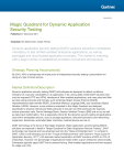 G00225672 Magic Quadrant for Dynamic Application Security Testing Published: 27 December 2011 Analyst(s): Neil MacDonald, Joseph Feiman Dynamic application security testing (DAST) solutions should be considered mandatory to test all Web-enabled enterprise applications, as well as packaged and cloud-based application providers. The market is maturing, with a large number of established providers of products and services. Strategic Planning Assumption(s) By 2016, 40% of enterprises will make proof of independent security testing a precondition for using any type of cloud service. Market Definition/Description Dynamic application security testing (DAST) technologies are designed to detect conditions indicative of a security vulnerability in an application in its running state. Most DAST solutions test only the exposed HTTP and HTML interfaces of Web-enabled applications, and many also test Web services using protocols and formats, such as Simple Object Access Protocol (SOAP), representational state transfer (REST), Extensible Markup Language (XML) and JavaScript Object Notation (JSON). However, some solutions evaluated in this Magic Quadrant are designed specifically to expand well beyond Web protocols to include non-Web protocols (for example, remote procedure calls, Server Message Block, Session Initiation Protocol [SIP] and so on) as well as data input malformation. This is especially critical for the dynamic security testing of applications used within embedded devices, such as storage appliances, telecommunications and networking equipment, directories, automated teller machines, medical devices and so on. DAST technology is the focus of this Magic Quadrant. Static application security testing (SAST) solutions are explored in detail in "Magic Quadrant for Static Application Security Testing." DAST technology has matured and has advanced well into the "Slope of Enlightenment," in contrast to SAST, which is still emerging out of the "Trough of Disillusionment" (see Gartner's "Hype Cycle for Application Security, 2011"). We estimate market penetration of DAST solutions at 60% to 70% of enterprises. However, the percentage of applications tested within a given enterprise varies broadly. Enterprises typically apply DAST first to external-facing, Web-enabled applications and then expand its usage over time. Magic Quadrant Figure 1. Magic Quadrant for Dynamic Application Security Testing Source: Gartner (December 2011) Vendor Strengths and Cautions Acunetix Acunetix is an established vendor with a strong focus on application security that has offered its stand-alone DAST Web vulnerability scanner since 2002. Acunetix is a smaller, privately held startup vendor, and its smaller size and lack of enterprise-class features could be an inhibiting factor for some users. Acunetix should be considered by information security specialists and penetration testing professionals looking for a lower and straightforwardly priced, commercially supported Web application security testing tool. Strengths ■ Acunetix provides interactive application security testing (IAST) capabilities with its AcuSensor implementation for applications written in .NET and PHP. ■ Acunetix products are among the most inexpensive in the market. Page 2 of 32 Gartner, Inc. | G00225672 ■ Acunetix has a straightforward pricing model, an advantage compared to many vendors' convoluted models. ■ Customers indicate that the solution is easy to use and that it can be configured for advanced and deep scanning. Cautions ■ Acunetix does not have DAST as a service offering. ■ Its IAST offering doesn't support Java-based Web application platforms. ■ Acunetix does not offer out-of-the-box capabilities for integration with development/testing platforms typically requested for enterprise-class implementations. ■ 24/7 support is not available. ■ Testing of rich Internet applications (RIAs) based on Flash/Flex is not supported. ■ There is no Web application firewall (WAF) integration. Cenzic Cenzic is an established, dedicated DAST solution provider with a strong focus on application security, offering DAST products (Hailstorm), testing as a service (ClickToSecure Managed) and cloud-based testing (ClickToSecure Cloud). Cenzic has demonstrated vision by providing a DAST product, and was an early provider of DAST testing services. Cenzic also offers enterprise-class features, such as software life cycle (SLC) integration and enterprisewide visibility and reporting across multiple DAST scanners. Cenzic should be considered by information security specialists, penetration testing professionals and development managers looking for enterprise-class DAST testing capabilities across multiple users (including pen testers) and those considering expanding DAST testing from information security into development. Strengths ■ Cenzic offers out-of-the-box integration into the SLC, with integration for HP's Quality Center, IBM Rational ClearQuest and Bugzilla. Other integration can be performed via its XML APIs. ■ Generic XML-based vulnerability protection information is exposed for Barracuda, Citrix, F5, Imperva and Trustwave WAFs. Specific integration with several providers is planned for 2012. ■ The ability to pause a test in process, modify the test and resume it, as well as the ability to step through an assessment and set specific breakpoints (for example, at particular events and URLs) appeals to information security professionals and pen testers. ■ An interactive scanning feature provides the ability to have a user navigate an application and have the Cenzic engine simultaneously attack the application in real time for vulnerabilities, such as cross-site scripting, SQL injection and buffer overflows. Gartner, Inc. | G00225672 Page 3 of 32 ■ There are a large number of out-of-the-box Smart Attack libraries for testing that are updated weekly and directly modifiable, if needed, by customers. ■ Hailstorm provides XML-based protoco