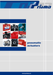 pneumatic actuators www.prisma.es GRA 201609 MECÁNICA S.L PRISMA The company Certifications ALUMINIUM PNEUMATIC ACTUATORS 1 2 Technical features___________________________________________ 3 PA range________________________________________________ 5 P range_________________________________________________ 6 Disassembly and materials ____________________________________ 7 PAW-PA30 dimensions_______________________________________9 P40-PA70 dimensions_______________________________________10 Cycle time, weights and capacity________________________________11 Operating torque__________________________________________11 POLYAMIDE PNEUMATIC ACTUATORS Technical features _________________________________________ 13 PP range_______________________________________________14 Disassembly and materials ___________________________________15 PP dimensions____________________________________________16 Cycle time, weights and capacity________________________________17 Operating torque__________________________________________17 Evolution of polyamide range___________________________________18 STAINLESS STEEL PNEUMATIC ACTUATORS Technical features _________________________________________ 19 PI range_______________________________________________20 Disassembly and materials ___________________________________21 PI dimensions___________________________________________22 Cycle time, weights and capacity_______________________________ 23 Operating torque__________________________________________ 23 New model of PI actuators____________________________________ 24 SPECIAL ACTUATORS 180º rotation actuators______________________________________ 25 High and low temperature actuators_____________________________ 26 Marine environment actuators_________________________________ 26 Fail open actuators _________________________________________ 26 Reverse actuators__________________________________________ 26 Shaft mounted at 90º_______________________________________ 26 Stainless Steel options______________________________________ 26 Heavy Duty pneumatic actuators _______________________________ 26 MOUNTING KITS, ELECTRIC ACTUATORS AND ELEMENTS OF REGULATION AND CONTROL S.L MECÁNICA The brand name of Prisma actuators has become well-known all around the world and is now a point of reference in this industry because of the robustness and reliability of its products. This success relies on continuously improving the quality and enhancing the development of our products and also to tailoring our service to meet the individual requirements of every one of our customers. Since it was founded in 1980, Prisma has grown remarkably. In recent times our mechanical know-how as well as our extensive technical knowledge has evolved to offer complete solutions in the automation of valves to control the process of fluid conduction. Mecánica Prisma develops four pneumatic actuator ranges, according to different environments of application: Aluminium, Stainless Steel, Polyamide and for High Temperatures. All manufactured according to international norms. Mecánica Prisma is accredited by quality norm, ISO-TS 29001, API Q1 and 65% of its production is exported to more than 45 countries worldwide. ISO-TS 29001 / API Q1 Prisma offers a wide range of products for valve automation including pneumatic actuators, electric actuators and elements of regulation and control: solenoid valves, limit switch boxes, positioners, travel stops, declutchable gearboxes, handwheels, etc. All actuators can be mounted onto any kind of valve, due to the wide range of mounting kits that Prisma develops and produces. Prisma pneumatic actuators are available in double acting and spring return, covering a torque range from 17Nm to 65.000Nm at 6 bar. Industrial applications: Chemical, Nuclear, Electronics, Automotive, Food and Beverage, Pharmaceutical; and other sectors such as Iron and Steel, Power Plants, Water Treatment, Oil & Gas, Off-Shore plants, etc. 1 1 CERTIFICATIONS ISO-TS 29001 / API Q1 IEC-61508-SIL PH-94007802-LGAI TAC-DNV ATEX-LOM PED-PA60-PA70-BV ATEX-LOM-PA 2 TR CU CERTIFICATE 2 ALUMINIUM PNEUMATIC ACTUATORS TECHNICAL FEATURES Rotation Angle and Torques Pressure Aluminium actuators, 0º-90º or 0º-180º rotation angle to pilot ball, butterfly and plug valves. Broad range of actuators, both Double Acting and Spring Return, from 17Nm to 5000 Nm at 6 bar. May be actioned with air or any nonagressive fluid up to 8 bar pressure. Normal Working Temperature -32ºC to +90ºC INTERNALLY AND EXTERNALLY COATED On demand: - Low temp. (-48ºC to +80ºC) BY CATAPHORESIS + RILSAN® Manufactured with materials resistant to oxidation. Silicone free. - High temp. (-30ºC to +120ºC) Spring Security System Spring Security System, making manipulation and mounting easy and safe. All components are protected against corrosion. DOUBLE CORROSION RESISTANCE guaranteed. CATAPHORESIS Electrochemical process that provides high corrosion resistance by means of 20 microns of uniform epoxy resin surface RILSAN® Polyamide 11 coating (250 microns). Offers high resistance to corrosion, wearing and impacts. Elements of Regulation and Control May be equipped with limit switches, solenoid valve, positioner and manual override by wheel or declutchable gearbox. RILSAN® 250μ CATAPHORESIS 20μ ALUMINIUM Resistance to Saline Smog Room: B-117-73 > 1000h. 17Nm _________________________________________________________ 3 Stroke Adjustments External stroke adjustments to regulate opening (+85º to +92º) and closing (-2º to +5º) of the valve, both in double acting and spring return. Predominately used in butterfly valves, to adjust closing of the disc. Mounting Kits Broad range of couplings for any kind of valve adaptation. Directives Conforming to all International Directives: ISO, DIN, NAMUR, VDI/VDE, ATEX, CE, DNV, PCT. NAMUR Pneumatic connection for solenoid valve installation Visual Indicator New visual indicator for PA00 to PA30, with four indicating positions. Cam position ind