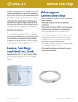 Laminar Seal Rings A Smalley Laminar Seal Ring set is a metallic labyrinth seal consisting of multiple rings in a groove. The arrangement and the specific orientation of the rings are dictated by the application and the severity of the environment. There are 16 series of standard imperial and Metric Laminar Seal Ring configurations from which to select. 8 of these series are sets consisting of single-turn rings. The other 8 series are sets consisting of double-turn rings. Within each series are operational ring-set configurations in both imperial and metric sizes. The selection of the appropriate set should be determined by the application. For some applications a complete labyrinth configuration (i.e.; a complete labyrinth configuration is one which has rings staggered within the set) is necessary due to a severe environment where contamination is highly probable. In other applications design engineers can keep the groove dimensions minimal by specifying laminar sets with rings clinging either to the bore or to the shaft. Laminar Seal Rings Available From Stock Advantages of Laminar Seal Rings • No friction with other rotating components, ideal for high speed applications. • Prevent dirt and splash water from contaminating components. • When used in conjunction with other seals, Laminar Seals provide a primary seal against severe contamination, before the contaminants come in contact with the secondary seal. • Sets of multiple rings provide an efficient labyrinth seal. • Rings may be produced from a wide variety of alloys to withstand more severe conditions including higher temperatures and corrosive environments. • As a metallic mechanical seal they can outperform rubber seals in durability and life expectancy. • The change from rubber to metal reduces the need for frequent seal replacement. Standard parts from 5/8’’ to 50’’ and 15 mm to 1,300 mm. Special seals manufactured with No-Tooling-Charges. Smalley’s Laminar Seal Rings are interchangeable with FEY Rings. INTERCHANGE LISTING SMALLEY FEY QH AS QHK ASK QS IS QSK ISK QHD ASD QHKD ASKD QSD ISD QSKD ISKD FK3 FK6 CONSULT SMALLEY ENGINEERING FK5 Manufactured in USA Smalley (847) 719-5900 103 Laminar Seal Rings Selection Guide Standard Laminar Ring Sets Available Single -Turn Laminar Seal Rings Used in a variety of applications, this series of Seal Rings should be utilized for light to medium duty applications, dependent on the ring configuration specified. The sets are comprised of single-turn rings in either 3 rings per set or 5 rings per set. APPLICATIONS: 3 ring sets protect components from low dirt and low splash water contamination. 5 ring sets provide a better labyrinth seal to protect components from medium dirt and medium splash water contamination. Double -Turn Laminar Seal Rings The sets are comprised of double-turn rings in either 2 rings per set or 3 rings per set. The double-turn rings fit tighter in the bore or on the shaft, provide complete 360° surface contact and resist higher axial/radial forces than single-turn ring sets, for medium to heavy duty applications. APPLICATIONS: 2 ring sets protect components from medium dirt and medium splash water contamination. 3 ring sets provide a better labyrinth seal to protect components from heavy dirt and heavy splash water contamination. 104 smalley.com No-Tooling-Charges™ For Customs Laminar Seal Ring Applications A. Coupling B. Bearing Protection C. Pulley Idler D. High Speed Spindle A.Coupling The seal arrangement in this assembly has been custom designed for optimum protection against contamination. Gases build up pressure in a center cavity, protected on both ends from contaminants entering. Manufactured in USA B. Bearing Protection The 3 ring set protects the ball bearing from contaminants like dirt and water. The seal retains grease/lubricant and prevents contaminates from penetrating into the critical components of the assembly. C. Pulley Idler The ring set designed in this application extends the life of the ball bearing by keeping contaminants from penetrating the precision bearing surfaces even though the bearing itself is sealed. When the shaft rotates only the groove ring rotates while the housing rings remain stationary. D.High Speed Spindle The QS series has been designed into the spindle assembly to protect the tandem bearings against corrosive elements. Though it is not the primary seal in the assembly, it is designed as the final seal protecting the bearings. All rings in the set will cling to the shaft due to the high rotational speed of the main spindle. Smalley (847) 719-5900 105 Laminar Seal Rings Single-Turn Rings Single-Turn Laminar Sealing Rings YH or YS are used for a wide variety of applications. They are commonly used to protect bearing systems by retaining grease/lubricant and preventing water or other contaminating liquids from penetrating into the critical areas of an assembly. The alternating (staggered) series YHK and YSK offer (due to an increased labyrinth seal) further improved sealing efficiency. They are often specified where the lubricating grease may liquefy due to higher operating temperatures or where protection against larger amounts of contaminating liquids (such as cooling water) is required. YH The standard Single-Turn Laminar Rings listed in the table below are readily available (from stock). Customs can be manufactured with No-Tooling-Charges™. YHK B A D D1 D D1 YSK YS A B Product Dimensions All dimensions in inches unless otherwise specified. D1 D2 D2 D1 Tolerances (in) D A-B RW T D2 D1 0.625 - 4.499 +0.004 –0.000 +0.004 -0.004 +0.002 -0.002 +0.008 -0.000 +0.000 -0.008 4.500 - 9.999 +0.008 -0.000 +0.006 -0.006 +0.003 -0.003 +0.012 -0.000 +0.000 -0.012 10.000 - 14.999 +0.010 -0.000 +0.007 -0.007 +0.004 -0.004 +0.012 -0.000 +0.000 -0.012 15.000 50.000 +0.010 -0.000 +0.015 -0.010 +0.005 -0.005 +0.016 -0.000 +0.000 -0.016 Bore Shaft1 D 0.625 - 1.249 1.250-1.499 1.500-1.749 1.750-2.249 2.250-2.749 2.750-