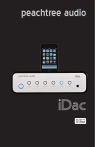 Important Safety Instructions 1) Read these instructions – All the safety and operating instructions should be read before this product is operated. Safety 2) Keep these instructions – The safety and operating instructions should be retained for future reference. Guidelines 3) Heed all warnings – All warnings on the appliance and in the operating instructions should be adhered to. 4) Do not use this apparatus near water – The appliance should not be used near water or moisture – for example, in a wet basement or near a swimming pool, and the like. 5) Clean only with dry cloth. 6)Do not block any ventilation openings. Install in accordance with the manufacturer’s instructions. 7)Do not install near any heat sources such as radiators, heat registers, stoves, or other apparatus (including amplifiers) that produce heat. 8)Do not defeat the safety purpose of the polarized or grounding plug. A polarized plug has two blades with one wider than the other. A grounding plug has two blades and a third grounding prong. The wide blade or the third prong is provided for your safety. If the provided plug does not fit into your outlet, consult an electrician for replacement of the obsolete outlet. 9)Protect the power cord from being walked on or pinched particularly at the plugs, convenience receptacles, and at the point where they exit from the apparatus. 10)Only use attachments/accessories specified by the manufacturer. 11)Unplug the apparatus during lightning storms or when unused for long periods of time. 12)Refer all servicing to qualified personnel. Servicing is required when the apparatus has been damaged in any way, such as power supply cord or plug is damaged, liquid has been spilled or objects have fallen into the apparatus has been exposed to rain or moisture, 13)does not operate normally, or has been dropped. 14)Please keep the unit in a good ventilation environment. CAUTION: These servicing instructions are for use by qualified service personnel only. To reduce the risk of electric shock, do not perform any servicing other than that contained 15)in the operating instructions unless you are qualified to do so. WARNING:To reduce the risk of fire or electric shock, do not expose this apparatus to rain or moisture. The apparatus shall not be exposed to dripping or splashing and that no 16)objects filled with liquids, such as vases, shall not be placed on apparatus. WARNING: The mains plug/appliance coupler is used as disconnect device, the disconnect device shall remain readily operable. 17)- The lightning flash with arrowhead symbol within an equilateral triangle is intended to alert the user to the presence of non-insulated “dangerous voltage” within the product’s enclosure that may be of sufficient magnitude to constitute a risk of electric shock. - Warning: To reduce the risk of electric shock, do not remove cover (or back) as there are no user-serviceable parts inside. Refer servicing to qualified personnel. - The exclamation point within an equilateral triangle is intended to alert the user to the presence of important operating and maintenance instructions in the literature accompanying the appliance. 18)WARNING:For the terminals marked with symbol of “ ” may be of sufficient magnitude to constitute a risk of electric shock. The external wiring connected to the terminals requires installation by an instructed person or the use of ready-made leads or cords according to manufacturer’s instruction. Unpacking and Warranty 1)Keep all packing materials for future shipments. (service) 2)Keep a record of your bill of sale and a copy of the serial number for warranty and insurance purposes. 3)You may register your unit on our website: www.peachtreeaudio.com. Introduction Front Panel Back Panel Connections Remote Control Advice for iPod iPod Useful Tips and more... USB COAX1 COAX2 OPT1 OPT2 Troubleshooting Product Guarantee and Service Compatibility for iPod Technical Specifications Introduction Welcome to your Peachtree Audio iDac! Our goal at Peachtree is to design products that provide you with a magical musical experience. We believe the iDac reaches that goal. At the heart of the iDac is an advanced ESS Sabre³² digital-to-analog converter. The secret to the sonic performance of the iDac is the Peachtree design team’s meticulouslyengineered implementation of this DAC, utilizing a variety of proprietary techniques and innovative circuit design. Connect your digital music library to the iDac and hear what’s possible! And . . . prepare your ears for a treat when you plug your supported iPod into the iDac’s PURE DIGITAL iPod dock. Most docks pass only the analog signal from an iPod. But our PURE DIGITAL dock sends the digital bitstream from your iPod directly to the iDac’s internal Sabre³² DAC. The result? Sound from your iPod to rival that of an expensive audiophile-grade CD player! This manual is a guide to the functions and operation of your iDac. It shows you how to connect a variety of digital sources, and offers tips on getting the best performance. The iDac has been rigorously designed to deal with the real-world problems of computer and streaming audio - and it meets the true test of any audio component . . . it SOUNDS great! We hope the iDac will provide you with years of enjoyable music listening. Visit us at www.peachtreeaudio.com for additional tips on getting the best sound from the music on your computer, and from all your digital sources. Please contact your dealer, or us directly, if you have questions. We now invite you to go to www.peachtreeaudio.com to register your iDac purchase. Thank you - and Happy Listening! The Folks at Peachtree Audio 3 Front Panel The lighted rings around the digital input buttons will blink until the digital signal is locked on the DAC. 1 iPod USB 2 3 COAX1 COAX2 OPT1 4 OPT2 5 6 1) Standby: The iDac is in standby mode when this button glows red. Push to turn on the iDac; the button will light up blue. When you are fin