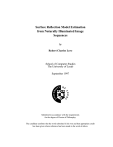 Surface Reflection Model Estimation from Naturally Illuminated Image Sequences by Robert Charles Love School of Computer Studies The University of Leeds September 1997 Submitted in accordance with the requirements for the degree of Doctor of Philosophy. The candidate confirms that the work submitted is his own and that appropriate credit has been given where reference has been made to the work of others. Robert Charles Love School of Computer Studies University of Leeds Doctor of Philosophy September 1997 Surface Reflection Model Estimation from Naturally Illuminated Image Sequences Abstract This thesis addresses the problem of estimating the surface reflection model of objects observed in a terrestrial scene, illuminated by natural illumination; that is, a scene which is illuminated by sun and sky light alone. This is a departure from the traditional analysis of laboratory scenes, which are illuminated by idealised light sources with positions and radiance distributions that are precisely controlled. Natural illumination presents a complex hemispherical light source which changes in both spatial and spectral distribution with time, terrestrial location, and atmospheric conditions. An image-based approach to the measurement of surface reflection is presented. The use of a sequence of images, taken over a period of time, allows the varying reflection from the scene due to the changing natural illumination to be measured. It is shown that the temporal change in image pixel values is suitable for the parameters of a reflection model to be estimated. These parameters are estimated using regression techniques. Two such regression methods are considered: a traditional non-linear method and the probabilistic approach of simulated annealing. It is shown that simulated annealing provides consistent performance in this application. This work focuses on the use of physically-based models of illumination, surface reflection and camera response. Using such models allows the system to produce quantitative, as opposed to qualitative, results and allows radiometric measurements to be made from image pixel values. The use of accurate models of daylight illumination allows scenes illuminated by skies of varying atmospheric conditions to be considered. The results obtained by the presented methods may be used for a variety of tasks ranging from object recognition to the automated generation of virtual environments. Results are presented which show that the proposed method is suitable for the wide variety of camera positions, surface orientations and sky conditions that may be experienced. The method is also shown to be tolerant of image noise and may be used on single or multiple pixels within each image. These results are based on the analysis of synthetic image sequences generated using a validated lighting simulation system. Results are also presented for real data recorded using a camera. i Acknowledgements I would like to thank the many people who have helped in this endeavour. Thanks are due to the members of the Vision Group, both past and present, in addition to the members of the School who have helped to make my time in Leeds both enjoyable and rewarding. Special thanks are also due to my family and friends who have provided financial and moral support throughout the highs and lows that this research has presented me. For their encouragement and supervision during this course of work, and especially for their time spent proof-reading this thesis, I would like to thank Nick Efford and Roger Boyle. I would also like to thank Greg Ward (Silicon Graphics, Inc) for his assistance with the Radiance lighting simulation system. The financial support of the Engineering and Physical Science Research Council is gratefully acknowledged. ii Contents 1 2 Introduction 1 1.1 Quantifying Reflection . . . . . . . . . . . . . . . . . . . . . . . . . . . . . . . 2 1.2 Physics-Based Machine Vision . . . . . . . . . . . . . . . . . . . . . . . . . . . 3 1.3 Approach Used . . . . . . . . . . . . . . . . . . . . . . . . . . . . . . . . . . . 4 1.4 Overview of the Thesis . . . . . . . . . . . . . . . . . . . . . . . . . . . . . . . 6 Related Work 7 2.1 Image Based Measurement of BRDF . . . . . . . . . . . . . . . . . . . . . . . . 8 2.2 Greyscale Image Analysis . . . . . . . . . . . . . . . . . . . . . . . . . . . . . 10 2.2.1 Single Image Methods . . . . . . . . . . . . . . . . . . . . . . . . . . . 10 2.2.2 Multiple Image Methods . . . . . . . . . . . . . . . . . . . . . . . . . . 13 Colour Image Analysis . . . . . . . . . . . . . . . . . . . . . . . . . . . . . . . 15 2.3.1 Colour Constancy . . . . . . . . . . . . . . . . . . . . . . . . . . . . . . 16 2.3.2 Colour Model Estimation . . . . . . . . . . . . . . . . . . . . . . . . . . 17 Summary . . . . . . . . . . . . . . . . . . . . . . . . . . . . . . . . . . . . . . 21 2.3 2.4 3 Surface Reflection 22 3.1 Reflectance: The Measure of Reflection . . . . . . . . . . . . . . . . . . . . . . 23 3.1.1 Reflectance . . . . . . . . . . . . . . . . . . . . . . . . . . . . . . . . . 24 3.1.2 The Bidirectional Reflectance Distribution Function . . . . . . . . . . . 26 3.2 Fresnel’s Laws of Reflection . . . . . . . . . . . . . . . . . . . . . . . . . . . . 27 3.3 Modelling Surface Structure . . . . . . . . . . . . . . . . . . . . . . . . . . . . 28 iii Contents 3.4 3.5 4 3.3.1 Surface Height Distribution . . . . . . . . . . . . . . . . . . . . . . . . 29 3.3.2 Facet Slope Distribution . . . . . . . . . . . . . . . . . . . . . . . . . . 30 3.3.3 Shadowing and Masking . . . . . . . . . . . . . . . . . . . . . . . . . . 31 Modelling Surface Reflectance . . . . . . . . . . . . . . . . . . . . . . . . . . . 31 3.4.1 Ideal Specular Reflection . . . . . . . . . . . . . . . . . . . . . . . . . . 34 3.4.2 The Normal Lobe . . . . . . . . . . . . . . . . . . . . . . . . . . . . . . 34 3.4.3 The Forescatter Lobe . . . . . . . . . . . . . . . . . . . . . . . . . . . . 35 3.4.4 The Backscatt