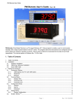 PM-Remote User Guide PM-Remote User’s Guide Rev 1.00 PM-Remote (Panel Meter Remote) is a PC based (Windows XP / Vista) program to enable a user to communicate remotely with a range of panel meters in the ACT series. The program allows the instruments to be configured (set up) and for data to be viewed in real time on the PC. There is also a method to incorporate the live data into an Excel spreadsheet. This manual applies to Software Rev 1.0.25 or later. 1. Table of Contents 1. 2. Table of Contents ....................................................................................................................................................... 1 Installation .................................................................................................................................................................. 2 2.1. Software Installation .......................................................................................................................................... 2 2.2. USB Driver Software Installation ....................................................................................................................... 3 2.3. Insert USB Cable ............................................................................................................................................... 3 3. PM-Remote Software ................................................................................................................................................. 4 3.1. Connection Options ........................................................................................................................................... 4 3.1.1. USB Express (ACT1X with USB Cable) .................................................................................................... 4 3.1.2. Serial Port .................................................................................................................................................. 4 3.1.3. Ethernet ..................................................................................................................................................... 4 3.2. Terminal Mode ................................................................................................................................................... 5 3.2.1. Display Area .............................................................................................................................................. 5 3.2.2. Command List............................................................................................................................................ 5 3.2.3. Command Line .......................................................................................................................................... 5 3.3. Configuration Mode ........................................................................................................................................... 6 3.3.1. General ...................................................................................................................................................... 6 3.3.2. Alarms ........................................................................................................................................................ 7 3.3.3. Advanced ................................................................................................................................................... 7 3.4. Display Mode ..................................................................................................................................................... 8 3.4.1. Display Configuration................................................................................................................................. 8 TM 3.5. Enable EXCEL .............................................................................................................................................. 8 Page 1 Rev 1.00 10/20/09 PM-Remote User Guide 2. Installation 2.1. Software Installation This installation is detailed for a Windows XP system – It is similar for Windows Vista. Note: Before reinstalling or upgrading the software, remove existing versions using the Control Panel – Add/Remove Programs Insert the Installation CD into the Drive. If the installation does not begin automatically use Windows File Explorer to navigate to the CDdrive and run CD_Start.exe. The installation program will launch and display the menu shown here. If you plan to use the help files you will need to install the AcrobatTM Reader if not already present on your system. Click “Install Acrobat 8.0”. To install the main application, click the “Install PM-Remote” button. This will launch the PM-Remote setup wizard shown here below left. Click the “Next >” button to continue to the license agreement. Accept the license agreement – “I Agree” (or quit the installation) and click the “Next >” button to continue. You will then be asked to enter your information – name and business. Enter the information if you wish and click the “Next >” button to continue. If you wish to add an icon to the desktop – check the box on the next window and click the “Next >” button to continue. Now select the installation folder – shown below right. If you wish to change the default for any reason, enter the new install location. Click the “Next >” button. On the “Confirm Installation” screen click the “Next >” button. The software will be installed. Note: This program requires the DotNet component. If it is not found on the system it will be installed. When completed click the “Close” button. A short cut icon (shown here) will be placed on the desktop. It is now necessary to install the USB drivers. Page 2 Rev 1.00 10/20/09 PM-Remote User Guide 2.2. USB Driver Software Installation Note: Ensure the USB programming cable is NOT plugged in during this installation. From the Install menu