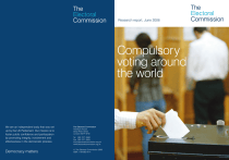 Research report, June 2006 Compulsory voting around the world We are an independent body that was set up by the UK Parliament. Our mission is to foster public confidence and participation by promoting integrity, involvement and effectiveness in the democratic process. The Electoral Commission Trevelyan House Great Peter Street London SW1P 2HW Democracy matters © The Electoral Commission 2006 ISBN: 1-904363-81-4 Tel 020 7271 0500 Fax 020 7271 0505 info@electoralcommission.org.uk www.electoralcommission.org.uk Translations and other formats For information on obtaining this publication in another language or in a large-print or Braille version please contact the Electoral Commission: Tel: 020 7271 0500 Email: publications@electoralcommission.org.uk The Electoral Commission We are an independent body that was set up by the UK Parliament. Our mission is to foster public confidence and participation by promoting integrity, involvement and effectiveness in the democratic process. Compulsory voting around the world Research report Copyright © The Electoral Commission 2006 ISBN: 1-904363-81-4 EC Voting text.qxp 7/6/06 20:24 Page 1 Contents Foreword 3 Executive summary 5 1 Background 9 2 Introducing compulsory voting 13 3 Compulsory voting systems 17 4 The impact of compulsory voting 27 5 Sources 37 Appendix 39 EC Voting text.qxp 2 7/6/06 20:24 Page 2 EC Voting text.qxp 7/6/06 20:24 Page 3 3 Foreword The Electoral Commission is committed to increasing participation in the democratic process in the UK. Encouraging voting at elections is a central part of this agenda. Since our establishment in 2000, we have actively promoted debate and research into the reasons why people choose to vote or not vote. As part of this process, we believe there is merit in opening up the question of compulsory voting for wider debate in the UK, as one of a series of options which may facilitate higher rates of electoral participation. International experience is often referred to by both advocates and opponents of compulsory reform in the UK. Yet until now there has been no single reference source analysing the international experience. This report has been prepared by the Commission in the belief that access to objective and up-to-date information about international experience of compulsory voting can only assist future debates in the UK. The principal aim of this research was to provide factual information about how compulsory voting operates in different countries. This report analyses the historical background to the introduction of compulsory voting in several countries across the world (and its abolition in others). We have also looked at current legislation and enforcement, sought to identify common features of compulsory voting systems and reviewed academic studies into the impact of compulsory voting on turnout and political engagement. Finally, two important caveats. This report does not consider the merits or otherwise of compulsory voting for the UK, and the Commission makes no recommendation in this regard. Additionally, this report is not an exhaustive global survey, but aims instead to take an analytical approach to understanding the issues involved. Compulsory voting around the world: foreword EC Voting text.qxp 7/6/06 20:24 Page 4 4 We hope that the information provided here will stimulate further debate. Sam Younger Chairman June 2006 Compulsory voting around the world: foreword EC Voting text.qxp 7/6/06 20:24 Page 5 5 Executive summary This research looks at compulsory voting systems around the world. It analyses the historical background to the introduction of compulsory voting in several countries across the world (and its abolition in others). We have also looked at current legislation and enforcement, sought to identify common features of compulsory voting systems and reviewed academic studies into the impact of compulsory voting on turnout and political engagement. Background to research Turnouts of 59.4% and 61.4% at the last two UK Parliamentary general elections1 have prompted some discussion of compulsory voting. Although compulsory voting has never been part of the UK electoral system, mandatory participation in elections is a feature in a diverse range of countries across the world – in Western Europe, South East Asia, Australasia and Central and South America. The principal aim of this research was to provide factual information about how compulsory voting operates in different countries and, where possible, to assess the efficacy of penalties for non-voting and the impact of compulsory voting on turnout rates. The research has drawn on evidence supplied to us by British embassies and electoral authorities in a range of countries across the world where there is, or has been, compulsory voting. We have also drawn on academic research and analysis, but this report does not represent an exhaustive survey of compulsory voting systems or the literature about them. Introducing compulsory voting Countries with very different types of political systems, from newly established democracies through to emerging democracies, have legislated to introduce compulsory voting. The reasons behind its introduction are more complex than might, at first, be assumed and are not simply concerned with a desire to boost participation rates. Country-specific political 1 Hereafter referred to as ‘general elections’. Compulsory voting around the world: executive summary EC Voting text.qxp 7/6/06 20:24 Page 6 6 and historical events and factors are overwhelmingly the prompt for a move to compulsion. Compulsory voting has been introduced for a number of reasons and often at times of constitutional and political change, but the desire to maximise turnout among all sections of society seems to have been a common objective. It has often been implemented as a result of wider political reform such as a change in a country’s political system, as in Chile, or alongside the introduction of universal suffrage, as in