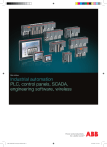 Main catalog Industrial automation PLC, control panels, SCADA, engineering software, wireless 1SBC125003C0205-Automation Products.indb 1 14/11/2012 11:35:56 1SBC125003C0205-Automation Products.indb 2 14/11/2012 11:35:57 Industrial automation 1 AC500 products family 2 Overview data 3 Technical data 4 Ordering data 5 Other automation from ABB ABB Industrial automation | 1 1SBC125003C0205-Automation Products.indb 1 14/11/2012 11:35:57 AC500 products family Overview ABB offers a comprehensive range of scalable PLCs and robust HMI control panels as well as high-availability solutions. Since its launch in 2006, the AC500 PLC platform has achieved significant industry recognition for delivering high performance, quality and reliability. ABB delivers scalable, flexible and efficient ranges of automation components to fulfill all conceivable automation applications. Some connectivity options to AC500 Control Panels Motor Starter Motors Programming software DigiVis 500 Flowmeter Drives Push buttons Softstarter Temperature probe 2 | ABB Industrial automation 1SBC125003C0205-Automation Products.indb 2 14/11/2012 11:36:06 1 Programming software Control Builder Plus complies with the IEC61131-3 standard offering all 5 IEC programming languages. In addition it includes continuous function chart, C, extensive function block libraries, and powerful embedded simulation/visualization feature. It also supports a number of languages (e.g. French, English, German, Chinese, Spanish, etc). New libraries, FTP functions, SMTP server, smart diagnostics and debugging. AC500 ABB’s powerful flagship PLC offering a wide range of performance levels and scalability within a single, simple concept where most competitors require multiple product ranges to deliver similar functionality. Web server integrated and IEC 60 870-5-104 remote control protocol. AC500-eCo Meets the cost-effective demands of the small PLC market whilst offering total inter-operability with the core AC500 range. Up to 10 I/O modules connected to the CPU, fast counter onboard CPU up to 50 kHz. Web server, FTP server and Modbus-TCP for all Ethernet versions. S500 I/O modules Digital and analog modules can be configured to best meet customer requirements as well as offering local and/ or remote expansion options using most industry standard communication protocols. "Extreme conditions" modules and an assortment of PROFINET interface modules. AC500-XC "Extreme conditions" modules with extended operating temperature, immunity to vibration and hazardous gases, use at high altitudes, in humid conditions, etc. Control panels Touchscreen or keypad graphical displays utilizing low cost, user friendly configuration software, offering extensive libraries and drivers for ABB PLC platforms and other automation devices. CP600 range up to 15" available with Panel Builder 600 engineering software or web panel version. DigiVis 500 DigiVis 500 software is a simple and easily accessible solution in the development of supervision applications. It offers all the functions that are essential to a secure environment, its functional reliability and dual-display mode will simplify all your supervision operations, keeping interruptions to a minimum. Wireless automation for sensors and actuators Factory automation for high productivity thanks to reliable sensor and actuator networks. Broken cable and wire issues can be a thing of the past with this solution. Wireless is ideal for robots with sensors or actuators on end moving effectors. ABB Industrial automation | 3 1SBC125003C0205-Automation Products.indb 3 14/11/2012 11:36:19 AC500 products family Fields of application ABB’s automation devices deliver solutions with performance and flexibility to be effectively deployed within diverse industries and applications including water, building infrastructure, data centers, renewable energy, machinery automation, material handling and marine. 4 | ABB Industrial automation 1SBC125003C0205-Automation Products.indb 4 14/11/2012 11:36:33 –– Material handling: cranes, winches, hoists etc. - -XC for eXtreme Conditions, integration with ABB drives, scalability. –– Rubber & plastic: extruder, injection molding, etc –– Water and waste water: pumping and dosing in both water and waste water treatment plants, etc. : - -Web server for remote control, high availability and extreme conditions capability, data logging, scalability for small to large applications. –– Building infrastructure: hospitals, stadium, boats, etc. : - -High availability, marine certifications, large network capabilities. –– Data center: HVAC, access management, High Availability, IT-protocol services including web servers 1 –– Solar: thermo-solar, photovoltaic: - -0.0003° tracker positioning, single-click download to 1000 PLCs, string monitoring. –– Wind: turbine control, high speed, extreme conditions, multiple communication, data logging –– Machinery: most applications including robotics, press automation, transfer systems, assembly quality control, tracking, high performance: - -Motion control, web server, remote access, communication capabilities, scalability. ABB Industrial automation | 5 1SBC125003C0205-Automation Products.indb 5 14/11/2012 11:36:49 AC500 products family System characteristics The AC500 programmable logic controller offers the latest technology enhancements with greater performance in a scalable package. Standard industrial communications fieldbus, networks and protocols supported by the 'One Platform' solution enable the AC500 to be a very capable automation solution in demanding environment. The flexible scalable range of superior performance CPUs enable complete control of your application whenever and wherever you need it. Performance PM592 PM591 PM590 AC500 PM583 PM582 PM573 Powerful networking PM572 AC500-eCo PM564 PM554 Compact Functionality 6 | ABB Industrial automation 1SBC125003C0205-Automation Products.indb 6 14/11/2012 11:37:03 –– –– –– –