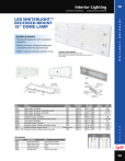 Interior Lighting Lumières d’Intérieur Lámparas para Interior I N T E R I O R LED WHITERLIGHT™ RECESSED-MOUNT 18” DOME LAMP L I G H T I N G FEATURES & BENEFITS • Encapsulant potting for total circuit board protection • Robust, one-piece, aluminum housing and removable acrylic lens (LED versions) • Built-in automatic thermal protection circuit Part Number Product Description High output, 18 diodes High output, 18 diodes, w/motion sensor High output, 18 diodes, dimmable High output, 16 diodes Standard output, 10 diodes Standard output, 10 diodes w/motion sensor Low output, 10 diodes Standard output, 6 diodes Standard output, 6 diodes w/motion sensor Standard output, interior dome Standard output, 6 diodes interconnected Accessories Part Number 94621 94631 92901 92911 43540 Description Replacement Lens Replacement Lens Replacement Lens Fluorescent Tube Mounting Pan Fits Round Corner Lenses Square Corner Lenses 61511 61511 All 18" Dome Lamps 61291 61511 Lighting Technology LED LED LED LED LED LED LED LED LED Fluorescent LED Light Output (Usable) 1200 Lm 1200 Lm 1200 Lm 1000 Lm 800 Lm 800 Lm 400 Lm 940 Lm 940 Lm 950 Lm 940 Lm Operating Temperature -40ºF to +122ºF -4ºF to +122ºF -40ºF to +122ºF -40ºF to +122ºF -40ºF to +122ºF -4ºF to +122ºF -40ºF to +122ºF -40ºF to +122ºF -4ºF to +122ºF 0ºF to +125ºF -40ºF to +122ºF Design Voltage (V) 12 12 12 24 12 12 12 12 12 12 12 Amp Draw (A) 2.16 2.16 2.17/.71 1 1.75 1.75/.02 1.2 1.7 1.7/.02 2.5 1.7/.02 g r o t e . c o m 61611 61G21 61E61 61111 61261 61F61 61881 61291 61H91 61511 61M11 TECHNICAL SPECIFICATIONS Material: Aluminum Housing/Acrylic Lens 61G21, 61F61, 61H91 Aluminum Housing/Polycarbonate Lens Finish: White 61F61 61261 103 103 104 Interior Lighting I N T E R I O R L I G H T I N G Lumières d’Intérieur Lámparas para Interior LED WHITELIGHT™ RECESSED-MOUNT INTERIOR DOME LAMP FEATURES & BENEFITS • LED lamp is rated to 50,000 service hours • Fits existing, similar incandescent lamp mountings • Low heat; will not melt lens • Encapsulant potting for total circuit board protection against moisture and corrosion 61760 © 2016 All rights reserved. Grote Industries, Inc. Part Number Product Description 104 61F51 61931 Designation Lighting Technology Connection Type Light Output Design Amp Draw (A) (Usable) Voltage (V) 61861 Gray aluminum housing, 6 diodes Dome LED Hardwire 300 Lm 9-30 61991 Gray aluminum housing, 6 diodes Dome LED Hardwire 300 Lm 12 61871 Gray aluminum housing, 3 diodes Courtesy LED Hardwire 150 Lm 9-30 61961 61931 61760 Gray aluminum housing, 3 diodes Courtesy Gray aluminum, flange mount housing, 6 diodes Dome Black aluminum housing, 3 white, 3 red diodes Dome LED LED LED Hardwire Hardwire Hardwire 150 Lm 300 Lm 150 Lm 12 12 10-32 61890 Gray aluminum housing, 3 white, 3 blue diodes Dome LED Hardwire 150 Lm 10-32 82080 Black aluminum housing, 3 white, 3 red diodes Dome LED 150 Lm 10-30 82400 Black aluminum housing, 3 white, 3 blue diodes Dome LED 150 Lm 18-32 .125 @ 24V 61F30 Black surface mount plastic housing w/switch, 4 white, 4 red diodes Black surface mount plastic housing w/switch, 4 white, 4 blue diodes Black surface mount plastic housing w/switch, 6 white diodes Gray steel housing Tyco #770331-1 Tyco #770331-1 .6 @ 9V .155 @ 30V 0.48 .32 @ 9V .094 @ 30V 0.24 0.48 .250 @ 12V .250 @ 12V .140 @ 24V .250 @ 12V .140 @ 24V Dome LED Hardwire 200 Lm 10-32 Dome LED Hardwire 200 Lm 10-32 .250 @ 12.8V .140 @ 25.6V .250 @ 12.8V .140 @ 25.6V Dome LED Hardwire 300 Lm 12 .480 @ 14V Incandescent Hardwire 15 CP 12 1.1 @ 12V 61F40 61F51 61031 Accessories Part Number 90401 Description Replacement Lens Fits All Dome Interior Lighting Lumières d’Intérieur 105 Lámparas para Interior I N T E R I O R LED WHITELIGHT™ 4” DOME LAMP FEATURES & BENEFITS • Shock-absorbing, weather-proof housing with long-life LEDs makes this a very durable lamp L I G H T I N G • Cost-effective LED lighting option is rated at 50,000 hours • LEDs utilize lower amp draw, putting less load on strained electrical systems • Hardwired for easy integration into current wiring system • Uses 70% less power than incandescent options 61E41 61E01 Part Number Product Description 4” integrated flange 4” integrated flange 4” integrated flange 4” integrated flange 4” integrated flange 4” grommet mount 4” grommet mount 4” grommet mount 4” grommet mount 4" euro flange 4" euro flange 4" euro flange 4" surface mount w/ switch Accessories Part Number 67013, 66842, 66846, 67016 Description Male Pin Pigtail 61171 Lighting Technology LED LED LED LED LED LED LED LED LED LED LED LED LED Light Output (Usable) 400 Lm 400 Lm 400 Lm 400 Lm 400 Lm 400 Lm 400 Lm 400 Lm 400 Lm 400 Lm 400 Lm 400 Lm 400 Lm Connection Type Male Pin Male Pin Hardwire Hardwire Hardwire w/2-Way Female Male Pin Male Pin Hardwire Hardwire Male Pin Hardwire Hardwire Hardwire Design Voltage (V) 12 24 12 24 12 12 24 12 24 24 24 12 12 Amp Draw (A) .6A .3A .6A .3A .6A .6A .3A .6A .3A .3A .3A .6A .6A g r o t e . c o m 61E01 61E11 61G91 61H21 61H51 61E41 61E51 61H01 61H11 61E31 61H31 61H41 61171 61H41 Fits 61E01, 61E11, 61E41, 61E51, 61E21, 61E31 105 106 Interior Lighting I N T E R I O R L I G H T I N G Lumières d’Intérieur Lámparas para Interior SURFACE MOUNT FLUORESCENT DOME LAMP Ballast design prevents electromagnetic and radio frequency interference (EMI/RFI) • Shock tested per SAE requirements • Rigid anodized aluminum base • High efficiency / low power consumption/low heat • Internally fused • Locking bulb mounts • Operating temperatures +32°F to +185°F 61371White Material: ABS Finish: Clear Bulb: Dual F15T8 CW Volts / Amps: 12V / 2.25A Accessory: Bulb: 92681 Lens: Clear 92611 LED WHITELIGHT™ X-100 DOME LAMP Built-in automatic thermal protection circuit • Surface mountable; versatile design means both wall or ceiling mountings are possible • Fast installation with 2 self-tapping screws and no holes to cut 61121White 61131Wh