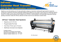 oil drum, at a thirty second exposure time, speeds of up 2.3 ft./min. can be achieved. The sturdy steel construction and antighosting mechanism makes the InPress calender the ideal choice for dye sublimation transfer needs.