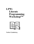 LPW: Literate Programming Workshop™ Norbert Lindenberg Norbert Lindenberg lpw@norbertlindenberg.com Revision 1.2.2 Copyright © Norbert Lindenberg, 1991–2003. All rights reserved. The Literate Programming Workshop™ is a shareware application. The right is granted to anyone not involved in military projects to freely copy, distribute and test it. After two week’s testing, however, you have to decide whether you want to continue to use it or not. If you want to continue to use LPW, you have to register your copy. The registration fee is $50. Send your registration to my address given above. LPW must not be sold or packaged with other products. Literate Programming Workshop is a trademark of Norbert Lindenberg. Norbert Lindenberg makes no warranties whatsoever, either express or implied, regarding this product, including warranties with respect to its merchantability, or its fitness for any particular purpose. LPW was developed with MacApp 2.0, © Apple Computer, Inc. 1985-1990. According to the MacApp Object Code Distribution Agreement, I have to inform you that • Apple Computer, Inc. makes no warranties whatsoever, either express or implied, regarding this product, including warranties with respect to its merchantability, or its fitness for any particular purpose. • The MacApp software is proprietary to Apple Computer, Inc. and is licensed to Norbert Lindenberg for distribution only for use in combination with the Literate Programming Workshop application. • Apple, Macintosh, and MacApp are registered trademarks of Apple Computer, Inc. Otherwise, this manual is not a trademark registry. Any word or combination of words used in this manual may be trademarked by some company in some country. This manual was prepared on a Macintosh using LPW and ClarisWorks. Contents 1. 1.1 1.2 1.3 1.4 2. 2.1 2.2 2.3 3. 3.1 3.2 3.3 3.4 3.5 3.6 3.7 4. 4.1 4.2 4.3 4.4 4.5 4.6 5. 5.1 5.2 5.3 5.4 5.5 6. 6.1 6.2 7. 7.1 7.2 7.3 7.4 7.5 7.6 7.7 8. 9. 9.1 9.2 Introduction Main Features of the Editor Project Management The Interactive Index System Requirements Literate Programming Workshop Documents LPW Document Types Module and Style Sheet Documents Determining Whether a Document Can Be Modified Creating a Style Sheet The Style Sheet Window The Style Sheet Menu Commands Defining a Paragraph Style Defining a Highlight Style Defining an Excerpt Changing the Page Layout Changing the Page Header Word Processing The Module Document Window Selecting Text Working With Styles Inserting Pictures Changing Indentation Using Excerpts Managing a Software Project The Project Document Editing the Module List Working With a Project Style Sheet Exchanging Information With MPW Browsing Error Messages Using the Interactive Index Creating Index Entries Looking Up Index Entries Command Reference The “” Menu The “File” Menu The “Edit” Menu The “Paragraph” Menu The “Highlight” Menu The “Excerpt” Menu The “Project” Menu Known Bugs and Limitations Change History Changes from LPW 1.0 to LPW 1.1 Changes from LPW 1.1 to LPW 1.2 4 4 5 6 6 7 7 7 8 10 10 11 11 14 15 15 16 18 18 19 19 20 20 20 21 21 21 22 23 24 25 25 25 27 27 27 31 34 34 34 35 37 38 38 38 1. Introduction Have you ever tried to integrate documentation with your program source text, to explain to other programmers (or even to your future self) what you intend your code to do, or to add some graphics detailing the data structures? Probably not. Current program editors don’t allow graphics, and they don’t help you in writing nicely formatted texts. You could use a word processor instead, if only you knew how to extract the source code for the compiler… Enter the Literate Programming Workshop™. LPW is a program editing environment for “literate programming”, the integrated development of program source text and documentation in mixed documents. The term “literate programming” has been coined by Donald Knuth, and he also developed the first system to support it, called WEB. Unfortunately, WEB is a batch system, built on top of Knuth’s TeX document formatting language. LPW, on the other hand, is a true Macintosh application: fully interactive, WYSIWYG, and easy to use. LPW consists of two main components: a word processor for editing documents which contain both source text and documentation (these documents are called “module documents” in LPW), and a project management system that keeps track of all the documents of a software development project and maintains globally useful information regarding them in “project documents”. The Literate Programming Workshop is designed to be used in conjunction with the Macintosh Programmer’s Workshop (MPW), Apple’s programming environment for the Macintosh. You use LPW as a replacement for the MPW editor, but still use MPW for executing build scripts and running the compilers, the linker and Rez. 1.1 Main Features of the Editor To support literate programming, the editor combines features which are usually found either only in word processors or only in program editors, and adds a new feature called “excerpts”, which allow to extract a subset of the paragraphs of a module document. Word processing in the Literate Programming Workshop is purely based on style sheets. Word processors such as Microsoft Word allow you either to mark up selected portions of text with “Times 12 point bold”, or to use a style definition for this purpose. LPW only allows the latter. The idea behind style sheets is to separate form and contents of your documents: in the main part of a document, you give the text and the graphics, and state the function for the document for each text section. In the style sheet, you then specify how text or graphics with a given function is to be displayed. So, for a program module document, you would for example have paragraph styles “Procedure Heading”, “Procedure Body”, and “Type Declaration” for source text paragraphs, but also “Chapter Heading