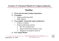 Superconductor: Classical Model first London Equation second London Equation penetration depth
