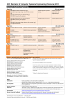 Stage One (48 credit points) Sem 1 ENG1090 Foundation Mathematics and ENG1002 Engineering design: cleaner, safer, smarter OR ENG1091 Mathematics for engineering and ENG1060 Computing for engineers FIT1029 Algorithm problem solving ECE2071 Computer organisation and programming B FIT1008 Computer science ECE2072 Digital systems Sem 2 ENG1091 Mathematics for engineering and ENG1060 Computing for engineers OR ENG1002 Engineering design: cleaner, safer, smarter and one approved elective Stage Two (48 credit points) Sem 1 Sem 2 ECE2011 Signal processing ECE2021 Electromagnetism ECE2041 Telecommunications ECE2061 Analogue electronics ECE2031 Circuits and control ENG2092 Advanced engineering mathematics B ECE3073 Computer systems Approved elective Stage Three (48 credit points) Sem 1 Sem 2 ECE3022 Wireless and guided EM Computer Systems Engineering elective ECSE elective Approved elective ECE3062 Electronic systems and control ECE3091 Engineering design Computer Systems Engineering elective Computer Systems Engineering elective Stage Four (48 credit points) Sem 1 ECE4094 Project A ECE4099 Professional practice ECSE elective Computer Systems Engineering elective Sem 2 ECE4095 Project B ECE4074 Advanced Computer Architecture or ECE5881 System development (must be approved) ECSE elective Approved elective Electives – approved elective units may include (subject to pre-­‐requisites): (a) The following Computer Systems Engineering units: (b) Any unit offered by the Department of Electrical and Computer Systems Engineering (ECSE) * ECE4012 Applied digital signal processing ECE4023 Radio frequency electronics (c) A unit from elsewhere in the university* ECE4024 Wireless communications ECE4042 Communications theory Units in (b) and (c) must not include substantial material already ECE4043 optical communications completed or to be taken as part of the degree. Only one unit may be ECE4044 Telecommunications protocols taken at each level of the degree from this category, allowing students ECE4045 Network performance to pursue an approved sequence of units from elsewhere in the ECE4076 Computer vision University. ECE4077 Advanced computing techniques ECE4078 Intelligent robotics *subject to departmental approval Any ECE4xxx unit deemed suitable* Approved units from the Faculty of Information Technology up to a maximum of 24 credit points* Notes Credit points Course advice Unless specified, all units are worth 6 credit points Bachelor of Computer Systems Engineering 32 units x 6cp = Total of 192 credit points All pre-­‐requisite and co-­‐requisite requirements must be undertaken in order to be able to enrol into a specific unit 4 years full-­‐time, 8 years part-­‐time Time limit = 8 years. Students have eight years in which to complete this award from the time they commence first year. Periods of intermission are counted as part of the eight years. www.eng.monash.edu.au/current-­‐students/course-­‐advice.html Unit requisites Duration of degree Time limit Monash University handbook Students should follow the course structure for the year the course was commenced http://monash.edu/pubs/2015handbooks/courses/index-­‐byfaculty-­‐eng.html All information correct at publication – 1 October 2014 Faculty of Engineering, Monash University -­‐ CRICOS code 017100A