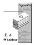 CFA-USER Rev B User’s Information Manual Models: 90,000 - 500,000 Btu/hr WARNING: If the information in this manual is not followed exactly, a fire or explosion may result causing property damage, personal injury or loss of life. This appliance MUST NOT be installed in any location where gasoline or flammable vapors are likely to be present. WHAT TO DO IF YOU SMELL GAS • Do not try to light any appliance. • Do not touch any electric switch; do not use any phone in your building. • Immediately call your gas supplier from a near by phone. Follow the gas supplier’s instructions. • If you cannot reach your gas supplier, call the fire department. • Installation and service must be performed by a qualified installer, service agency, or the gas supplier. Save this manual for future reference. Contents HAZARD DEFINITIONS .................................................... 2 PLEASE READ BEFORE PROCEEDING ..................... 3-4 1. MAINTENANCE SCHEDULE ....................................... 5 Maintenance Procedures ................................................... 6 Appliance Must Be Serviced and Maintained .............. 6 Check Appliance Area .................................................. 6 Check Pressure Temperature Gauge........................... 6 Check Vent Piping ........................................................ 6 Check Air Piping ........................................................... 6 Check Relief Valve ....................................................... 6 Test Low Water Cutoff (if installed) .............................. 6 Reset Button (low water cutoff) .................................... 6 Check Appliance Piping (gas and water) ..................... 7 Operate Relief Valve .................................................... 7 Shut Appliance Down ................................................... 7 2. OPERATING INSTRUCTIONS ................................ 8-11 Revision Notes .................................................. Back Cover Hazard definitions The following defined terms are used throughout this manual to bring attention to the presence of hazards of various risk levels or to important information concerning the life of the product. DANGER DANGER indicates an imminently hazardous situation which, if not avoided, will result in death or serious injury. WARNING indicates a potentially hazardous situation which, if not avoided, could result in death or serious WARNING injury. CAUTION indicates a potentially hazardous situation which, if not avoided, may result in minor or moderate CAUTION injury. CAUTION CAUTION used without the safety alert symbol indicates a potentially hazardous situation which, if not avoided, may result in property damage. NOTICE NOTICE indicates special instructions on installation, operation, or maintenance that are important but not related to personal injury or property damage. 2 User’s Information Manual Please read before proceeding NOTICE This is a gas appliance and should be installed by a licensed electrician and/or certified gas supplier. Service must be performed by a qualified service installer, service agency or the gas supplier. WARNING If the information in these instructions is not followed exactly, a fire or explosion may result causing property damage, personal injury, or death. This appliance MUST NOT be installed in any location where gasoline or flammable vapors are likely to be present, unless the installation is such to eliminate the probable ignition of gasoline or flammable vapors. What to do if you smell gas – • Do not try to light any appliance. • Do not touch any electric switch; do not use any phone in your building. • Immediately call your gas supplier from a near by phone. Follow the gas supplier’s instructions. • If you cannot reach your gas supplier, call the fire department. Installation and service must be performed by a qualified installer, service agency, or the gas supplier. WARNING Checking equipment – Upon receiving equipment, check for signs of shipping damage. Pay particular attention to parts accompanying the appliances which may show signs of being hit or otherwise being mishandled. Verify total number of pieces shown on the packing slip with those actually received. In case there is damage or a shortage, immediately notify the carrier. Do not use this appliance if any part has been under water. The possible damage to a flooded appliance can be extensive and present numerous safety hazards. Any appliance that has been under water must be replaced. Owner warning – NOTE: Retain this manual for future reference. The information contained in this manual is intended for use by qualified professional installers, service technicians, or gas suppliers. Consult your local expert for proper installation or service procedures. IMPORTANT Warranty – Installation and service must be performed by a qualified service installer, service agency or the gas supplier. Factory warranty (shipped with unit) does not apply to units improperly installed or improperly operated. Experience has shown that improper installation or system design, rather than faulty equipment, is the cause of most operating problems. 1. Excessive water hardness causing a lime/scale build-up in the copper tube is not the fault of the equipment and is not covered under the manufacturer’s warranty (Refer to the Water Treatment and Water Chemistry section in the Copper-Fin Installation and Service manual). 2. Excessive pitting and erosion on the inside of the copper tube may be caused by too much water velocity through the tubes and is not covered by the manufacturer’s warranty (Refer to Boiler Flow Rates and Temperature Rise for flow requirements section in the Copper-Fin Installation and Service manual). Improper installation, adjustment, alteration, service or maintenance can cause injury or property damage. Refer to this manual for assistance or additional information, consult a qualified insta