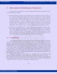 Electrical Machines II 5 Prof. Krishna Vasudevan, Prof. G. Sridhara Rao, Prof. P. Sasidhara Rao Interconnected Synchronous Generators The study of interconnection of several synchronous generators is important because of the following main reasons: 1. Since the demand of electricity varies during a day, also during the various seasons in a year, a modern power station employs two or more units so that one or more alternators can supply power efficiently according to the need. Installation of a single generator of capacity equal to the installed capacity of a station will be uneconomic, as such a generator will have to be run at a reduced load for certain periods of the day, and also building of such a generator is difficult proposition. Further, routine maintenance requires a unit to be shut down for a certain period of time and as such the capacity requirement of the stand by unit in a power station with several alternators is less. 2. Connections of several stations by a grid is economic and advantageous. This reduces the installed capacity of the stand by unit considerably, and enables economic distributions of load between several stations. Also, in a country like India, where considerable amount of power is generated by harnessing waterpower,parallel operation of steam and hydro-stations is essential to maintain continuity of supply throughout the year and also to ensure the maximum utilization of water power resources. 5.1 Load Sharing For alternators in parallel, change in field excitation will mainly change the operating power factor of the generator and has primarily no effect on the active power delivered by the generators (change in power factor will change the total current of an alternator thereby changing copper loss. The output active power will alter through a very small amount). The control of active power shared between alternators is affected by changing the input power to the prime mover. For example, in a thermal power station: having alternators driven by steam turbines, an increase of throttle opening and thus allowing more steam into the turbine will increase the power input; in a hydro station, the power input is controlled by water inlet into the turbine. The prime-mover, speed-load characteristics thus determine the load sharing between the alternators. Consider for simplicity, a two machine case, consisting of two non-salient pole synchronous machines (generators) 1 and 2 respectively coupled to prime-movers 1 and 2 Fig. 37 shows the speed-load characteristics of the prime- movers. Assume that initially the two generators share equal active power and it is now required to transfer a certain amount of power from unit 1 to unit 2, the total power remaining constant. 58 Indian Institute of Technology Madras Prof. Krishna Vasudevan, Prof. G. Sridhara Rao, Prof. P. Sasidhara Rao SPEED Electrical Machines II BUS INPUT INCREASED P’L2 2 ALTERNATOR 1 d 1 P’L1 1’ PL1 PL2 ~ ~ b a c 2’ INPUT REDUCED 0 PRIME MOVER 2 TOTAL ACTIVE POWER UNIT 1 UNIT 2 LOAD ON MACHINE 2 LOAD ON MACHINE 1 2PL (a) (b) Figure 37: Interconnection and load sharing The initial operating points are indicated on the characteristic by points b and c, the busbar speed (or frequency) being given by the point a. The load on each machine is PL . the total load being 2PL . To reduce the load on unit 1, its input is decreased (by reducing ′ the throttle opening) so that the prime-mover characteristic is now given by 1 . The total load being constant, the loads shared by the machines are machine 1 → PL1 , machine 2 → PL2 , the total load being PL1 + PL2 = 2PL , and the bus frequency given by the point d is reduced. To maintain the bus frequency constant at its original value (given by point a) the input to ′ unit 2 must be suitably increased so that its speed-load characteristic is given by 2 . The final load sharing is thus given by ′ ′ machine 1→ PL1 , machine 2 → PL2 and ′ ′ PL1 + PL2 = 2PL 59 Indian Institute of Technology Madras (46) Electrical Machines II 5.2 Prof. Krishna Vasudevan, Prof. G. Sridhara Rao, Prof. P. Sasidhara Rao Generator input and output For any load conditions represented e.g. by Fig. 38 the output per phase is P = V I cos φ. The electrical power converted from mechanical power input is per phase P1 = EI cos(φ + σ) (47) P1 = EI cos(φ + δ) = V I cos φ + Ir.I = V I cos φ + I 2 r (48) Resolving E along I, The electrical input is thus the output plus the I 2 R loss, as might be expected. The prime mover must naturally supply also the friction, windage and core losses, which do not appear in the complexor diagram. For a given load current I at external phase-angle φ to V , the magnitude and phase of E are determined by Zs The impedance angle θ is arc tan(x3 /r), and using Fig. 38. I = (E − V )∠zs = (E∠δ − V /0)/zs /∠θ = (E/zs )∠(δ − θ) − (V /zs )∠θ (49) when referred to the datum direction V = V ∠θ Converting to the rectangular form: I = (E/zs )[cos(θ − δ) − j sin(θ − δ)] − (V /Zs )[cos θ − j sin θ] E V E V = [ cos(θ − δ) − cos θ] + j[ sin(θ − δ) − sin θ]. Zs Zs Zs Zs (50) These components represent I cos φ and I sin φ. The power converted internally is the sum of the corresponding components of the current with E cos δ and E sin δ, to give P1 = E cos(φ + δ): P1 = + = = E cos δ[(E/Zs ) cos(θ − δ) − (V /Zs) cos θ] E sin δ[(E/Zs ) sin(θ − δ)(V /Zs ) sin θ] E[(E/Zs ) cos θ] − E[(V /Zs ) cos(θ + δ)] (E/Zs )[E cos θ − V cos(θ + δ)] perphase (51) The output power is V I cos φ, which is given similarly by P = (V /Zs)[E cos(θ − δ) − V cos θ] perphase (52) In large machines the resistance is small compared with the synchronous reactance so that θ = arc tan(xs /r) ≃ 90◦ .Eqn. 50 and Eqn. 52 the simplify to P1 = P , where P = P1 = E cos(θ + δ) ≃ (E/Xs )V sin δ 60 Indian Institute of Technology Madras (53) E Izs v Prof. Krishna Vasudevan, Prof. G. Sridhara Rao, P