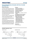 ® RT7302 Primary-Side-Regulation Dimmable LED Driver Controller with Active PFC General Description Features The RT7302 is a constant current LED driver with active power factor correction. It supports high power factor across a wide range of line voltages, and it drives the converter in the Quasi-Resonant (QR) mode to achieve higher efficiency. By using Primary Side Regulation (PSR), the RT7302 controls the output current accurately without a shunt regulator and an opto-coupler at the secondary side, reducing the external component count, the cost, and the volume of the driver board. The RT7302 is designed to be compatible with PWM Dimming. The output current can be modulated by the duty ratio of the external PWM dimming signal. An in-house design High Voltage (HV) start-up device is integrated in the RT7302 to minimize the power loss and shorten the start-up time. The RT7302 embeds comprehensive protection functions for robust designs, including LED open-circuit protection, LED short-circuit protection, output diode short-circuit protection, VDD Under-Voltage Lockout (UVLO), VDD Over-Voltage Protection (VDD OVP), Over-Temperature Protection (OTP), and cycle-by-cycle current limitation. Tight LED Current Regulation No Opto-Coupler and TL431 Required Power Factor Correction (PFC) Compatible with PWM Dimming Built-in HV Start-up Device Quasi-Resonant Maximum/Minimum Switching Frequency Clamping Input Voltage Feed-Forward Compensation Maximum/Minimum On-Time Limitation Wide VDD Voltage Range (up to 25V) Multiple Protection Features LED Open-Circuit Protection LED Short-Circuit Protection Output Diode Short-Circuit Protection VDD Under-Voltage Lockout VDD Over-Voltage Protection Over-Temperature Protection Cycle-by-Cycle Current Limit RoHS Compliant and Halogen Free Applications AC/DC LED Lighting driver Simplified Application Circuit Flyback Converter Line Buck-Boost Converter TX1 BD CSIN RM1 Line Q1 GD RM2 CS RPC RM1 RHV VDD CVDD Copyright © 2014 Richtek Technology Corporation. All rights reserved. COUT VOUT+ Q1 GD CS RPC RCS COMP DAUX GND VDD ZCD RZCD1 DOUT RT7302 HV MULT CCOMP RZCD2 DS7302-02 April 2014 CSIN Neutral RCS DAUX ZCD VOUT- RM2 COMP GND BD TX1 VOUT- RT7302 HV MULT CCOMP VOUT+ COUT RHV Neutral DOUT CVDD RZCD1 RZCD2 is a registered trademark of Richtek Technology Corporation. www.richtek.com 1 RT7302 Ordering Information Marking Information RT7302 RT7302GS : Product Number Package Type S : SOP-8 RT7302 GSYMDNN YMDNN : Date Code Lead Plating System G : Green (Halogen Free and Pb Free) Note : Pin Configurations Richtek products are : (TOP VIEW) RoHS compliant and compatible with the current requirements of IPC/JEDEC J-STD-020. Suitable for use in SnPb or Pb-free soldering processes. HV VDD 8 GND 2 7 GD COMP 3 6 CS MULT 4 5 ZCD SOP-8 Functional Pin Description Pin No. Pin Name Pin Function 1 HV High Voltage Input for Startup. 2 GND Ground of the Controller. 3 COMP Compensation Node. Output of the internal trans-conductance amplifier. 4 MULT Input for Line Voltage Signal. This pin is used to sense the line voltage by resistor divider to achieve dimming function. 5 ZCD Zero Current Detection Input. This pin is used to sense the voltage at auxiliary winding of the transformer. 6 CS Current Sense Input. Connect this pin to the current sense resistor. 7 GD Gate Driver Output for External Power MOSFET. 8 VDD Supply Voltage (VDD) Input. The controller will be enabled when V DD exceeds VTH_ON and disabled when VDD is lower than VTH_OFF. Copyright © 2014 Richtek Technology Corporation. All rights reserved. www.richtek.com 2 is a registered trademark of Richtek Technology Corporation. DS7302-02 April 2014 RT7302 Function Block Diagram HV Valley Detector ZCD HV Start-Up Control Clamping Circuit VMULT Feed-Forward Compensation Ramp Generator L : Open H : Closed Constant Current Control VMULT PWM Control Logic VDD Over Voltage Protection VCLAMP 13V GD Gate Driver RGD Output Diode Short Circuit Protection Dimming Comparator VMULT_EN / VMULT_DS 150mV / 100mV VDD OVP VDD PWM + VCS_CL 1V Current Limit Comparator Output Over Voltage Protection Leading Edge Blanking + Constant On-Time Comparator ICS CS Starter Circuit Under Voltage Lockout (16V/9V) Over Temperature Protection + - OTP Output OVP MULT COMP Copyright © 2014 Richtek Technology Corporation. All rights reserved. DS7302-02 April 2014 is a registered trademark of Richtek Technology Corporation. www.richtek.com 3 GND RT7302 Operation Critical-Conduction Mode (CRM) with Constant On-Time Control Figure 1 shows a typical flyback converter with input voltage (VIN). When main switch Q1 is turned on with a fixed ontime (tON), the peak current (IL_PK) of the magnetic inductor (Lm) can be calculated by the following equation : V IL_PK = IN tON Lm TX1 DOUT + IL VIN + COUT Lm VOUT IOUT ROUT Q1 Primary-Side Constant-Current Regulation The RT7302 needs no shunt regulator and opto-coupler at the secondary side to achieve the output current regulation. Figure 3 shows several key waveforms of a conventional flyback converter in Quasi-Resonant (QR) mode, in which VAUX is the voltage on the auxiliary winding of the transformer. VDS VIN 0 GD (VGS) VAUX 0 VIN x NA / NP Figure 1. Typical Flyback Converter If the input voltage is the output voltage of the full-bridge rectifier with sinusoidal input voltage (VIN_PK x sin(θ)), the inductor peak current (IL_PK) can be expressed as the following equation : IL_PK = VIN_PK sin(θ) tON Lm Clamped by controller IQ1 IDOUT Figure 3. Key Waveforms of a Flyback Converter When the converter operates in CRM with constant ontime control, the envelope of the peak inductor current will follow the input voltage waveform with in-phase. Thus, high power factor can be achieved, as shown in Figure 2. VIN Input Voltage Iin_avg Average Input Current IL_PK Peak Inductor Current IDOUT Output Diode Current IQ1_DS MOSFET Current (VOUT + Vf) x NA / NS Voltage Clamping Circuit The RT7302 provides a voltage clamping circuit at ZCD pin si