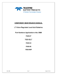 COMPONENT MAINTENANCE MANUAL LT-Valve-Regulated Lead-Acid Batteries Part Numbers Applicable to this CMM 7639-27 7639-30LT 7639-34 7638-36 7638-48P Q01-4000 Rev F March 9, 2016 CONTENTS Section Description Page 1 Revisions ………………………………………………………………………….. 1 2 Scope ……………………………………………………………………………… 2 3 Description of Valve-Regulated Lead-Acid batteries ………………………… 3 Definition of Battery Specifications …………………………………………….. 4 State of Charge Vs Voltage …………………………………………………….. 5 4 Service Instructions ……………………………………………………………… 6 5 Charging, Constant Potential …………………………………………………… 8 Charging, Constant Current …………………………………………………….. 9 Charging, Float …………………………………………………………………… 10 Charging, Initial …………………………………………………………………… 11 Routine Maintenance …………………………………………………………….. 12 Continued Airworthiness Testing ……………………………………………….. 12 Reconditioning Battery …………………………………………………………... 13 Deep Discharge Recovery ………………………………………………………. 13 Monitoring Batteries in Long Term Storage …………………………………… 14 7 Unscheduled Removals …………………………………………………………. 16 8 Troubleshooting Guide …………………………………………………………... 17 9 Transportation …………………………………………………………………….. 18 10 Recycling ………………………………………………………………………….. 19 11 Glossary …………………………………………………………………………… 21 Appendix A ……………………………………………………………………….. 22 6 Q01-4000 Rev F March 9, 2016 COMPONENT MAINTENANCE MANUAL Revision Approved By Date New document JMR May 3, 2012 A Revised to correct Maintenance Flow Chart and various directions in Service Manual per review with Embraer JMR July 23, 2012 B Revised / Added temperature conversions from °F to °C JMR Dec 19, 2012 C Revised charging processes, Inspection / service period and minimum capacity requirements for battery approval JMR Nov 6, 2013 D Added part number 7639-30LT JMR Apr 2, 2014 E Added part number 7638-48P JMR Sep 3, 2014 F Revised Inspection /Service Period JMR Mar 9, 2016 NC Q01-4000 Description of Change Rev F Page 1 of 28 Teledyne Battery Products Premium LT Valve Regulated Lead Acid Aircraft Batteries By TELEDYNE BATTERY PRODUCTS 1. REVISIONS COMPONENT MAINTENANCE MANUAL 2. SCOPE This manual is applicable for the following batteries: 7639-27, 7639-30LT, 7639-34, 7638-36 and 7638-48P. This manual has been written for the purpose of guidance only; consult Teledyne Battery Products (TBP) Technical Support for further information. Q01-4000 Rev F Page 2 of 28 Teledyne Battery Products Premium LT Valve Regulated Lead Acid Aircraft Batteries By TELEDYNE BATTERY PRODUCTS This manual provides Maintenance Procedures for Gill 7000 Series LT Valve-Regulated LeadAcid (LT VRLA) Aircraft Batteries manufactured under FAA Parts Manufacturer Approval number PQ1006NM. COMPONENT MAINTENANCE MANUAL 3. VALVE-REGULATED LEAD-ACID BATTERIES DESCRIPTION 3.1.1. The 7000 series LT valve-regulated lead-acid (LT-VRLA) batteries are designed with an optimum lead alloy with tin and copper to provide the best possible electrode characteristics necessary for performance. These LT-VRLA batteries contain electrolyte absorbed in glass-mat separators, with no free electrolyte and are sometimes referred to as “sealed” or “recombinant-gas” batteries. WARNING ALL VRLA batteries contain sulfuric acid, which is highly corrosive and which can cause serious physical injury if it comes in contact with skin. It can also cause serious eye injury or blindness if it comes into contact with the eyes. Caution must be exercised to avoid damage to the exterior case which could allow the contents to escape or come in physical contact with external materials or personnel. If a battery case is found to be damaged, handle the battery with care and avoid contact with the skin. Inspect all areas adjacent to the battery for evidence of corrosion. 3.1.2. TBP valve-regulated lead-acid batteries have vent caps (with valves enclosed) that are sealed in place and cannot be accessed for maintenance. At no time must these vent caps be removed. WARNING During normal operation, the batteries will vent very small amounts of gases that must be vented away from the battery and aircraft. The venting mechanisms consist of nozzles (in the battery cover) and vent tubes that are designed to exhaust the battery compartment. Ensure that the vent tubes are not restricted or disabled in any way. 3.1.3. The electrolyte is contained in an absorptive glass-mat (AGM) separator that retains and immobilizes the electrolyte. These batteries can be operated in any orientation without spilling electrolyte. 3.1.4. The battery consists of twelve cells connected in series internally, making up a 24V battery. These cells are not replaceable. Q01-4000 Rev F Page 3 of 28 Teledyne Battery Products Premium LT Valve Regulated Lead Acid Aircraft Batteries By TELEDYNE BATTERY PRODUCTS 3.1 COMPONENT MAINTENANCE MANUAL 3.1.5. DEFINITION OF BATTERY SPECIFICATIONS: 3.2.1 TBP battery ratings are defined by the following: 3.2.1.1 The One-Hour Rate This is the rate of discharge a battery can endure for one hour with the battery voltage at or above 1.67 volts per cell, or 20 volts for a 24 vol