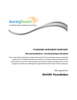 STANDARDS ASSESSMENT INVENTORY Recommendations: Learning Designs Standard This resource brief is designed to support next actions for those educators who are using their results from the Standards Assessment Inventory 2 to improve professional learning. This brief includes an overview of the standard, next steps for continuous improvement in three categories, and tools and readings that support improvement in each of those categories. With support from Standards Assessment Inventory Recommendations: Learning Designs Standard Learning Designs standard overview Professional learning that increases educator effectiveness and results for all students integrates theories, research, and models of human learning to achieve its intended outcomes. One of the most visible components of professional learning is the design of the learning experience. Learning design is the “how” of professional learning. It is the way educators gain knowledge, skills, dispositions, and practices and translate new practices into their daily work. Professional learning research helps inform decisions about which learning designs are most effective for different kinds of learning outcomes, learners, and situations. For example, a book study is effective for gaining new knowledge, yet it is not particularly effective when that knowledge needs to be transferred into new classroom practices. Helping educators make strategic decisions about learning designs is the focus of this standard, which involves three key ideas: (1) applying learning theories, research, and models; (2) selecting learning designs; and (3) promoting active engagement. Apply learning theories, research, and models. What are the best practices when it comes to adult learning? What methods are most effective when learning new information? Are other methods more effective when the desired outcome is putting that new knowledge into practice? Just as a single model of instruction is not effective for all students at all times, the same is true for adult learners. Those engaged in professional learning benefit from a variety of learning designs tailed to the outcomes they want to achieve, their learning preferences, and the context that surrounds their learning. Research points to common characteristics of effective professional learning designs. They involve: • Active engagement of the learner; • Modeling of new strategies; • Reflection on the use of new practices; • Application of new practices in the learner’s own classroom or work environment; • Effective and constructive feedback on the use of new practices; • Ongoing support and assistance, especially during implementation; and Learning Forward 2 Standards Assessment Inventory Recommendations: Learning Designs Standard • Formative and summative assessments of practice. Learning designs come in many different configurations. Professional learning designs can occur face-to-face, online, or as a hybrid of both. Learning designs can focus on individual, team, schoolwide, or districtwide goals and can be formal or informal. The most effective professional learning occurs close to the place of implementation, preferably as a part of the regular workday. However, educators do learn after hours and in the summers as well. For example, extended summer institutes and university coursework provide opportunities for educator learning. Online learning programs, web-based resources, and online collaboration offer additional learning opportunities. Multiple designs are typically used so that educators can (1) gain new knowledge, (2) observe expert modeling of new practices, (3) engage in lowrisk practice and receive feedback about new classroom strategies, and (4) receive ongoing support that assists educators to transfer new practices into their repertoire of instructional strategies and techniques. Learning designs seem to be most effective when they are job-embedded and collaborative. Being job-embedded means “the learning is grounded in day-to-day teaching practice and is designed to enhance teachers’ content-specific instructional practices with the intent of improving student learning” (Darling-Hammond & McLaughlin, 1995; Hirsh, 2009). Jobembedded learning can take place in the classroom with students, such as in the case of an instructional coach working side-by-side with a teacher to co-plan, co-teach, and co-debrief a lesson. It might also include learning in the classroom without students, such as when a team of teachers collaborates to develop common lessons to implement in their own classrooms and then comes together to compare student results and the lesson’s usefulness to accomplish its intended outcomes. Finally, job-embedded learning might take place at school outside the classroom either when students are present or away from school. This form of job-embedded learning focuses on issues of real-time classroom practices and occurs on specific days set aside for professional learning or during schoolwide learning. Job-embedded does not include learning activities that take place outside of school, away from students, and that are removed from instructional issues and practices with content not immediately applicable to the classroom. An example of non-job-embedded learning is attending a twoLearning Forward 3 Standards Assessment Inventory Recommendations: Learning Designs Standard week summer institute and practicing new strategies with summer school students whom participants do not ordinarily teach. Technology-supported learning designs are especially useful for enhancing and extending opportunities for learning. Networks, online courses, blogs, interactive communities, Nings, wikis, and videostreaming make sharing, constructing, and analyzing information about new practices available to educators to fit their schedule. Technology expands the possibilities for personalizing, differentiating, and expanding educator learning. Select learning designs. All learning designs are