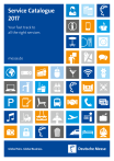 Service Catalogue 2017 Your fast track to all the right services messe.de S H UT T L E Global Fairs. Global Business. PRESS Deutsche Messe ■ Contents Contents 1 fair-packages Stand construction and service packages3 2 Individual service descriptions Telephone lines DSL Internet Antenna connections Water supply Ceiling suspensions Logistics / forwarding services Height access platforms and boom lifts Propane gas / Technical gases Compressed air IT hardware and audiovisual services 4 2.1 Invitation ­services and ­admission tickets Complimentary admission tickets Invitation / eTicket campaign management Promotional materials for your invitations Exhibitor passes Parking permits 5 6 7 9 9 2.2 Highlighting your company (ECMS) Company & product profile Using the ECMS 11 12 2.3 Managing your leads Visitor Management 2.0 E-mail campaigns Lead management Guided Tours Visitor statistics 14 15 16 17 17 2.10 General s­ ervices for your tradeshow stand Stand cleaning Waste disposal Staff for your tradeshow stand and events Stand security Transport and exhibition insurance Plants and flowers Pro photo service Online classified directory 90 91 92 92 93 94 95 96 96 97 99 99 100 100 101 101 102 102 2.4 Additional a ­ dvertising and sponsorship options Outdoor advertising 19 Online advertising 22 Sponsorship24 Print advertising 25 2.11 Travel and accommodation Accommodation104 Getting to the show 105 Childcare106 Hannover Guide 106 2.5 Press services General press services Press boxes, Hot Topics, Trendspots Exhibitor contacts for the press Additional promotion options at CeBIT and HANNOVER MESSE 2.12 Restaurants and catering Restaurants108 The Cosmopolitan 108 The Munich Hall 109 Stand catering 109 Stand parties 109 Special events 110 Baristas & more 110 Catering package 110 2.6 Organization of congresses, conferences and other events Congress management Renting a conference room Using music at the show Registering your stand party Rooms for evening events, receptions and other events Organizing stand parties, evening events and side events Do events differently – at the ADAC Driver Safety Center Hannover-Messe! 27 29 30 31 33 33 34 34 34 35 3 Order placement Online order placement via OBS Ordering using OBS 112 4Checklist 114 5Index 116 6 117 Map of Exhibition Center / parking facilities 36 2.7 Modular stands38 2.8 Fittings for your tradeshow stand Floor coverings Rental furniture and kitchen equipment 74 76 2.9 Technical services and logistics Electric power supply Communications systems 89 90 Note: All prices listed in the 2017 Service ­Catalogue are net prices, subject to German VAT. They are current at the time of printing and are ­subject to change without notice. 2 Deutsche Messe ■ fair packages fair packages ■ Deutsche Messe fair packages: your turnkey, all-included participation option For maximum convenience and cost-effectiveness, you will definitely want to consider booking one of our turnkey “fair packages”, which include space rental, stand construction, basic utilities, lead management services, catering and even promotional services. Leave all the details up to us so you can get right down to business! ✓ All included fair package services are marked red in this catalogue. Basic Comfort Premium Style Premium Trend ✓ ✓ ✓ ✓ ✓ (Modular stand Type A) ✓ (Modular stand Type C) ✓ (Modular stand Type D) ✓ (Modular stand Type Truss) Customized company logo ✓ ✓ ✓ ✓ Electric power supply (page 89) ✓ ✓ ✓ ✓ Comfort + Upgrade 1 ✓ ✓ ✓ ✓ ✓ ✓ ✓ ✓ (2) ✓ (2) ✓ ✓ Space Stand space in line with your specific requirements Stand construction Modular stand, including an enhanced set of basic fittings (page 38) Basic services DSL connection: 6,000 / 3,000 Kbit/s (page 91) Marketing and PR Stand cleaning and waste disposal (page 99) ✓ Insurance for stand and fixtures/furnishings (page 101) ✓ Multiple-entry car parking permit, quantity (page 9) Basic + Upgrade ✓ (1) All services included in the Marketing Fee (page 11) ✓ ✓ Basic + Upgrade 1 ✓ Internet press boxes (page 29) Lead management ✓ 1 ✓ ✓ Online advertising using medium rectangles (page 22) Comfort + Upgrade 1 ✓ ✓ Logo in the printed directory of exhibitors (page 25) Comfort + Upgrade 1 ✓ ✓ ✓ (Medium) ✓ (Full) ✓ (Full) Comfort + Upgrade 1 ✓ ✓ ✓ ✓ ✓ ✓ ✓ ✓ Comfort + Upgrade 1 ✓ ✓ Lead acquisition/management at stand, version (page 16) Basic + Upgrade 1 Invitation / eTicket campaign management (page 6) Catering 2 Coffee and tea (page 110) ✓ Biscuits and bottled water Basic + Upgrade 1 Restaurant vouchers Included in package Upgrade option 3 1 Scope of services as in next higher package in Comfort + package to 2 parking permits 3 Upgrade in Comfort + package to Full Version 2Upgrade If you have any questions about our fair packages or other special requirements, contact us at: fp-hannovermesse@messe.de fp-cebit@messe.de cemat@messe.de domotex@messe.de 3 Invitation services and admission tickets ■ Deutsche Messe 2.1 Invitation ­services and ­admission tickets 4 Visitor registration, mandatory Invitation services and admission tickets ■ Deutsche Messe Complimentary admission tickets Nicht ausschneiden! Nur gültig als DIN-A4Ticket / e-Ticket vor Nässe schützen Do not cut out ! Ticket valid only in A4 format/letter size / Keep your eTicket dry e-Ticket LIGNA 2015 Dauerticket Full-Event Ticket Öffnungszeiten/Opening hours: 11 – 15 May 2015, 9.00 – 18.00 h Zeile1 Zeile1 Zeile1 Zeil Zeile2 Zeile2 Zeile2 Zeil Zeile3 Zeile3 Zeile3 Zeil Zeile4 Zeile4 Zeile4 Zeil 12345678901234 Netting qualified leads is the main reason for appearing at a tradeshow. Which is why you’ll want to use complimentary admission tickets as a tool to get your customers and business partners out to your stand. A complimentary admission ticket demonstrates your appreciation for your visitors, adding more weight to your invitation. It is the most effective way 