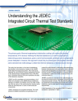 THERMAL MINUTES Understanding the JEDEC Integrated Circuit Thermal Test Standards The primary goal of thermal engineering in electronics cooling is to reduce the junction temperatures of IC devices. Defining the thermal resistance is a common approach to determining junction temperature, given a set of environmental conditions and a component’s power dissipation. However, this approach would only be meaningful if all suppliers used the same standard test methodology to determine thermal resistance of semiconductor devices. The entity that has taken on the task of establishing benchmarks in the electronics industry is the JEDEC Solid State Technology Association. This trade group, originally the Joint Electron Device Engineering Council, is the semiconductor standardization body of the Electronic Industries Alliance (EIA) and represents all areas of the electronic industries. JEDEC has 50 committees and subcommittees, all of which are overseen by the JEDEC Board of Directors. Members of JEDEC committees come from 290 companies that are active in the semiconductor industry sector, either as manufacturers or users of semiconductor components. JEDEC standards are accepted worldwide. The main purpose of JEDEC standards and publications is to protect the public interest by eliminating misunderstanding between manufacturers and purchasers, and by facilitating the interchangeability and improvement of products. Another function of these standards is to assist JEDEC nonmembers to select and obtain proper products with minimum delay [1]. JESD51 provides an overview of the methodologies for the thermal measurement of packages containing single chip semiconductor devices. The actual methodologies are distributed among several documents which can be selectively used to meet specific thermal measurement requirements. A brief description of the complete JEDEC51 family of standards is presented in Table 1. Copyright© Advanced Thermal Solutions, inc. | 89-27 Access Road Norwood, MA 02062 usa | T: 781.769.2800 www.qats.com Page 6 Thermal Minutes Table 1. JEDEC Thermal Measurement of IC Package Standards [2]. Standard Description JESD51 Overview of methodology for thermal testing of single semiconductor devices Test method to determine thermal characteristics of a single IC device Test method to determine thermal characteristics of a single IC device in natural convection (still air) Thermal test board design with a low effective thermal conductivity for leaded surface mount packages Design requirements for wire bond type semiconductor chips to be used for thermal resistance listing of IC packages. Thermal test board design for packages with direct thermal attachment mechanism Test method to determine thermal characteristics of a single IC device in a forced convection Thermal test board design with high effective thermal conductivity for leaded surface mount packages Environmental conditions for a measurement of Junction-to-board Thermal resistance Thermal test board design for Ball Grid Array (BGA) and Land Grid Array (LGA) Thermal test board design for Dual-Inline Packages (DIP) and Single-Inline Packages (SIP) Thermal test board design for Pin Grid Array (PGA) packages Guidelines for reporting and using Electronic Package Thermal Information JESD51-1 JESD51-2 JESD51-3 JESD51-4 JESD51-5 JESD51-6 JESD51-7 JESD51-8 JESD51-9 JESD51-10 JESD51-11 JESD51-12 In JEDEC standards, thermal characterizations of a semiconductor device require measurement of the junction. There are a number of methods to Top measure Top or Case the die temperature, such as infrared and liquid crystal sensing, but the most commonly used is the voltage drop across a forward-biased diode. This diode is specifically designed into the thermal test die and in many integrated circuit devices. The measurement current through the test diode must be large enough to not be influenced by surface leakage, yet not small enough to cause considerable self-heating. Junction A typical value for measurement current is from 100 μA to 5 mA, depending on the size of the diode [1]. Under JEDEC standards, there are two approaches to measuring the junction temperature. One is known as Static Mode, where heating power is continuously applied to the Device Under Test (DUT) while monitoring the junction temperature. This method is suitable for use with thermal test diodes and some active integrated circuit devices. The other approach is referred to as Dynamic Mode, during which power is applied to the DUT for a specific period of time to reach equilibrium, and then switches to measurement mode. This method is suitable for most active integrated circuits [1]. Thermal characterization of a semiconductor that is generated using JESD51 standards is defined as thermal resistance and is governed by Equation 1: q JX = TJ - Tx PH (1) In the above equation, q JX is the thermal resistance from device junction to the specific environment (°C/W), TJ is device junction temperature (°C), Tx is the reference temperature for the environment (°C) and PH is the power dissipated in the device (W). Another definition used in JEDEC standards is the Thermal Characteristic Parameter, and is governed by Equation 2: y JX = TJ - Tx PH (2) The main difference between q JX and y JX is that the thermal resistance q JX is calculated in a condition where nearly all of the component power dissipation flows through either the top or the bottom of the package. On the other hand, in calculating the Thermal Characterization Parameter, power is the total power dissipation in the chip and may leave the chip through any thermal path, not just from the top or the bottom of the package. Board 1-5mm Gap Insulation to Board or Insulation to package | 89-27 Access Road Norwood, MA 02062 usa | T: 781.769.2800 www.qats.com Copyright© Advanced Thermal Solutions, inc.Temperature Board Thermocouple Junction Temperature Page 7 of a single IC device Test method to determine thermal characteristics of a 