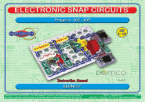 Project 242 Copyright © 2012 by ELENCO® All rights reserved. No part of this book shall be reproduced by any means; electronic, photocopying, or otherwise without written permission from the publisher. REV-H Revised 2012 753098 Patent #‘s: 7,144,255, 7,273,377, & other patents pending Table of Contents Basic Troubleshooting Parts List MORE About Your Snap Circuits® Parts MORE DO’s and DON’Ts of Building Circuits MORE Advanced Troubleshooting Project Listings Projects 102 - 305 Other Fun Elenco® Products 1 2 3 4 5 6, 7 8 - 73 74 1. Most circuit problems are due to incorrect assembly. Always double-check that your circuit exactly matches the drawing for it. 2. Be sure that parts with positive/negative markings are positioned as per the drawing. 3. Be sure that all connections are securely snapped. 4. Try replacing the batteries. 5. If the motor spins but does not balance the fan, check the black plastic piece with three prongs on the motor shaft. Be sure that it is at the top of the shaft. Elenco® is not responsible for parts damaged due to incorrect wiring. Note: If you suspect you have damaged parts, you can follow the Advanced Troubleshooting procedure on page 5 to determine which ones need replacing. ! WARNING: CHOKING HAZARD Small parts. Not for children under 3 years. WARNING FOR ALL PROJECTS WITH A ! SYMBOL Moving parts. Do not touch the motor or fan during operation. Do not lean over the motor. Do not launch the fan at people, animals, or objects. Eye protection is recommended. • Use only 1.5V AA type, alkaline batteries (not included). • Insert batteries with correct polarity. • Non-rechargeable batteries should not be recharged. Rechargeable batteries should only be charged under adult supervision, and should not be recharged while in the product. • Do not mix alkaline, standard (carbonzinc), or rechargeable (nickel-cadmium) batteries. • Do not mix old and new batteries. • Remove batteries when they are used up. • Do not short circuit the battery terminals. • Never throw batteries in a fire or attempt to open its outer casing. • Batteries are harmful if swallowed, so keep away from small children. • Do not connect batteries or battery holders in parallel. ! WARNING: Always check your wiring before turning on a circuit. Never leave a circuit unattended while the batteries are installed. Never connect additional batteries or any other power sources to your circuits. Discard any cracked or broken parts. Adult Supervision: Because children’s abilities vary so much, even with age groups, adults should exercise discretion as to which experiments are suitable and safe (the instructions should enable supervising adults to establish the experiment’s suitability for the child). Make sure your child reads and follows all of the relevant instructions and safety procedures, and keeps them at hand for reference. This product is intended for use by adults and children who have attained sufficient maturity to read and follow directions and warnings. Never modify your parts, as doing so may disable important safety features in them, and could put your child at risk of injury. (See page 3 of the Projects 1-101 manual for more details.) The Snap Circuits kit uses building blocks with snaps to build the different electrical and electronic circuits in the projects. These blocks are in different colors and have numbers on them so that you can easily identify them. The circuit you will build is shown in color and with numbers, identifying the blocks that you will use and snap together to form a circuit. ® Next to each part in every circuit drawing is a small number in black. This tells you which level the component is placed at. Place all parts on level 1 first, -1- ! ! Batteries: Basic Troubleshooting Review of How To Use It WARNING: SHOCK HAZARD Never connect Snap Circuits® to the electrical outlets in your home in any way! then all of the parts on level 2, then all of the parts on level 3, etc. A large clear plastic base grid is included with this kit to help keep the circuit block together. The base has rows labeled A-G and columns labeled 1-10. Install two (2) “AA” batteries (not included) in the battery holder (B1). The 2.5V and 6V bulbs come packaged separate from their sockets. Install the 2.5V bulb in the L1 lamp socket, and the 6V bulb in the L2 lamp socket. Place the fan on the motor (M1) whenever that part is used, unless the project you are building says not to use it. Some circuits use the red and black jumper wires to make unusual connections. Just clip them to the metal snaps or as indicated. Note: While building the projects, be careful not to accidentally make a direct connection across the battery holder (a “short circuit”), as this may damage and/or quickly drain the batteries. Parts List (Colors and styles may vary) Symbols and Numbers Note: There are additional part lists in your other project manuals. Important: If any parts are missing or damaged, DO NOT RETURN TO RETAILER. Call toll-free (800) 533-2441 or e-mail us at: help@elenco.com. Customer Service • 150 Carpenter Ave. • Wheeling, IL 60090 U.S.A. Qty. ID Name r3 1 r3 Symbol Part # Qty. ID Name Symbol Part # 1-Snap Wire 6SC01 r1 C3 10μF Capacitor 6SCC3 2 2-Snap Wire 6SC02 r1 C4 100μF Capacitor 6SCC4 r1 3 3-Snap Wire 6SC03 r1 C5 470μF Capacitor 6SCC5 r1 4 4-Snap Wire 6SC04 r1 R2 1kΩ Resistor 6SCR2 r1 7 7-Snap Wire 6SC07 r1 R3 5.1kΩ Resistor 6SCR3 r1 B1 Battery Holder - uses 2 1.5V type AA (not Included) 6SCB1 r1 R4 10kΩ Resistor 6SCR4 r1 A1 Antenna Coil 6SCA1 r1 R5 100kΩ Resistor 6SCR5 r1 D2 Green Light Emitting Diode (LED) 6SCD2 r1 U5 High Frequency Integrated Circuit 6SCU5 r1 L2 6V Lamp 6SCL2 r1 Q1 PNP Transistor 6SCQ1 r1 X1 Microphone 6SCX1 r1 Q2 NPN Transistor 6SCQ2 r1 U4 Power Amplifier Integrated Circuit 6SCU4 r1 RV Adjustable Resistor 6SCRV r1 C1 0.02μF Capacitor 6SCC1 r1 CV Variable Capacitor 6SCCV r1 C2 0.1μF Capacitor 6SCC2 You may order additional / replacem