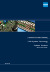 Electronic Board Assembly ERNI Systems Technology Systems Solutions - a one stop shop - www.erni.com Contents ERNI Systems Technology Soldering Technologies SMT soldering - Reflow Soldering of Surface Mount Devices THR soldering - Through Hole Components, reflow soldered THT soldering - Through Hole Components, wave soldered - Selective THT process - Masked Wave Soldering - Mini Solder Wave Soldering Equipment Testing of electronic assemblies - AOI – Automatic Optical Inspection - Electrical Testing Pressfit Technology Pressfit zone PCBs for pressfit technology Tools Testing ERNI Systems Technology Customer ERNI Sales Organisation ERNI Systems Technology Design + Engineering Soldering + Integration Pressfit Technology + Integration Products of ERNI Systems Technology Electronic Assemblies Backplanes Subracks Cable Assemblies Cable Assembly Soldering Technologies: SMT / THR / THT Terms & Definitions: SMT Surface Mount Technology Mounting technology for SMDs (Surface Mount Devices) The assembly is carried out using the reflow soldering process (e.g. convection, vapor phase). THR Through Hole Reflow Mounting technology for components in through hole technology (wired components) for automatic pick & place process. Components have to be resistant against soldering heat. The assembly is carried out using the reflow soldering process. THR process also is known as: PIP Pin In Paste PIH(I)R Pin In Hole (Intrusive) Reflow Through Hole Technology Mounting technology for components in through hole technology using the wave soldering process THT SMT process steps for assembly of SMDs on both sides of the board screen printing of solder paste SMD assembly on the 1st side 1st reflow soldering screen printing of solder paste on the 2nd side SMD assembly on the 2nd side 2 nd reflow soldering solder fillet (meniscus) turn board upside down double reflow capability for components on bottom side Challenge of SMT soldering process Process and design know-how necessary Hand soldering is limited (challenge for amateurs) Investment necessary in paste printer, pick&place machines, reflow soldering systems, handling systems, etc. Higher heat impact on components Double reflow soldering capability is important for double side assembly: component weight / soldering area = max. 0,1 g / mm² temperature stability: min. 2x reflow soldering temperature Coplanarity of SMD pins coplanarity max. 100µm Reduced stability of PCB solder pads against mechanical load (typical 1N / mm2) Complex test equipment for miniaturized components necessary (possibly X-ray inspection instead of optical inspection for BGAs or SMT connectors like MicroSpeed, ERmet zeroXT, …) THR – how it works ! component pin definition in IPC-A-610: 1.4.7 Reflow Soldering of Through Hole Components A process, by which the solder paste for through hole components is applied using a stencil, to solder these components together with the surface-mount components in the reflow process. solder paste plated through hole solder pad PCB with solder resist Challenge of THR soldering process Components should be suitable for automatic pick & place process. Dedicated pick & place-pads can be used Components have to withstand the thermal impact during the reflow soldering process. Thickness of PCB should be limited to 2mm Diameter of plated through hole has to be adjusted to pin diameter of component, typical: diameter of plated through hole = pin diagonal + 0.1mm Solder filling of plated through hole has to be according IPC specification: minimum 75% fill Sufficient solder paste has to be provided. Solder Preforms can be used at critical points in order to rise the amount of solder. Note: For THR technology sufficient solder paste volume has to be applied, in order to fill up the distance between solder pin and metallized hole during the reflow soldering process. For this an appropriate area has to be printed with solder paste, occasionally also the solder resist surrounding the pad. Combined soldering technologies: SMT / THR / THT screen printing of solder paste SMD assembly THR components assembly reflow soldering adhesive application for fixing of SMDs (for subsequent wave soldering) using: THR turn board upside down THR THR turn board stencil printing (only for SMT) or dispensing (if terminations of THR components penetrate the printing area) SMD assembly (for subsequent wave soldering) baking of adhesive (in reflow oven) upside down THR THT THT components assembly wave soldering Note: For the combination of SMT and THR process without wave soldering, THR component should always be placed on the 2nd soldering side. Thus also heavy THR components can be soldered by the reflow process.. Selective THT process Selective wave soldering is recommended, if a lot of SMDs are already assembled to the PCB and only few THT components have to be soldered afterwards. With selective soldering only a part of the PCB is exposed to the solder wave. This is opposite to the standard wave soldering process. Masked Wave Soldering One variant of this process is masked wave soldering. Hereby sensitive areas of the PCB or already soldered SMDs are covered by a mask, made of thermal resistant plastic material. components mask solder bath Example: Solder mask for 2 boards in a solder frame. In the black areas the PCB is protected against the solder bath. Mini Solder Wave The solder joints are produced selectively by moving a solder nozzle or the PCB in X- and Ydirection accordingly. The solder nozzle with variable diameter of 6, 8 or 10 mm can also be moved to hardly accessible solder joints on the board. The nozzle itself is flooded with hot nitrogen (protective gas), in order to impede oxidation. The result is a high reliable solder joint. Picture of a Mini Solder Wave and a view of the function principle Y A preheating of the PCB delivers an adapted temperature niveau (substantially for the leadfree soldering process). X Note: If pressfit technology will be applied to the board a