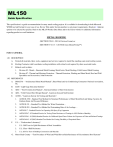 ML150 Guide Specification This specification is a guide recommendation for many metal roofing projects. It is available for downloading in both Microsoft WORD and .pdf format for your ease of use. Revise Title and/or Section numbers to suit project requirements. Brackets [ ] indicate options to be selected by specifier. Refer to the ML150 Product Data Sheet and to the Union website for additional information regarding product use and limitations. METAL ROOFING (SECTION 07610 - CSI 16 Division Format) or [SECTION 07 41 13 - CSI 50 Division MasterFormat] PART 1 GENERAL 1.01 DESCRIPTION A. Furnish all materials, labor, tools, equipment and services required to install the standing seam metal roofing system. B. Roofing Contractor shall coordinate roofing installation with related work required by other associated trades. C. Related work includes: 1. Division 05: Metals - Structural Metal Framing, Metal Joists, Metal Decking, Cold-Formed Metal Framing 2. Division 07: Thermal and Moisture Protection – Thermal Protection, Flashing and Sheet Metal, Roof and Wall Specialties and Accessories, Joint Protection 1.02 REFERENCES A. SMACNA – “Architectural Sheet Metal Manual”, Sheet Metal and Air Conditioning Contractors National Association, Inc. B. LGSI – Light Gage Structural Institute” C. AISC – “Steel Construction Manual”, American Institute of Steel Construction D. AISI – “Cold Formed Steel Design Manual”, American Iron and Steel Institute E. ASTM – “American Society for Testing and Materials”: F. G. 1. ASTM E-1592 - Standard Test Method for Structural Performance of Sheet Metal Roof and Siding Systems by Uniform Static Air Pressure Difference 2. ASTM E-331 – Standard Test Method for Water Penetration… 3. ASTM E-283 – Standard Test Method for Determining Rate of Air Leakage… 4. ASTM B117 - Standard Practice for Operating Salt Spray (Fog) Apparatus 5. ASTM D2247 - 02 Standard Practice for Testing Water Resistance of Coatings in 100% Relative Humidity 6. ASTM D3361 - 01(2006) Standard Practice for Unfiltered Open-Flame Carbon-Arc Exposures of Paint and Related Coatings 7. ASTM D4145 - 83(2002) Standard Test Method for Coating Flexibility of Prepainted Sheet U.L. – “Underwriters Laboratory”: 1. U.L. 580 Tests for Uplift Resistance of Roof Assemblies 2. U.L. Class 4 Hail Resistance 3. U.L. 263 Fire Tests of Building Construction and Materials Metro-Dade County – “Test Procedure of Wind and Wind Driven Rain Resistance of Discontinuous Roof Systems” 1. Florida Building Code, Building 2010 and Protocols TAS 100-95 and ASTM E8-01 1.03 SUBMITTALS A. General: Provide submittals in accordance with the Conditions of the Contract. B. Product Data: Submit product data sheet(s) for specified metal roofing panel products. C. Shop Drawings: Submit shop drawings showing roof panel profile(s), gauge(s), layout and system components, including anchorage, trim and accessories. D. Samples: Submit two sample color chips for final selection and verification of finishes, colors and textures. E. Quality Assurance: Submit the following: F. 1. Manufacturer’s Installation Manual 2. Contractor Certification stating installer of products of this section meets specified qualifications. 3. Manufacturer Certification stating metal roofing system materials comply with specified performance characteristics and physical requirements. Close Out: Submit the following close-out documentation: 1. Maintenance Data for installed metal roofing system. Include methods for maintaining installed products and precautions against cleaning materials and methods detrimental to finishes and performance. 2. Warranty documents as specified herein. 1.04 QUALITY ASSURANCE A. Applicable Standards: 1. Comply with metal roofing manufacturer’s Installation Guide applicable for the specified roofing system 2. SMACNA: Comply with Sheet Metal and Air Conditioning Contractors National Association’s “Architectural Sheet Metal Manual” unless specifically stated otherwise by roofing manufacturer’s printed material 3. AISC: Comply with American Institute of Steel Construction “Steel Construction Manual” 4. Final Inspection: Upon completion of the roofing installation, provide a final inspection by a technical representative of the roofing manufacturer to confirm that the installation appears to be installed in accordance with manufacturer’s requirements. B. Manufacturer Qualifications: Manufacturer shall have a minimum of five years experience manufacturing metal roofing systems. C. Installation Contractor Qualifications: Installation contractor shall be currently approved in writing by the manufacturer of the metal roofing system and meet the following minimum criteria: 1. Maintain $250,000 minimum general liability insurance coverage 2. Maintain statutory limits of worker’s compensation coverage as mandated by law 3. Project Foreman shall have a minimum of three years experience installing this type of metal roofing system and shall be on-site to supervise the installation of the metal roofing system D. Field Measurements: Installation contractor is to verify actual field measurements/openings before fabrication. Coordinate field measurements, fabrication schedule with construction progress to avoid construction delays. E. Pre-Construction Meeting: Conduct a pre-construction meeting prior to the start of the roofing installation to finalize any outstanding issues, questions or details regarding the installation of the roof. A representative for the building owner, architect, general contractor, roofing contractor and manufacturer shall be in attendance. 1.05 SYSTEM PERFORMANCE REQUIREMENTS A. System performance varies according to panel widths and substrates. Use the following requirements where applicable. B. Wind uplift resistance shall meet the following requirements: 1. Metal roof panel system tested in accordance with ASTM E-1592 test procedures with load span tables being provided for t