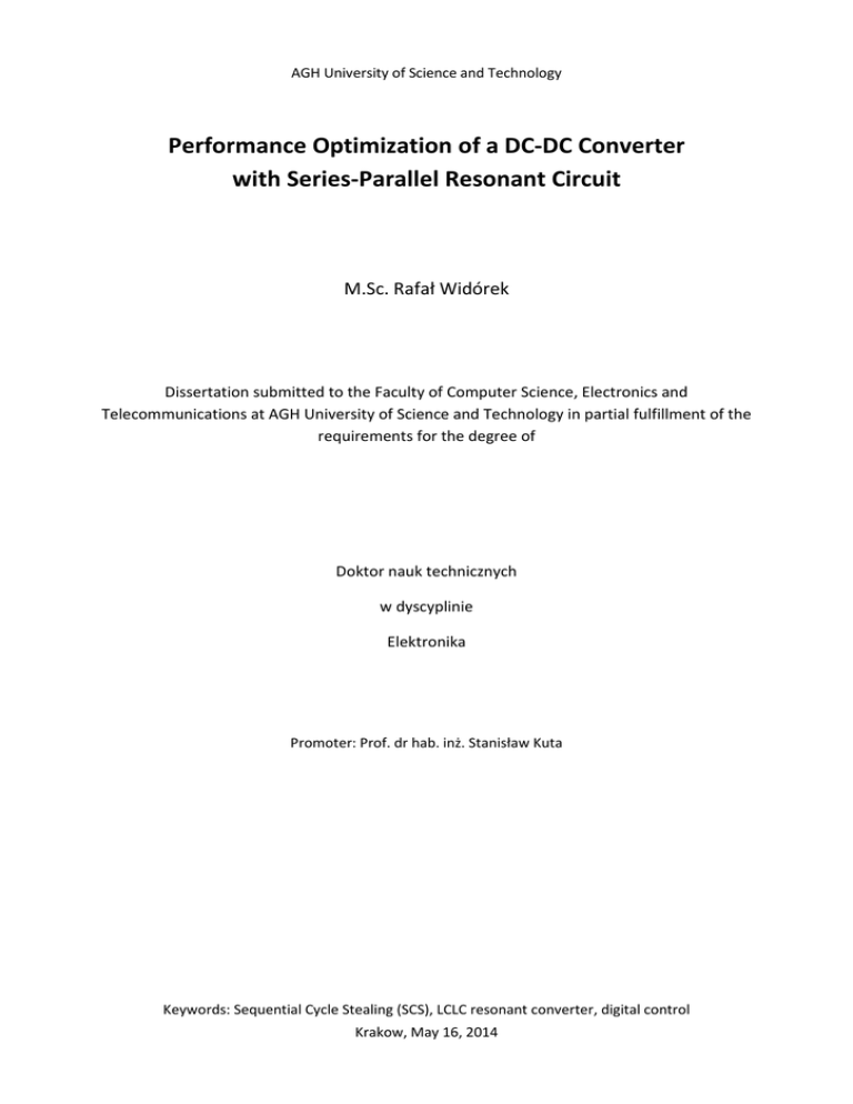 Słowa kluczowe: Sequential Cycle Stealing (SCS), przetwornica rezonansowa LCLC, cyfrowe sterowanie