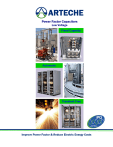 Power Factor Capacitors Low Voltage Fixed Capacity Automatic Transient Free Improve Power Factor & Reduce Electric Energy Costs Determine Your Power Factor Objectives 1. Improve Power Factor for Individual Motors Use Fixed Power Factor Capacitors Power factor capacitors may conveniently be switched on and off with individual motors. This assures that the capacitor is energized only during the times when the motor is energized - when you need power factor correction. For this type of application, typically a Fixed Capacitor Bank is used. This is the simplest and most economical form of power factor correction. Depending on the manner in which you connect the capacitor, you may or may not need to include fuses. See page 6 for more details. Harmonics will reduce the life of power factor capacitors. Whenever there are harmonic producing loads on the power system, the capacitor bank should include a capacitor protection reactor, that will “detune” the capacitor bank to a frequency where no harmonic energy exists. Consult factory for “detuned” capacitor banks. 2. Improve Power Factor for Entire Facility Use Automatic Power Factor Capacitors When the load conditions and power factor in a facility change frequently, the demand for power factor improving capacitors also changes frequently. In order to assure that the proper amount of power factor capacitor kvars are always connected to the system (without over-correcting), an Automatic Type Capacitor System should be used for applications involving multiple loads. Harmonics will reduce the life of power factor capacitors. Whenever there are harmonic producing loads on the power system, the automatic capacitor bank should include a capacitor protection reactor, that will “detune” the capacitor bank to a frequency where harmonic energy does not exist. Alternatively it can be supplied as a harmonic filter that will remove unwanted harmonic frequencies from the power system. Consult factory for “detuned” capacitors or harmonic filters. 3. Improve Power Factor for Large Induction Equipment Use smARTvarTM Dynamic Power Factor Capacitors Large inductive loads (large motors, oil drilling rigs, wind turbines, amusement rides, auto crushers, arc furnaces, induction furnaces, etc.) typically have dynamic requirements for reactive energy (kVARs), these applications require more sophisticated automatic type capacitor systems with extremely fast response capabilities. Use smARTvar™ for applications with large dynamic loads. Table of Contents 2 Determine Your Power Factor Objectives 2 Alternative Solutions from Arteche 3 Benefits of Improving Power Factor 4 Switching Capacitors with Motors 6 Power Factor Tutorial 7 Determining Your Capacitor KVAR Requirement 8 Product Specifications 9 Product Selection - 480V 10 Useful Capacitor Formulae 11 Harmonics will reduce the life of power factor capacitors, whenever there are harmonic producing loads on the power system, this type of capacitor bank should include a capacitor protection reactor, that will “detune” the capacitor bank to a frequency where no harmonic energy exists. Alternatively it can be supplied as a harmonic filter that will remove unwanted harmonic frequencies from the power system. Consult factory for “detuned” capacitor banks or harmonic filters. Power Factor Solutions from Arteche Fixed Capacitor Banks (non-automatic) Arteche Type CFB Power Factor Capacitor Systems offer a fixed amount of kVARs. They can be supplied with or without fuses or with circuit breakers. The internal circuit breaker can provide over current protection as well as satisfy the NEC requirements for a disconnecting means (when capacitor is not connected between motor and overload relay). For applications where there may be harmonic producing loads on the power system, “detuned” capacitor banks are available to reduce the flow of harmonic currents into the capacitor. Arteche also offers harmonic filters that will remove harmonics from the power system. Fixed Power Factor Capacitors may conveniently be switched on and off with individual motors. Automatic Capacitor Banks Precise increments of kVAR are switched on-line as needed. Arteche Type CAB Automatic Power Factor Capacitor Systems automatically adjust the connected capacitor kVAR to the system needs based on commands from the internal electronic power factor controller. The total bank of capacitors is segmented into convenient increments of kVAR which are switched on-line as needed. Automatic capacitor systems can be supplied either with or without a main circuit breaker or switch. For applications that have harmonic producing loads, automatic capacitor systems can be supplied with an optional detuning reactor to reduce the flow of harmonic currents in capacitors. Arteche also offers harmonic filters that will remove harmonics from the power system. smARTvarTM Transient-Free Automatic Capacitor Banks smARTvarTM Type SMV Automatic Capacitor Systems utilize power electronic technology to achieve extremely fast switching of power factor capacitors. Not only is this an automatic power factor system, it can switch capacitors on-line in less than one cycle, to maintain designed power factor when large inductive loads have very dynamic characteristics. It can respond to the most dynamic of loads including arc furnaces, amusement rides, wind turbines, etc. The total bank of capacitors is segmented into convenient increments of kVAR which are switched as needed using zero-cross switching thyristors. Capacitor switching is accomplished rapidly but without transients. These systems can be supplied either with or without a main circuit breaker or switch. For those applications that have harmonic producing loads, these capacitor systems are available with an optional detuning reactor to reduce harmonic currents in the capacitor. Arteche also offers harmonic filters to remove harmonics from the power system. Capacitor switching is accomplished in less than one