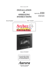 Effective January 2009 INSTALLATION & OPERATING INSTRUCTIONS Serial Number: B.D. Number: Model: IS700/IS007 PLEASE KEEP THESE INSTRUCTIONS FOR FUTURE REFERENCE Aurora CLIMATE SYSTEMS A.B.N. 43 108 083 987 SAI Global Approval No. GSCS20025 Australian Patent PN 200110001S TABLE OF CONTENTS SAFETY LABEL OPERATING INSTRUCTIONS To The New Owner Safety Labels 2 Automatic Humidifier Operation 28 3-4 Operating Instructions Checklist 29-30 INSTALLATION INSTRUCTIONS Specifications 5 General Safety Information 6 Clearances to Combustibles 7 Log Installation Fluing Requirements 8-9-10-11 12 Fluing Options / Installation 13-20 Optional Remote Control Thermostat 21-22 Lighting Instructions 31 Fan Operation 32 Shutdown Instructions 32 High Temperature Cut Out 33 Paint Curing - First Firing 33 Operating Faults 34 Resetting the Heater 34 MAINTENANCE Gas Connection 23 Maintenance Instructions 35 Gas Valve Adjustment 24 Log Replacement 35 Wiring Diagram 25 Main Convection Fan 35 Safety Screen Installation 26 Heat Exchanger 35 Insert Surround 27 Gold/Chrome Plated Doors 36 Glass Replacement/Cleaning 36 COMPLETE UNIT WARRANTY 37-38-39 FREQUENTLY ASKED QUESTIONS 40-41 NOTES 1 42 TO THE NEW OWNER Congratulations! You are the owner of a state of the art Archer High Efficiency Gas Log Space Heater. This appliance has been designed to provide you with all the warmth and charm of a wood fire at the flick of a switch. The Archer Gas Log Space Heater promises to provide you with the highest economy, heat output, comfort and security. NOTE: AURORA WARRANTY PROGRAM Please note to qualify for the Aurora Warranty Program, you need to fill out the warranty registration form, and have your qualified installer fill out the Installation Commissioning Report. Both documents must be returned promptly to Aurora Climate Systems. Under new government legislation, you also need to obtain from your qualified installer, a Certificate of Compliance for the guarantee of the installation. Please note, that Aurora Climate Systems will not accept responsibility for faults with the appliance caused through installation faults. We therefore strongly recommend that you return to Aurora Climate Systems the Installation Commissioning Report and obtain a Certificate of Compliance from your qualified installer for your protection. Failure to do so can void your warranty. Please take a moment now to acquaint yourself with the instructions and many features of your Archer High Efficiency Gas Log Space Heater. Warranty - Installation - Service (Listing and Code Approvals) This appliance has been tested in accordance with SAI Global to code AS4553 Test Approval No. GSCS20025, and has been certified to the Electrical AS3100 standard. Check with your local council’s building department to ensure compliance with local codes, including the need for permits and follow up inspections. Or if you wish clarification of the instructions contained in this manual, please contact Aurora Climate Systems on telephone (03) 9795 8895 or facsimile (03) 9701 2088. Note: As the Archer Gas Log Space Heater you have purchased is a high tech, high efficiency appliance, we wish to advise that your appliance should at all times only be installed by a licensed Gas Fitter / Installer for the installation and service of the Archer Gas Log Space Heater. At no time should this appliance be installed outside the installation guide lines contained in the Installation Manual, or by a non qualified gas fitter / installer. To do so will void the warranty. It is policy of Aurora Climate Systems that should a fault develop in the Archer Gas Log Space Heater during its warranty period, Aurora will repair the appliance in these circumstances. However we wish to advise that should the Archer Gas Log Space Heater develop a fault in its operation because the product was not installed in accordance with the manufacturer’s guidelines and instructions, or if the product was not installed correctly by a licensed gas fitter / installer or lack of operating knowledge of the appliance by the customer causing appliance failure, then a service charge will apply. In such cases, where attendance is required by Aurora Service Personnel to correct faults in the product which are not directly related to the product and / or parts failure but are the result of improper installation and lack of operating knowledge of the appliance, Aurora Climate Systems will charge the purchaser of the appliance and the installer / service agent a fee calculated on the basis of $80.00 + GST per hour minimum, as well as travelling expenses in excess of 25 km each way to rectify such faults. Note: The Complete Unit Warranty, inclusions, exclusions, terms and conditions are listed on pages 37 to 39 of this manual. 2 PLEASE KEEP THESE INSTRUCTIONS FOR FUTURE REFERENCE ! IMPROPER INSTALLATION, ADJUSTMENT, ALTERATION, SERVICE OR MAINTENANCE CAN CAUSE INJURY OR PROPERTY DAMAGE. REFER TO THIS MANUAL FOR ASSISTANCE OR ADDITIONAL INFORMATION, CONTACT AURORA CLMATE SYSTEMS. TELEPHONE NUMBER (03) 9795 8895 THIS APPLIANCE MUST BE INSTALLED OR SERVICED ONLY BY A LICENCED GAS FITTER FOR THE INSTALLATION AND/OR SERVICE OF THE ARCHER GAS LOG SPACE HEATER. Note: If this appliance is installed by a licensed gas fitter who is not familiar on the installation of the heater, we recommend that prior to installing the appliance the installer contact Aurora to obtain further advice on the installation of the product. FOR YOUR SAFETY What to do if you smell gas? 1) 2) 3) 4) 5) Open Windows Turn off main gas supply Do not touch any electrical switches Extinguish any open flames Immediately call your gas supplier or installer Do not store or use gasoline or other flammable vapours and liquids in the vicinity of this or any other appliance 3 SAFETY LABELS Model - Archer Ο Ο Gas Type Model Type Natural IS700 Ο LPG IS700 Ο Gas Consumption Manifold Pressure Injector Size - Front - Rear SAI Global Approval No to Code AS4553 31MjHr 0.7Kpa 2.15mm