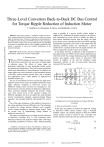 World Academy of Science, Engineering and Technology International Journal of Electrical, Computer, Energetic, Electronic and Communication Engineering Vol:8, No:5, 2014 Three-Level Converters Back-to-Back DC Bus Control for Torque Ripple Reduction of Induction Motor T. Abdelkrim, K. Benamrane, B. Bezza, Aeh Benkhelifa, A. Borni International Science Index, Electrical and Computer Engineering Vol:8, No:5, 2014 waset.org/Publication/9998194 Abstract—This paper proposes a regulation method of back-toback connected three-level converters in order to reduce the torque ripple in induction motor. First part is dedicated to the presentation of the feedback control of three-level PWM rectifier. In the second part, three-level NPC voltage source inverter balancing DC bus algorithm is presented. A theoretical analysis with a complete simulation of the system is presented to prove the excellent performance of the proposed technique. Keywords—Back-to-back connection, Feedback control, Neutralpoint balance, Three-level converter, Torque ripple. I. INTRODUCTION T HE use of PWM technique at low level voltage converters back-to-back connected is the main cause of torque ripple in induction motor. The effects of torque ripple are particularly undesirable in some demanding motion control and machine tool applications. They lead to speed oscillations which cause deterioration in the performance. In addition, the torque ripple may excite resonances in the mechanical portion of the drive system, produce acoustic noise, and, in machine tool applications, leave visible patterns in high-precision machined surfaces [1]. The use of conventional two-level inverter for high power induction motors driven cannot accomplish satisfactory torque ripple reduction compared to three-level inverter [2]. Multilevel voltage source converters are emerging as a new breed of power converter options for high-power applications. These converters typically synthesize the staircase voltage wave from several levels of DC capacitor voltages [3]. Different topologies has been developed like diode-clamped inverter (neutral-point clamped), capacitor-clamped (flying capacitor), and cascaded multicell with separate DC sources [4]. One of the major limitations of the multilevel converters is the voltage unbalance between different levels. The techniques to balance the voltage between different levels normally involve voltage clamping or capacitor charge control. There are several ways of implementing voltage balance in multilevel converters [3]. This paper investigates the use of a back-to-back connection of three-level converters (Fig. 1). This connection allow balancing of the DC link capacitor voltages under a full range of operating conditions [5] whereas, only a limited operating range is possible if a passive rectifier (diode bridge) is employed [6]. Additional advantages brought by the back-toback connection have been shown to include: the ability to draw almost sinusoidal currents from the supply, the input power factor can be controlled and the back-to-back topology automatically regenerates power back to the supply when the operating conditions dictate [7]. Alternatively, a passive rectifier draws a pulsed current from the supply and does not allow a regenerative current to return to the supply. In this paper, first part is dedicated to the presentation of three phases three-level PWM current rectifier regulation loop. After that the DC bus voltages balancing using the redundant positive and negative small vectors of three-level NPC inverter is detailed. At the end the simulation results demonstrate efficacy of this of back-to-back three-level converters DC bus control. Fig. 1 Back-to-back three-level converters-Induction motor II. THREE-LEVEL CONVERTERS BACK-TO-BACK DC BUS CONTROL A. Three-Level Rectifier Control In this part, one proposes to enslave the output DC voltage of three-level PWM current rectifier using a PI-based feedback control. The synoptic diagram of three-level PWM current rectifier control is shown in Fig. 2 [8]-[10]. The transfer functions GI(S) and GV(S) are expressed as follows: G I (S) = T. Abdelkrim, K. Benamrane, B. Bezza, Aeh Benkhelifa, A. Borni are with Unité de Recherche Appliquée en Energies Renouvelables, URAER, Centre de Développement des Energies Renouvelables, CDER, 47133, Ghardaïa, Algeria (e-mail: tameur2@yahoo.fr). International Scholarly and Scientific Research & Innovation 8(5) 2014 (1/R r ) 1 + (L r /R r ) S G V (S) = 743 1 CS scholar.waset.org/1999.5/9998194 (1) (2) World Academy of Science, Engineering and Technology International Journal of Electrical, Computer, Energetic, Electronic and Communication Engineering Vol:8, No:5, 2014 NON, OPP, NOO, OOP, NNO, POP, ONO, POO and ONN. The zero vectors are the vectors that have all three phases are connected at the same point. There are three zero vectors: PPP, OOO and NNN. International Science Index, Electrical and Computer Engineering Vol:8, No:5, 2014 waset.org/Publication/9998194 Fig. 2 Synoptic diagram of three-level PWM current rectifier control The modeling of this loop is based on the instantaneous power conservation principle with no loss hypothesis. This loop imposes the root mean square (rms) value of network current. Input and output powers are: 3 L r di 2reci0 2 ) Pin = ∑ (Vsi i reci0 − R r i reci0 − 2 dt i =1 2 Pout = ∑ (U ci i reci ) = 2U cm (i c + i load ) i =1 (3) Fig. 3 Space vector diagram of a three-level inverter To show the effect of each type of vectors on the neutral point potential, we present the load connections of one example of each type in Fig. 4. It may be easily deduced from Figs. 4 a. and d. that neither zero vectors nor large vectors inject current in the neutral point O. So they do not change the voltage of neutral point. Different quantities iload, ic, Irectm (Fig. 2) are defined as follows: irec1 − irec2 Irectm = 2 id1 − id2 i = load 2 ic = Irectm − i load (4) Using of the power conserva