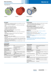 PSE NO 22 Metal Line Switches www.schurter.com/PG70 Piezo Switch N.O. PSE M22 RI PSE M22 PI Description -Available in version Standard and lettered, from diameter 22 mm with Point Illumination or Ring Illumination -Multicolor: flexible input voltage from 5 - 28 VDC at constant brightness -with color combination RGB and RGY -7 possible colors with RGB configuration -3 possible colors with RGY configuration -Assembly by mounting with nut -Pins, Wire, Crimp Terminal male or Cable with Faston Unique Selling Proposition -Variety of design options regarding size, colour, shape, connection or lettering -High reliability, long lifetime with more than 20 mill. actuations -With multicolor ring illumination Approvals -EMC: EMC directive 2004/108/EWG -DGUV Test Certificate: FW 11040 Requirements for Food Processing Equipment -MIL-STD Certificate Number: 202F Method 107G, 202F Method 204D, 202F Method 213B, 416D Method RS103, 810E Method 501.3, 810E Method 502.3, 810E Method 507.3 -VDE Certificate Number: DIN EN 61000-4-2, DIN EN 61000-4-4, DIN EN 61000-4-5 PSE M22 RI Multicolor Characteristics -Housing material types: plastic, aluminum or stainless steel, ring illuminated version additionally made of polyamide -For use in harsh environments, both indoors and outdoors Other versions on request -switch for longer switching signal duration, type: PSE IV -switch for explosion proof applications, type: PSE EX -switch with enhanced vandal proof protection, type: PSE HI -as keypad, type: Piezo Keypad References Alternative: switch with prolonged signal: PSE AE 16; PSE AE 30; PSE IV 19 Alternative: switch vandal improved: PSE HI 22 Alternative: switch for EX proved applications: PSE EX 16; PSE EX 19; PSE EX 22 Alternative: Other diameter PSE NO 16; PSE NO 19; PSE NO 24; PSE NO 27; PSE NO 30 Weblinks html-datasheet, General Product Information, CE declaration of conformity, RoHS, CHINA-RoHS, CAD-Drawings, Product News, Detailed request for product Technical Data Electrical Data Switching Function Supply Voltage Mechanical Data Actuating Force Actuating Travel Shock Protection Tightening Torque Climatical Data Operating Temperature Storage Temperature IP-Protection N.O. 12 / 24 VDC Ring Illumination, 24 VDC Point Illumination, Supply Voltage Multicolor 5 - 28 VDC Switching Voltage max. 42 / 60 VAC/DC Switching Current max. 100 mA Rated Breaking Capacity 1 W Lifetime 20 million at Rated Switching Capacity Switch Resistance OFF > 10 MΩ Switch Resistance ON < 20 Ω actuated (Ta = 25°C) Capacity 5 nF N.O. Closing Impulse Duration 20- 1000 ms depending on actuating force, time and speed Contact Configuration free polarity Environmental Assessment Salt Spray Test (acc. to DIN 50021-SS) Material Housing (depending on type) Actuating Area / Insert (with Ring Illumination) Illuminated Ring (Ring Illumination) ≤ 3 N at ambient temperature 0.002 mm IK 02 2.5 Nm -40 to +85 °C -40 to +85 °C IP 67 acc. to IEC 60529, IP 69K acc. to DIN 40050-9 55°C␣/ 93% r.h. acc. to DIN EN 600682-30 24 h / 48 h / 96 h Residence Time Stainless Steel, Aluminium anodized, Polyamide Stainless Steel, Aluminium anodized Polyamide Switches 1 PSE NO 22 Metal Line Switches www.schurter.com/PG70 Dimension PSE M22 with Pins PSE M22 with Wire Ø26 24 Ø 26 C Ø1.3 5.08 15 11 15 ~200 mm M22x1.5 1.2 M22x1.5 1.2 PSE M22 with Crimp Terminal male PSE M22 PI with Crimp Terminal male Ø 26 Ø26 Ø3 A B M22x1.5 ~90 mm 1.2 18.8 M22x1.5 15 1.2 I ~90 mm I Version available on request PSE M22 RI with Wires PSE M22 RI with Plug Connector Ø25 24 21.1-0.05 Ø 25 A ca. 200 mm 2 1.2 M22x1 21 A M22x1 1.2 24 21.1-0.05 C Switches 21 ca. 8 C PSE NO 22 Metal Line Switches www.schurter.com/PG70 PSE M22 RI Multicolor with wires Ø25 24 Ø16 B C A 30 ca. 200 mm M22x1 1.2 Design actuating area F) E) 3) Legend: A = Illumination Area B = Actuating Area C = Width Across Flats I = Crimp Terminal male 6.3 x 0.8 PI = Point Illumination RI = Ring Illumination Lettering: - either with/without lettering - position of the connections with respect to the position of the lettering is not defined F) with finger guidance E) without finger guidance 3) elevated front design: M19 (standard, others on request) Dimension PSE M22 PSE M22 RI Ø 22.3 22.1 + 0.1 21.15 + 0.05 Drilling diagram Drilling diagram Switches 3 PSE NO 22 Metal Line Switches www.schurter.com/PG70 Diagrams PSE PI PSE M22 RI with Wires, 12/24 V A) A) NO B) C) D) NO E) B) C) D) A) Cable 5 (black), Common mass of both LED groups B) Cable 1 (color of the LEDs), Supply voltage first LED group C) Cable 2 (color of the LEDs), Supply voltage second LED group D) Cable 3 and 4 (white), Input and output PSE switch A) Double-LED (2 colors, 3 pins) or simple LED (2 pins) B) Cable 1 (color 1 of the LED), Supply voltage C) Cable 2 (color 2 of the LED), Supply voltage D) Cable 3 (black), Mass E) Cable 4 and 5 (white), input and output PSE switch PSE M22 RI with Quick Connect Terminal, 12/24 V A) B) rt NO (+) PI = point illumination RI = ring illumination C) gn NO (-) 12345 gn NO (+) (+) (-) 12345 (-) rt (+) 12345 A) Illuminated red B) Illuminated green C) Illuminated red/green PSE M22 / M24 / M27 / M30 RI Multicolor Lighting options Multicolor Lighting type Multicolor Singlecolor Active terminal A) Active terminal B) A Multicolor Singlecolor A) B) C) D) + + + − A) Cable 1 (color of the LED), Supply voltage B) Cable 2 (color of the LED), Supply voltage C) Cable 3 (color of the LED), Supply voltage D) Cable 4 (black), Common mass E) Cable 5/6 (white), Input and output PSE switch F) Cable 5/6 (white), Input and output PSE switch 4 Switches E) F) A Multicolor RGB Additive 2 A Multicolor RGB Additive 2 Multicolor RGB Additive 3 Green C Multicolor RGB Additive 2 A Resulting Color Red B Multicolor Singlecolor NO Active terminal C) B Blue Yellow C Magenta B C Cyan B C White PSE NO 22 Metal Line Switches www.schurter.com/PG70 Lettering The last three digits in the order number define the lettering: 001-076 Standard Lettering 101- Customize