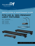 Installation & Maintenance Guide R7s HID & 12in Pendant Light Fixtures Item # Product Description 420205 R7S HID 36IN 420206 R7S HID 48IN 420207 R7S HID 72IN 420208 Light Pendant 12IN w w w . a q u a t i c l i f e . c o m table of contents This symbol indicates “Warnings” that are essential in order to protect against injury to people or damage to equipment. This symbol indicates “Notes” that are specific instructions on how to operate, control, adjust or maintain the units. This symbol indicates “TIPS” that are intended to offer helpful advice for a better user experience. Safety Instructions...............3 Warnings.........................3 Grounding........................3 R7S HID / T5 Combination Light Fixture 12in Pendant R7S HID Light Fixture Identify Parts....................... 4 Parts Diagram.................. 4 Parts & Specifications....... 4 Identify Parts................... 10 Parts Diagram.............. 10 Replacement Parts........ 10 Product Specifications... 10 Suspension Hardware.... 10 Installation.......................... 5 Packaging........................ 5 T5 HO Lamps................... 5 Suspension Hardware........ 6 Aquarium Frame Mounts... 6 Power............................. 7 Timer.............................. 7 Operation Timer Set-up & Operation.. 7 Maintenance........................ 9 Housing........................... 9 Lens Covers..................... 9 T5 HO Lamp Replacement.. 9 HID Lamp Replacement...... 9 Installation...................... 11 Assembly..................... 11 Suspension Assembly........ 12 J Hook........................ 12 Ceiling Mount............... 12 Fixture Attachment....... 12 Ballast Installation............ 14 Glossary of Terms............ 15 Registration & Warranty... 16 Thank you for purchasing an AquaticLife™ High Intensity Discharge (HID) Light Fixture for use with your aquarium! We know you value quality and innovation and will be pleased with this product’s performance. We encourage you to take a few minutes to become familiar with this manual and note items that apply to your particular model. For additional information, please visit www.aquaticlife.com. Your purchase includes a coupon on the side of the box. Save Life Rewards™ point coupons from Aquatic Life products and redeem them for free merchandise at www.aquaticlife.com. This is our way of saying thank you for your loyalty Copyright © Aquatic Life, LLC All rights reserved. No part of this document may be reproduced, stored in a retrieval system, or transmitted in any form or by any means without the prior written consent of Aquatic Life, LLC. Aquatic Life, LLC Commerce, CA 90040 Toll-Free US only: (888) 548-3480 Outside the US: 1-818-768-6943 customersupport@aquaticlife.com 2 Check us out on... safety instructions WARNING To guard against injury, basic precautions should be observed, including the following: NOTE DO NOT POSITION HID LAMPS DIRECTLY OVER AQUARIUM FRAME BRACES A) READ AND FOLLOW ALL SAFETY INSTRUCTIONS. B) DANGER – To avoid possible electric shock, special care should be taken since water is employed in the use of aquarium equipment. For each of the following situations, do not attempt repairs by yourself; return the appliance to an authorized service facility for service or discard the appliance: 1) If the appliance falls into the water, DON’T reach for it! First unplug it and then retrieve it. If electrical components of the appliance get wet, unplug the appliance immediately. (Non-immersible equipment only) 2) If the appliance shows any sign of abnormal water leakage, immediately unplug it from the power source. (Immersible equipment only) 3) Carefully examine the appliance after installation. It should not be plugged in if there is water on parts not intended to be wet. 4) Do not operate any appliance if it has a damaged cord or plug, or if it is malfunctioning or has been dropped or damaged in any manner. 5) To avoid the possibility of the appliance plug or receptacle getting wet, position aquarium stand and tank to one side of a wall-mounted receptacle to prevent water from dripping onto the receptacle or plug. A “drip loop," shown in the figure below, should be arranged by the user for each cord connecting an aquarium appliance to a receptacle. The “drip loop" is that part of the cord below the level of the receptacle, or the connector if an extension cord is used, to prevent water traveling along the cord and coming in contact with the receptacle. If the plug or receptacle does get wet, DON’T unplug the cord. Disconnect the fuse or circuit breaker that supplies power to the appliance. Then, unplug and examine for presence of water in the receptacle. C) Close supervision is necessary when any appliance is used by or near children. D) To avoid injury, do not contact moving parts or hot parts such as heaters, reflectors, lamp bulbs, and the like. E) Always unplug an appliance from an outlet when not in use, before putting on or taking off parts, and before cleaning. Never yank cord to pull plug from outlet. Grasp the plug and pull to disconnect. F) Do not use an appliance for other than intended use. The use of attachments not recommended or sold by the appliance manufacturer may cause an unsafe condition. G) Do not install or store the appliance where it will be exposed to the weather or to temperatures below freezing. H) Make sure an appliance mounted on a tank is securely installed before operating it. I) Read and observe all the important notices on the appliance. J) If an extension cord is necessary, a cord with a proper rating should be used. A cord rated for less amperes or watts than the appliance rating may overheat. Care should be taken to arrange the cord so that it will not be tripped over or pulled. K) For added safety, the appliance must be plugged into a receptacle controlled by a GFCI (ground fault interrupter) circuit breaker. Device must be properly connected to a grounded three-prong receptacle. L