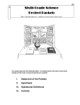 Sixth Grade Science Project Packet: The Eight Steps of Experimental Design Your project must have the following 8 steps. Your display board is the place to show these 8 steps and the roman numerals along with your creativity! I. Statement of the Problem II. Hypothesis III. Operational Definitions IV. Controls V. Materials VI. Procedures VII. Observations VIII. Conclusion SCIENCE PROJECT PACKET For Advanced 6th grade students (Keep this page with your project packet) Date assigned: October 22nd and 23rd Date Due: Feb 16th and 17th, 2016 This project will count as two test grades (for the project) and one daily grade (for the oral presentation). Your teacher may assign additional grades for this project at his/her discretion. You may choose to do this project alone or with a partner. It is recommended that you work alone. If you decide to do this project with a partner, you may choose him/her from this class only. (They may not be from another 6th grade team.) Caution: Be sure to choose a person who is responsible and dependable. Be sure that you will not have trouble arranging time, place, and transportation to meet while working together. It is each partner’s responsibility to make sure that the project is completed on time and that each student puts forth appropriate time and effort. It is not the teacher’s responsibility to assure that each partner contributed the same amount of effort to the project. If working with a partner, each partner must produce their own checkpoints, Research report, their own Project report, and their own Field Notebook. They may share research materials and naturally will share data and all that is involved in the project. Partners will turn in only one Display Board that was produced by both of them. Partners will present the project together to their class. Notice: All projects will need to have prior teacher approval. Notice: Students may not do projects that involve non-human vertebrate animals, pathogenic agents (all bacteria, mold, fungi, etc.), controlled substances, human or nonhuman vertebrate tissues or other hazardous biological agents. Projects involving explosives or projectiles such as BBs, pellet guns, potato guns, paint ball and other ballistics are not allowed. Projects using human subjects or combustible materials are also not permitted. I have read and discussed this packet with my child. Web sites that may be helpful in generating ideas for a science project: http://www.sciencebuddies.org/science-fair-projects/project_ideas.shtml http://sciencefairproject.virtualave.net http://members.ozemail.com.au/~macinnis/scifun/projects.htm#N42 http://tinkerlab.com/science-fair-project-ideas/ http://www.education.com/science-fair/sixth-grade/ Note that your teacher will not approve all projects listed on these sites. Your project must include testing and measuring, you must have an independent and dependent variable, the difficulty level must be appropriate for an advanced middle school student. Caution: It is appropriate to get ideas for a Statement of the Problem from the internet. However, the experimental design should be your own. Your project should extend our understanding of the topic in a new and original way. Do not just download someone else’s science project, follow the procedures, and turn it in as your own. Finally display the 8 steps of Experimental Design with creativity. A great looking board is an attention getter that will sell your idea. Project Requirements: In addition to selecting project topic, designing and performing experiments, as well as collecting data, you will produce: A Research report on your topic Keep a Field Notebook (a “sloppy copy” of the 8 steps that includes your data as you are actually collecting it) Design and produce a Display board Produce a PROJECT REPORT detailing the 8 steps You may also choose to make a model, if appropriate. 1. RESEARCH REPORT Requirements: (This is done prior to starting your project). This report needs to include the following: Introduction: What is the project about (Statement of Problem…) and how did you become interested in the topic. What you already know about the problem that you will investigate? What you hope to learn from your investigation? Body: Summary of new information you found using 5 sources: Be sure to use 5 different types of sources: Written – one book source Written – one magazine, professional journal source Written – one newspaper article Interview someone knowledgeable about the topic. Internet – no more that 2 science web sites (after you have the 5 required types of sources, you may have additional websites). Concluding paragraph: How will the results of your project benefit others? (Assume that whatever you are doing has never been done before). What new and interesting information did you learn about your project topic? How will this help you do your project? Typed report must be about 2 pages in length, double-spaced. Use font size 12. If hand-written, the report must be neat, with good penmanship, blue or black ink, double-spaced, about 4 pages long. Bibliography: All 5 sources must be documented. Use the sites listed below if you need instructions on how to do this. Bibliography Instructions http://www.easybib.com http://www.citationmachine.net http://bibme.org Or you can use google docs, here are the steps to use it: -Highlight name or subject you want to site -Go to tools -Research -Hover over source you want to use -Click cite, should appear in footer of document 2. FIELD NOTEBOOK: Use a regular sized spiral notebook or composition book. Shows “scratch work and planning ” for each of the 8 steps. Shows record of all observations at the time of data collection. Must be kept over the entire period of the experiment. All entries must be dated. All quantitative data must be recorded in metric units. 3. DISPLAY BOARD Must show all 8 steps of the scientific method. The steps should be arranged in logical order. Must display data i