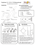 Explorer X-13/X-19 Educational Flying Model Rocket Kit Instructions Expanded View P.O. Box 271 Grayson, GA 30017 How to Use These Instructions: A. Using basic modeling techniques, this kit will help in the development of modeling skills. B. Check all parts before you begin building. C. Test fit all parts before gluing. D. Check off each step as you complete it. B) Nose Cone (Two Part) C) Body Tube Construction Supplies Required: A) Streamer A. B. C. D. E. I) Launch Lug Ruler Knife Pencil Glue Scissors F. G. H. I. Sandpaper Paint Sanding Sealer Adult Supervision Engine Mount Assembly 2. Parts Needed: Engine Mount Tube (H), Engine Hook (G), 2 Centering Rings (F) 1/4 “Hook mark 3 Shoc k Cord Mount H) Shock Cord Mount G) Engine Hook 1. 2 1 E) Fins (Configuration will vary) F) Centering Rings (2) Engine Tube SureFire Rockets Shock Cord Mount D) Shock Cord Tube Marking Parts Needed: Main Body Tube (C) Glue Slid e ½“ Ring m ark Slid e ½“ Ring m ark Glue (Fig 1a) (Fig 2a) (Fig 3a) (Fig 4a) Me a s ur ea ndma r k¼”f r omt hee ndoft hee ng i net ube (H) with a pencil. (Fig 1a) Wi t hahobbyk ni f ema k eas ma l l1/ 8”hor i z ont a ls l i ton the mark. Lay the Engine hook (G) on the body tube inserting the 90 degree bent section into the slit. (Fig 2a) Me a s ur ea ndma r k½”f r ombot he nd soft heEng i ne Mount Tube (H) with a pencil. (Fig 1a) Place one Centering Ring (F) at the top of the Engine Mount Tube (H) and one at the bottom of the Engine Mount Tube (H) as shown. (Fig 3a) Place a small ring of glue around the Engine Mount Tube (H)a tbot hma r k sy ouma de(½”f r omt hee nds )( Fi g3a ) Slide the remaining Centering Ring (F) over the glue onto the marks as shown. (Fig 4a) Fig. 2a *Use the dotted lines for 3 fins *Solid lines for 4 fins Place the Body Tube (C) on the template. (Fig 2a) With a pencil carefully draw small alignment marks at the intersection of the tube and the fin guide. (Fig 2a) Using a door frame or a tube marking guide (to make s t r a i g htl i ne s )e xt e ndt hef ourf i na l i g nme ntma r k s3” down the Body Tube (C). (Fig 2b) ** NOTE ** Make sure not to press too hard on the tube. A light mark is all that is required 3. Fin Cutting and Preparation Shock Cord Mount Assembly 4. Parts Needed: Fin stock/ PDF fin printout, sandpaper, knife Parts Needed: Shock Cord (D), Shock Cord Mount (H), Glue. Go online to http://www.hobbylinc.com/htm/sfr/sfr710180.htm Select one of the fin configurations Print off the PDF file containing the fin design. Follow the instructions printed with the PDF file for cutting out your fins. ing e Lay your piece of sandpaper rough side up on a table. Align all four Fins (E) together. Lightly sand all edges so that they are equally smooth. ***OPTIONAL*** For even better performance sand the leading edges round and taper the trailing edge. 1 (Fig 4c) (Fig 4d) 2 1 1 Engine Mount Installation Parts Needed: Body Tube (C), Assembled Engine Mount, Glue. Cut out the Shock Cord Mount (H) from the back of this sheet. Lay the Elastic Shock Cord (D) on the mount so that the cord starts on section #2 and lays across section #3. (Fig 4b) Glue the cord to the mount on section #2 (Fig 4b) Fold section #1 onto section #2. Hold till glue dries. (Fig 4c) Glue the cord to section #3 (Fig 4c). Fold sections #1 and #2 on to section #3 (Fig 4d). Hold until glue is dry. Fin Attachment 6. Parts Needed: Fins (E) , Body Tube (C), Glue ( Fin design will vary ) Le a d (Fig 5a) ing Fin (Fig 6c ) g Ed e Root Edge Body Tube Fin Mark (Fig 6b) Engine Mount Installed (Fig 5b) (Fig 6a) The engine mount assembly should be completely dry before starting this step. Locate the end of the tube that has the fin markings. This is the end that the engine mount will be glued to. With a glue applicator (small stick, pencil, your finger, e t c …)pl a c ear i ngofg l uea bout1½”f r omt hebot t om of the tube on the inside. (Fig 5a) Slide the assembled engine mount into the body tube until the engine tube (H) is flush with the bottom of the body tube. (C) The completed engine mount should look similar to figure 5b. Body Tube Apply a small bead of glue along the root edge of the fin. (Fig 6a). Set the rear edge (trailing edge) of the fin even with the bottom of the body tube. Make sure you are using the end that has the engine mount installed. Press the fin gently against the body tube making sure that the root edge is aligned with one of your marked 3”f i ng ui del i ne sma d ei ns t e p3. Carefully adjust the fin as needed to make sure the fin is aligned. An incorrectly placed fin will drastically change the flight of your rocket. Hold the fin in place until the glue is set. Carefully repeat the above steps for each fin. (4) Stand rocket to allow for proper glue drying. (Fig 6c) 2 2 g Ed Tra iling Ed ge (Fig 3b) Engine Mount 3 Glue Glue Body Tube 3 3 SureFire Rockets Shock Cord Mount (Fig 4b) *Fin configuration will vary 5. Shock Cord SureFire Rockets Shock Cord Mount SureFire Rockets Shock Cord Mount Le a d Root Edge (Fig 3a) Shock Cord Shock Cord 7. ½ Parts Needed: Body Tube (C), Launch Lug (I), Glue, Ruler, Pencil 8. Fin Reinforcement ” Parts Needed: Glue, Rocket frame GLUE 3 Launch Lug Attachment (Fig 7b) (Fig 7a) (Fig 8b) (Fig 8a) Fi l l i ngi nt h e‘ g a p’be t we e nt hef i n sa ndt her oc k e t tube is important. It improves the aerodynamics of your rocket while improving the strength of your fins. Take a bead of glue and run along the fins where they join the body tube. (Fig 8a) Glue only one fin at a time. Smooth the glue into the gap creating a fillet of glue between the fins and the tube. Stand the rocket as shown (Fig 8b) to allow the glue to dry. *Not to scale Measure and mark from the bottom of the rocket (where t hef i nsa r e )3½”a sar e f e r e nc el i ne .( Fi g7a )Us et hi s line as a starting point for the Launch Lug (I). Apply glue and attach the Launch Lug (I). (fig 7b) Make sure that the Launch Lug (I) is aligned with the Body Tube (C) as