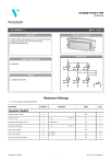 V23990-P705-F-PM datasheet flow 90PACK 1 600 V / 50 A Features flow 90 1 housing ● IGBT3 (600 V) technology for low saturation losses ● Supports designs with 90° mounting angle ● Clip-in PCB mounting Schematic Target applications ● Industrial Types ● V23990-P705-F-PM Maximum Ratings Tj = 25 °C, unless otherwise specified Parameter Symbol Condition Value Unit 600 V 51 A 150 A 95 W ±20 V Inverter Switch Collector-emitter voltage Collector current VCES IC Tj = Tjmax Ts = 80 °C Repetitive peak collector current ICRM tp limited by Tjmax Total power dissipation Ptot Tj = Tjmax Gate-emitter voltage VGES Short circuit ratings Maximum junction temperature Copyright Vincotech tSC Tj ≤ 150 °C VCC VGE = 15 V Ts = 80 °C Tjmax 1 6 µs 360 V 175 °C 04 Jul. 2016 / Revision 2 V23990-P705-F-PM datasheet Maximum Ratings Tj = 25 °C, unless otherwise specified Parameter Symbol Condition Value Unit 600 V 45 A 100 A 64 W Inverter Diode Peak repetitive reverse voltage Continuous (direct) forward current VRRM IF Tj = Tjmax Ts = 80 °C Repetitive peak forward current IFRM Total power dissipation Ptot Maximum junction temperature Tjmax 175 °C Storage temperature Tstg -40…+125 °C Operation temperature under switching condition Tjop -40…(Tjmax - 25) °C 4000 V min. 12,7 mm 11,84 mm Tj = Tjmax Ts = 80 °C Module Properties Thermal Properties Isolation Properties Isolation voltage Visol DC Test Voltage Creepage distance Clearance Comparative Tracking Index Copyright Vincotech CTI tp = 2 s > 200 2 04 Jul. 2016 / Revision 2 V23990-P705-F-PM datasheet Characteristic Values Parameter Symbol Conditions VCE [V] VGE [V] VDS [V] VGS [V] VF [V] Value IC [A] ID [A] IF [A] Tj [°C] Min Typ Unit Max Inverter Switch Static Gate-emitter threshold voltage Collector-emitter saturation voltage VGE(th) VGE = VCE 15 VCEsat 0,0008 25 50 25 125 5 5,8 6,5 1,05 1,48 1,68 1,85 V V Collector-emitter cut-off current ICES 0 600 25 2,6 µA Gate-emitter leakage current IGES 20 0 25 600 nA Internal gate resistance rg none Input capacitance Cies 3140 Output capacitance Coes Reverse transfer capacitance Cres f = 1 MHz 0 25 25 200 Ω pF 93 Thermal Thermal resistance junction to sink Rth(j-s) phase-change material λ = 3,4 W/mK 1,00 K/W Dynamic Turn-on delay time Rise time td(on) tr td(off) tf Turn-on energy (per pulse) Eon Turn-off energy (per pulse) Eoff 300 49 3 19 177 125 196 25 25 QrFWD = 2,1 µC 17 25 125 QrFWD = 3,7 µC Copyright Vincotech 111 125 ±15 Fall time 109 125 25 Rgoff = 8 Ω Rgon = 8 Ω Turn-off delay time 25 ns 77 96 0,356 125 0,523 25 1,392 125 1,707 mWs 04 Jul. 2016 / Revision 2 V23990-P705-F-PM datasheet Characteristic Values Parameter Symbol Conditions VCE [V] VGE [V] VDS [V] VGS [V] VF [V] Value IC [A] ID [A] IF [A] Tj [°C] Min Unit Typ Max 1,57 1,52 1,9 Inverter Diode Static Forward voltage VF Reverse leakage current IR 50 600 25 125 25 27 V µA Thermal Thermal resistance junction to sink Rth(j-s) phase-change material λ = 3,4 W/mK 1,48 K/W Dynamic Peak recovery current IRRM Reverse recovery time trr Recovered charge Qr Reverse recovered energy Erec Peak rate of fall of recovery current di/dt = 3978 A/µs ±15 di/dt = 3132 A/µs (dirf/dt)max 300 49 25 125 25 125 25 125 25 125 25 125 62 74 52 151 2,094 3,688 0,516 0,909 2882 2764 A ns µC mWs A/µs Thermistor Rated resistance R Deviation of R100 ΔR/R Power dissipation 25 R100 = 1486 Ω 100 P Power dissipation constant 21,5 -4,5 kΩ +4,5 % 25 210 mW 25 3,5 mW/K B-value B(25/50) 25 3884 K B-value B(25/100) 25 3964 K Vincotech NTC Reference Copyright Vincotech F 4 04 Jul. 2016 / Revision 2 V23990-P705-F-PM datasheet Inverter Switch Characteristics figure 1. IGBT figure 2. IGBT Typical output characteristics Typical out put charact eristics I C = f(V CE) I C = f(V CE) 150 I C (A) I C (A) 150 VGE : 7V 8V 9V 120 120 10 V 11 V 12 V 13 V 14 V 15 V 90 90 16 V 17 V 60 60 30 30 0 0 0 1 2 3 4 0 5 1 2 3 4 5 V C E (V) V C E (V) tp = 250 µs V GE = 15 V T j: 25 °C tp = 250 125 °C Tj = 125 V GE from 7 V to 17 V in steps of 1 V figure 3. IGBT µs °C figure 4. IGBT Typical transf er charact erist ics Transient t hermal impedance as f unction of pulse duration I C = f(V GE) Z th(j-s) = f(t p) 50 Z t h(j h(j--s)(K/W) I C (A) 100 40 10-1 30 20 0.5 10-2 0.2 0.1 0.05 10 0.02 0.01 0.005 0 10-3 10-5 0 0 2 4 6 8 10 12 10-4 10-3 10-2 V G E (V) tp = 100 µs V CE = 10 V T j: 25 °C D = 125 °C 10-1 100 101 t p (s) 102 tp / T R th(j-s) = 1,00 K/W IGBT thermal model values Copyright Vincotech 5 R (K/W) 1,16E-01 τ (s) 5,24E-01 3,52E-01 9,02E-02 2,27E-01 3,52E-02 7,48E-02 8,27E-03 3,46E-02 1,57E-03 04 Jul. 2016 / Revision 2 V23990-P705-F-PM datasheet Inverter Diode Characteristics figure 1. FWD figure 2. FWD Typical f orward charact erist ics Transient t hermal impedance as a f unct ion of pulse widt h I F = f(V F) Z th(j-s) = f(t p) 150 Z t h(j h(j--s) (K/W) IF (A) 101 120 100 90 60 0.5 10-1 0.2 0.1 0.05 30 0.02 0.01 0.005 0 10-2 0 0 1 2 3 4 10-5 5 10-4 10-3 VF (V) tp = 250 µs T j: 25 10-2 10-1 100 101 t p (s) °C 125 °C D = tp / T R th(j-s) = 1,48 K/W FWD thermal model values R (K/W) 8,47E-02 τ (s) 2,94E+00 2,58E-01 3,69E-01 6,24E-01 8,73E-02 3,27E-01 1,50E-02 9,31E-02 2,52E-03 9,86E-02 2,80E-04 Thermistor Characteristics Typical Thermistor resistance values Thermistor typical temperature characteristic Typical NTC characteristic as a function of temperature R T = f(T ) NTC-typical temperature characteristic R (Ω) 25000 20000 15000 10000 5000 0 25 50 75 100 125 T (°C) Copyright Vincotech 6 04 Jul. 2016 / Revision 2 V23990-P705-F-PM datasheet Inverter Switching Characteristics figure 1. IGBT figure 2. IGBT Typical swit ching energy losses as a f unct ion of gate resistor E = f(I C) E = f(R g) 2,5 3 E ( mWs) E (mWs) Typical swit ching energy losses as a f unction of collector current Eoff 2,5 Eon 2 Eoff Eo n E o ff 2 Eo ff 1,5 1,5 1 1 Eon E on 0,5 0,5 0 0 0 25 50 75 100 0 I C (A) 25 With an induc tive load at 300 V V CE = V GE = ±15 T j: °C 4 125 °C V V GE = IC = R gon 
