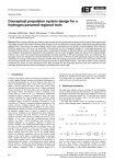 IET Electrical Systems in Transportation Research Article ISSN 2042-9738 Received on 24th July 2014 Revised on 27th February 2015 Accepted on 11th April 2015 doi: 10.1049/iet-est.2014.0049 www.ietdl.org Conceptual propulsion system design for a hydrogen-powered regional train Andreas Hoffrichter, Stuart Hillmansen ✉, Clive Roberts Birmingham Centre for Railway Research and Education, University of Birmingham, Edgbaston, Birmingham B15 2TT, UK ✉ E-mail: s.hillmansen@bham.ac.uk Abstract: Many railway vehicles use diesel as their energy source but exhaust emissions and concerns about economical fuel supply demand alternatives. Railway electrification is not cost effective for some routes, particularly low-traffic density regional lines. The journey of a regional diesel–electric train is simulated over the British route Birmingham Moor Street to Stratford-upon-Avon and return to establish a benchmark for the conceptual design of a hydrogen-powered and hydrogen-hybrid vehicle. A fuel cell power plant, compressed hydrogen at 350 and 700 bar, and metal-hydride storage are evaluated. All equipment required for the propulsion can be accommodated within the space of the original diesel– electric train, while not compromising passenger-carrying capacity if 700 bar hydrogen tanks are employed. The hydrogen trains are designed to meet the benchmark journey time of 94 min and the operating range of a day without refuelling. An energy consumption reduction of 34% with the hydrogen-powered vehicle and a decrease of 55% with the hydrogen-hybrid train are achieved compared with the original diesel–electric. The well-to-wheel carbon dioxide emissions are lower for the conceptual trains: 55% decrease for the hydrogen-powered and 72% reduction for the hydrogen-hybrid assuming that the hydrogen is produced from natural gas. 1 Introduction Currently, most railway vehicles use electricity for propulsion, which is either supplied through wayside electrification infrastructure or on-board diesel-generator sets. In the European Union (EU), the share of electrified railway lines is about 53% and the majority of traffic is carried on those lines but, in other areas, such as North America, non-electrified lines are the norm [1]. Diesel combustion releases emissions at the point-of-use, such as particulate matter and nitrogen oxides, and reduction of these is mandated in the United States [2] and the EU [3]. Furthermore, hydrocarbon combustion leads to emission of Greenhouse Gases, and many countries, including the United Kingdom, have ambitious targets to reduce these [4]. In addition to the emission concerns, the economical supply of diesel is uncertain. In Europe, it is not cost-effective to electrify a significant additional proportion of the railway network, including regional lines. And the cost of large-scale wayside electrification is prohibitive for many railway administrations around the world. For all aforementioned reasons, an alternative energy source to diesel is required for railway motive power. Hydrogen can be produced from many feedstocks, similar to electricity, and when utilised in a fuel cell, generates electricity and heat while leaving as exhaust pure water [5, 6]. In addition, it has been shown that hydrogen-powered railway vehicles can reduce overall Greenhouse Gas emissions [7]; therefore hydrogen is an attractive alternative to diesel for railways. Globally, a few hydrogen-powered railway vehicles exist but most of these are prototypes and no full-scale heavy rail passenger train is currently in service [8–12]. Previous research [13] has considered the general feasibility of hydrogen-hybrid railway vehicles where the focus was on the control strategy between the different components, and not the detailed system design. In the current paper, a conceptual design is presented, which considers the mass and volume implications of the drive system change together with an assessment of the practicality of ahydrogen-powered solution. A benchmark diesel–electric regional railway vehicle is selected and the performance parameters and journey time over a corresponding route in Britain are determined with computer simulation. Then, a conceptual design for a 56 hydrogen-powered and hydrogen-hybrid regional train is developed and these are simulated over the same route. Next, the performance of all three trains are compared, including range, journey time, vehicle efficiency and carbon emissions. 2 Benchmark simulation The single train simulator software, developed by the Birmingham Centre for Railway Research and Education, was employed for the investigations presented in this paper. The simulator has been used extensively for previous research [14–17] and three new vehicles have been created for this paper, while a route that already existed in the programme was selected. The single train simulator solves the equations of motion of a railway vehicle through numeric integration, see (1)–(5) [5, 15, 18] F = ma (1) F = m(1 + l)a (2) F = TE − mg sin (a) + Cv2 + Bv + A (3) m(1 + l)a = TE − mg sin (a) + Cv2 + Bv + A (4) Overall Or 2 d2 s ds ds + A (5) +B m(1 + l) 2 = TE − mg sin (a) + C dt dt dt where a is the acceleration (metre per second squared (m/s2)); A, B and C are the constant terms of resistance in the Davis equation [19]; d is delta, change of the following variable; F is force (kilonewton (kN)); g is the acceleration due to gravity (9.81 m/s2); m is mass (kilograms); s is the vehicle displacement (metres); t is IET Electr. Syst. Transp., 2016, Vol. 6, Iss. 2, pp. 56–66 This is an open access article published by the IET under the Creative Commons Attribution License (http://creativecommons.org/licenses/by/3.0/) the time (seconds); TE is tractive effort (kN); v is the velocity (m/s); α is the angle of the gradient (degrees); and l is the rotational allowance. These equations fully describe the forces that occur due to the motion of railway vehicles, except for the resistanc
