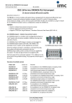 OSC-16 for imc CRONOS-PL/-SL/compact Technical Data Sheet 04.10.2013 OSC-16 for imc CRONOS-PL/-SL/compact 16-channel isolated differential amplifier Data Sheet version 3.4 The OSC-16 is a scanner module with optical relays, equipped with 16 isolated and differential input channels. It comes with enhanced isolation strength of up to 60 V, and its 16 channels allow measurement of voltage, current, thermocouples and Pt100. The OSC-16 is available as a plug-in module for imc CRONOS-PL/compact and as a configuration module for CRONOS-SL. Highlights Ideal for isolated measurement of passive sensors optimal suppression of 50 Hz interference support of TEDS (imc Plug & Measure, Transducer Electronic Data Sheets (IEEE 1451.4) imc CRONOScompact - modular measurement system imc CRONOScompact is a modular and reconfigurable hardware a "rack"-based series of devices available in different housing sizes and device frames. imc CRONOScompact (CRC) plug-in-modules can be plugged in imc CRONOScompact System (CRC-400 / CRC-2000G). This assembly of such a system can be adapted fast and easily. imc CRONOScompact plug-in-modules Once the modules are built-in a portable or rack-based housing, the modules will electrically connected to the imc CRONOScompact (CRC) system and they will also be supplied by the system. The data storage will also be managed by CRC. The front panel of the rack-based modules ("-R") is different to the front panel of the portable housing. The properties of both types is the same. imc CRONOScompact portable housing Overview of available variants Order code Article no. CRC/OSC-16 CRC/OSC-16-ET CRC/OSC-16-T 1170054 1171029 1170103 CRC/OSC-16-T-ET CRC/OSC-16-R CRC/OSC-16-R-ET CRC/OSC-16-T-R 11710xx 1170118 1171077 1170184 CRC/OSC-16-T-R-ET CRSL/OSC-16-D 11710xx 1180023 CRPL/OSC-16 CRPL/OSC-16-ET CRPL/OSC-16-T 1080177 1081123 1080178 Remarks for installation in imc CRONOScompact, occupying 2 slots extended environmental temperature range with thermocouple sockets, for installation in imc CRONOScompact, occupying 3 slots (12 TE) extended environmental temperature range for installation imc CRONOScompact RACK, occupying 2 slots extended environmental temperature range with thermocouple sockets, for installation in imc CRONOScompact RACK, occupying 3 slots (12 TE) extended environmental temperature range for installation in imc CRONOS-SL with DSUB terminal connection, occupying 2 slots for installation in an imc CRONOS-PL, occupying 2 slots extended environmental temperature range with thermocouple sockets for installation in imc CRONOS-PL, occupying 2 slots (8TE) Errors and changes excepted For more information, contact: Berlin: +49 - 30 - 46 70 90 - 0 1 OSC-16 for imc CRONOS-PL/-SL/compact Technical Data Sheet CRPL/OSC-16-T-ET 04.10.2013 1081124 extended environmental temperature range Integrated sensor supply Version with an integrated sensor supply, requires no extra module expansion. With adjustable supply voltages (globally selectable for 8 channels), output on reserved pins of DSUB terminal. Required software version The module is fully supported by the imc operating software. Included accessories DSUB-15 connector ACC/DSUB(M)-T4: DSUB-15 plug with screw terminals for 4-channel measurement of voltages as well as temperatures with PT100 and thermocouples with integrated cold junction compensation (CJC). Included accessories for imc CRONOS-SL: ------ Optional accessories DSUB-15 connectors ACC/DSUB(M)-TEDS-T4 ACC/DSUB(M)-U4 ACC/DSUB(M)-TEDS-U4 ACC/DSUB(M)-I4 ACC/DSUB(M)-TEDS-I4 ACC/DSUB-ICP4 version with TEDS support, according to IEEE 1451.4 for use with imc Plug & Measure DSUB-15 plug with screw terminals for 4-channel voltage measurement DSUB-15 plug with screw terminals for 4-channel voltage measurement DSUB-15 plug with screw terminals for 4-channel current measurement of up to 50 mA (50 shunt, scaling factor: 0.02 A/V) version with TEDS support, according to IEEE 1451.4 for use with imc Plug & Measure DSUB-15 plug with screw terminals for conditioning of 4 IEPE/ICP inputs Errors and changes excepted For more information, contact: Berlin: +49 - 30 - 46 70 90 - 0 2 OSC-16 for imc CRONOS-PL/-SL/compact Technical Data Sheet 04.10.2013 Technical details - OSC-16 Data Sheet version 3.4 Parameter Value Inputs Remarks 16 Measurement mode DSUB voltage Standard plug (ACC/DSUB(M)-U4) current Current plug (ACC/DSUB(M)-I4) thermocouples, RTD (Pt100) Thermo-plug (ACC/DSUB(M)-T4) Measurement mode OSC-16-T thermocouples type-K Terminal connection 4x DSUB-15 or 16x thermo-sockets OSC-16-T Two pin thermo-sockets 4 channels per plug for thermocouples only Sampling rate, Bandwidth, Filter, TEDS Parameter Sampling rate Value Remarks max. 5 Hz (200 ms) / channel filter / bandwidth like at 2 Hz / 5 Hz, additional values are duplicated 10 Hz (100 ms) Bandwidth 1 Hz Resolution 16 Bit internal: 2 Hz (500 ms) with additional Interpolation; max. allowable input signal frequency: 1 Hz -0.01 dB Suppression @ 50 Hz (±2%) 5 Hz to 2 Hz (200 to 500 ms) 34 dB @ 49 Hz / 51 Hz 1 Hz (1 s) 68 dB @ 49 Hz / 51 Hz Bandwidth / noise suppression max. signal frequency Bandwidth max. Noise supp. 60 dB -1 dB signal (fg) (f_s) (f_filt) 1 Hz 50 Hz at sampling rate: 5 Hz (200 ms) 1.0 Hz 2 Hz (500 ms) 1.0 Hz 1 Hz 1 Hz (1 s) 0.5 Hz 0.5 Hz 48.5 Hz 0.5 Hz (2 s) 0.25 Hz 0.25 Hz 48.5 Hz Synchronicity (at sampling rate) f_s ... f_filt aliasing-free for frequencies above: f_filt 50 Hz Max. settling time aliasing only in the frequency range: max. 1 s constant time offset between two equally configured channels: (noise suppression 60 dB) sampling rate 5 Hz (200 ms) complete settling as a response to input step sampling rate 2 Hz (200 ms) max. 500 ms TEDS conform IEEE 1451.4 Class II MMI Errors and changes excepted For more information, contact: Berlin: +49 - 30 - 46 70 90 - 0 ACC/DSUB-TEDS(M)-xx 3 OSC-16 for imc CRONOS-PL/-SL/compact Technical Data Sheet 04.10.2013 General Parameter Value Remarks ±60 V channel to frame (housing, CHASSIS, p