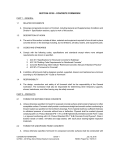 SECTION 03100 - CONCRETE FORMWORK PART 1 - GENERAL 1.1 RELATED DOCUMENTS A. Drawings and general provisions of Contract, including General and Supplementary Conditions and Division-1 Specification sections, apply to work of this section. 1.2 DESCRIPTION OF WORK A. The work of this section includes all labor, materials and equipment required to form all cast-in-place concrete shown on the drawings including, but not limited to, all slabs, beams, and equipment pads. 1.3 CODES AND STANDARDS A. Comply with the following codes, specifications and standards except where more stringent requirements are shown or specified. 1. 2. 3. 4. ACI 301 “Specifications for Structural Concrete for Buildings” ACI 318 “Building Code Requirements for Reinforced Concrete” Concrete Reinforcing Steel Institute “Reinforced Concrete, Manual of Standard Practice” ACI SP-4 “Formwork for Concrete” B. In addition, all formwork shall be designed, erected, supported, braced, and maintained as a minimum according to ACI Standard 347 “Guide to Formwork”. 1.4 RESPONSIBILITY A. The design, construction and safety of all formwork shall be the responsibility of the General Contractor. The Contractor shall also be responsible for determining when temporary supports, shores, backshores, and other bracing may be safely removed. PART 2 – PRODUCTS 2.1 FORMS FOR EXPOSED FINISH CONCRETE A. Unless otherwise specified, formwork for exposed concrete surfaces shall consist of plywood or other acceptable surface. Formwork shall provide a continuous straight and smooth surface conforming to the joint system as specified on the Architect’s drawings. Form material shall have sufficient thickness to withstand pressure of concrete without bow or deflection. Plywood shall be overlaid plywood complying with U.S. Product Standard PS-1 “A-C or B-B High Density Overlaid Concrete Form”, Class I, or plywood conforming with U.S. Product Standard PS-1 “B-B (Concrete Form) Plywood”, Class I, Exterior Grade or better, mill-oiled and edge sealed, with each piece bearing legible inspection trademark. 2.2 FORMS FOR UNEXPOSED FINISH CONCRETE A. Unless otherwise specified, formwork for unexposed concrete surfaces shall be constructed with CONCRETE FORMWORK 03100-1 G-PISD – 2016 Ray Akins Wildcat Stadium Improvements July 18, 2016 WKMC Project No. 15015.01 plywood, lumber, metal or other acceptable material. Lumber shall be dressed on at least two edges and one side for tight fit. 2.3 FORMWORK COATINGS A. Formwork coatings shall be a commercial formulation that will not bond with stain, nor adversely affect concrete surfaces or impair subsequent treatment of concrete surfaces requiring bond or adhesion, nor impede curing with water or curing compounds. Provide a product that has a maximum VOC (Volatile Organic Compounds) of 350 mg/l but not greater than permitted by the local government agency having jurisdiction in the area where the project is located. 2.4 NAILS AND FASTENERS A. Use only galvanized nails and fasteners for securing formwork in structures exposed to weather or unconditioned spaces such as garages, canopies and porte-cocheres. PART 3 – EXECUTION 3.1 FABRICATION AND CONSTRUCTION A. Design, erect, support, brace and maintain formwork to support vertical and lateral loads that might be applied until such loads can be supported by concrete structure. Construct formwork so concrete members and structures are of correct size, shape, alignment, elevation and position. Maintain formwork construction tolerances complying with ACI 347. B. Design formwork to be readily removable without impact, shock or damage ot cast-in-place concrete surfaces and adjacent materials. C. Construct forms to sizes, shapes, lines and dimensions shown, and to obtain accurate alignment, location, grades, level and plumb work in finished structures. Provide for openings, offsets, sinkages, keyways, recesses, molding, rustications, reglets, chamfers, blocking, screeds, bulkheads, anchorages and inserts and other features required in work. Use selected materials to obtain required finishes. Solidly butt joints and provide back-up at joints to prevent leakage of cement paste. D. Fabricate forms for easy removal without hammering or prying against concrete surfaces. Provide crush plates or wrecking plates where stripping may damage cast concrete surfaces. Provide top forms for inclined surfaces where slope is too steep to place concrete with bottom forms only. Kerf wood inserts for forming keyways, reglets, recesses, and the like, to prevent swelling and for easy removal. E. Provide temporary openings where interior area of formwork is inaccessible for cleanout, for inspection before concrete placement, and for placement of concrete. Securely brace temporary openings and patch forms to prevent loss of concrete mortar. Locate temporary openings on forms at inconspicuous locations. F. Chamfer exposed corners and edges as indicated, using wood, metal, PVC or rubber chamfer strips fabricated to product uniform smooth lines and tight edge joints. G. Form Ties: Factory-fabricated, adjustable-length, removable or snapoff metal form ties, designed to CONCRETE FORMWORK 03100-2 G-PISD – 2016 Ray Akins Wildcat Stadium Improvements July 18, 2016 WKMC Project No. 15015.01 prevent form deflections, and to prevent spalling concrete surfaces upon removal. Unless otherwise indicated, provide ties so portion remaining within concrete after removal is 1 ½” inside concrete and will not leave holes larger than 1” diameter in concrete surface. Provide only galvanized form ties in structures exposed to weather or unconditioned spaces. H. Provisions for Other Trades: Provide openings in concrete formwork to accommodate work of other trades. Determine size and location of openings, recesses and chases from trades providing such items. Accurately place and securely support items built into forms. 3.2 CLEANING AND TIGHTENING A. Thoroughly clean forms and adjacent su
