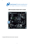 1 LM64 Evaluation Board User’s Guide Copyright 2003 National Semiconductor Corporation 1 2 Table of Contents 1.0 Introduction . . . . . . . . . . . . . . . . . . . . . . . . . . . . . . . . . . . . . . . . . . . . . . 3, 4 2.0 Getting Started . . . . . . . . . . . . . . . . . . . . . . . . . . . . . . . . . . . . . . . . . . . . . 4 2.1 2.2 2.3 2.4 2.5 Required Equipment . . . . . . . . . . . . . . . . . . . . . . . . . . . . . . . . . . . . 4 Optional Equipment . . . . . . . . . . . . . . . . . . . . . . . . . . . . . . . . . . . . . 4 Test Setup – Software . . . . . . . . . . . . . . . . . . . . . . . . . . . . . . . . . . . 4 Test Setup - Hardware. . . . . . . . . . . . . . . . . . . . . . . . . . . . . . . . . . . 5 Test Setup – System . . . . . . . . . . . . . . . . . . . . . . . . . . . . . . . . . . . . 6 3.0 Connection Details. . . . . . . . . . . . . . . . . . . . . . . . . . . . . . . . . . . . . . . . . . . 7 4.0 Schematic of LM64 Evaluation Board . . . . . . . . . . . . . . . . . . . . . . . . . . 8, 9 5.0 Bill of Materials . . . . . . . . . . . . . . . . . . . . . . . . . . . . . . . . . . . . . . . . . . . . . .10 2 3 1.0 Introduction The LM64EVAL kit includes the following items: 1. The LM64 Evaluation Board 2. The SensorEval Software CD, including a. the readme.txt file (read this first) b. the installation setup file, c. the SensorEval Software manual, and d. this manual. 3. Jumpers to use for testing the GPD or GPIO pins if desired. The LM64 Evaluation Board, as shown in Figure 1 (without the socket lid for clarity), is a complete PCBA (printed circuit board assembly). The board has a USB connector, a voltage regulator circuit, a microcontroller, an EEPROM, and a LM64 Remote Diode Temperature Sensor with Integrated Fan Control. A schematic and bill of materials is included in this User’s Guide. Figure 1 shows the location of pin1 for proper orientation of the LM64 in the socket. Pin 1 Pin 7 Figure 1. The LM64 Evaluation Board with Open Socket showing pin numbering convention. The LM64EVAL kit includes the SensorEval software, which is provided by National Semiconductor to communicate with the LM64 Evaluation Board by way of the USB cable (not provided) from the controlling computer. The SensorEval software is used to control the writing and reading of the digital registers in the LM64 for doing the initial register setup, reading the local and remote temperatures, establishing certain temperature limit setpoints, and setting up fan control and tachometer monitoring registers. 3 4 1.0 Introduction (Continued) For the installation procedure for the SensorEval software see the readme.txt file on the SensorEval software CD. For detailed use of the LM64 software used with the LM64 Evaluation Board, please refer to the SensorEval software user’s guide on the CD. The LM64 datasheet is available at www.national.com. 2.0 Getting Started 2.1 Required Equipment In order to use the LM64 Evaluation Board you will need to have the following required pieces of equipment: 1. A computer with at least a Pentium III processor, running Microsoft Windows 98/2000/XP1 operating system, with 20 MB of free disk space, and at least one USB port 2. A standard USB cable (3 foot length should be sufficient) for connecting the computer to the LM64 Evaluation Board. 3. If you plan to test with a 3-terminal fan you must have: a. A 3-terminal DC brushless fan rated at less than 0.40 Amp. Note that provisions are made on the board for either a standard processor fan connector or holes for soldering wires on the board. b. A Power Supply capable of delivering the fan rated voltage (+12 VDC or +5 VDC) at twice the rated fan current. A pair of wires from the power supply to a female header connector to connect with J2, Fan Power input, is suggested. If it is desired to run the software only, without the LM64 Evaluation board, omit items 2 and 3 and proceed to paragraph 2.3. 2.2 Optional Equipment Optional pieces of equipment are as follows: 1. Remote Diode with wired connector to connect to a female 2-pin header, 0.1 in centers 2. Test equipment such as a digital voltmeter or oscilloscope. 2.3 Test Setup - Software First, see the readme.txt file on the SensorEval CD for the latest installation instructions. Follow the installation procedures to load the software on the computer and, if desired, to verify the operation of the LM64 Evaluation Board. The SensorEval icon will be on the desktop window after the software installation. If it is desired to run the software without the LM64 Evaluation Board please proceed to the Software User’s Guide on the SensorEval CD. For use with the LM64 Evaluation Board disconnect the USB cable from the board and proceed to the next section for the hardware setup. 1 Microsoft , Windows , and XP are registered trademarks of Microsoft Corporation. 4 5 2.4 Test Setup – Hardware 2.0 Getting Started (continued) Figure 2 below shows an example of a typical LM64 Evaluation Board test setup for driving fans, attaching remote diodes, and monitoring the system. +12 VDC or +5 VDC Fan Power Supply No jumpers required. May be used to test GPD’s and GPIO’s National Semiconductor JP1 LM64 Evaluation Board GPD5 GPD4 GPD3 GPD2 GPD1 JP2 Fan Power GPIO5 GPIO4 GPIO3 GPIO2 GPIO1 J4 Q1 Computer USB Port Connection D+ D- Test Socket LM64 USB J2 J3 TCRIT GND A0 ALERT# SCL SDA VDC V+ GND Tach V+ V- Black Lead JP3 No Jumpers Required Figure 2. Test Setup using the LM64 Evaluation Board For the first time user, no jumpers are required on headers JP1, JP2, or JP3 for operation of the basic temperature measuring and fan control functions. Details about these headers, and connections to them, will be discussed later in this User Guide. Hardware Test Setup Procedure 1. Before connecting the power supply to the LM64 Evaluation Board, turn it on and set the output voltage to the voltage rating of the fan (+5 or +12 VDC). Turn the power supply off. 2. Connect the power supply to the LM64 Eva